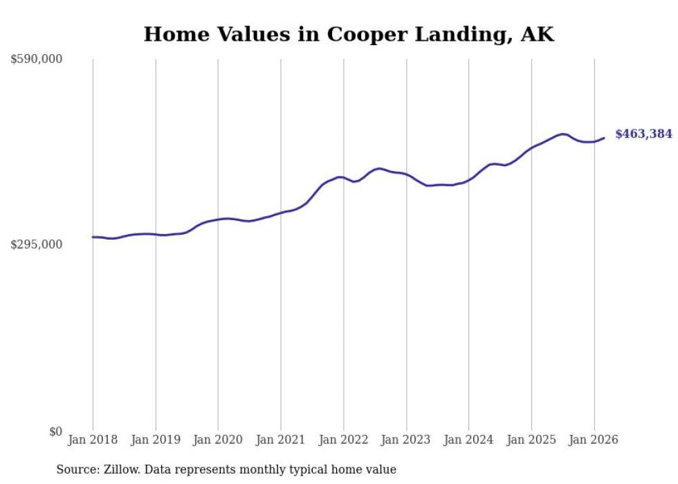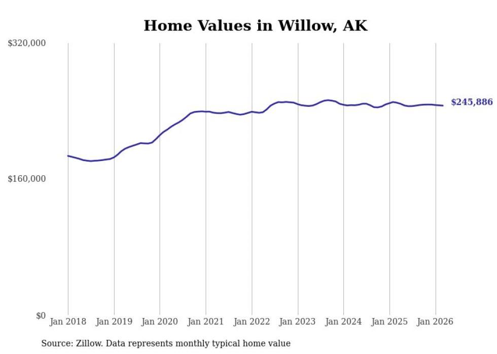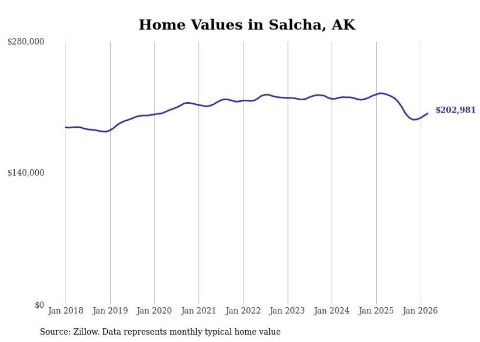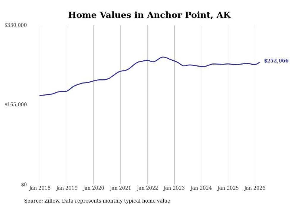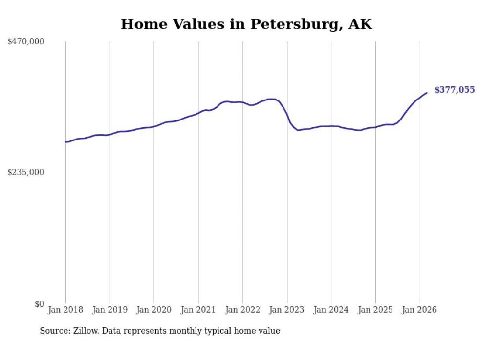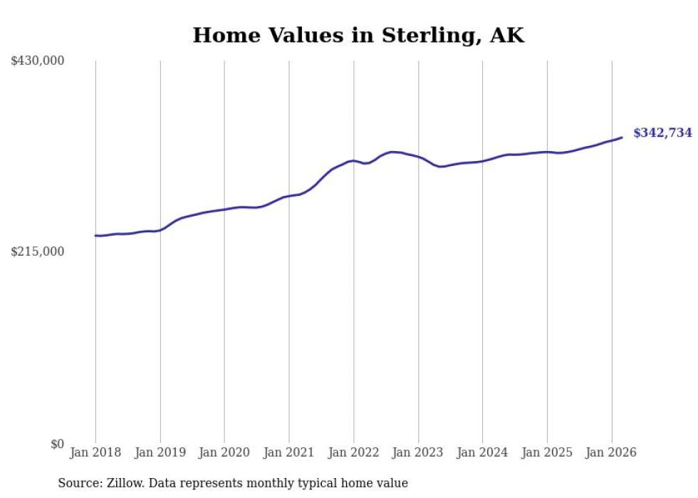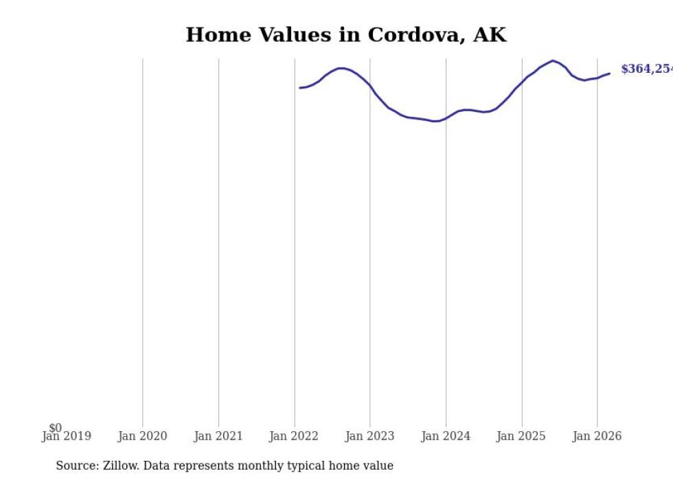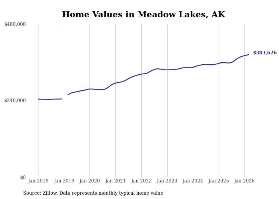 compiled a list of cities with the fastest-growing home prices in Alaska using data from . Cities are ranked by the dollar change in the Zillow Home Values Index for all homes from the 12 months ending March 2026. The charts in this story were created automatically using . Data was available for 40 cities and towns in Alaska.