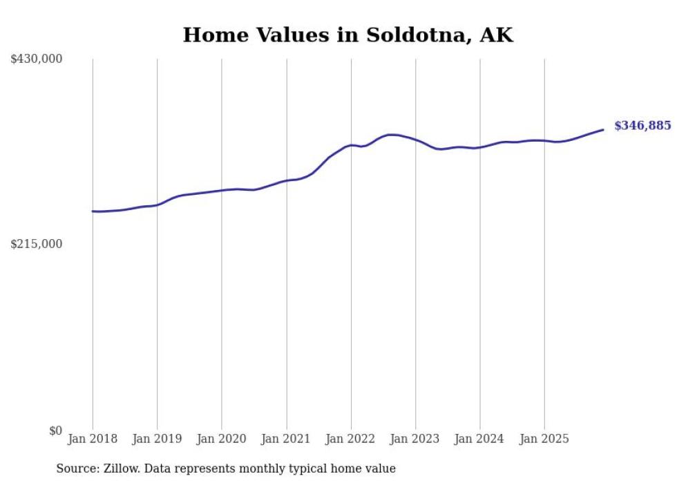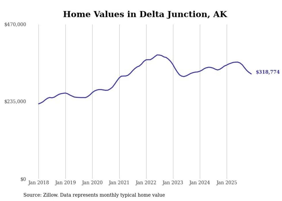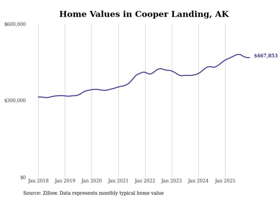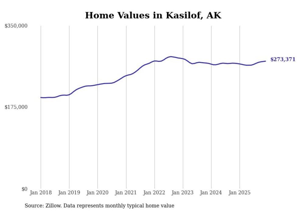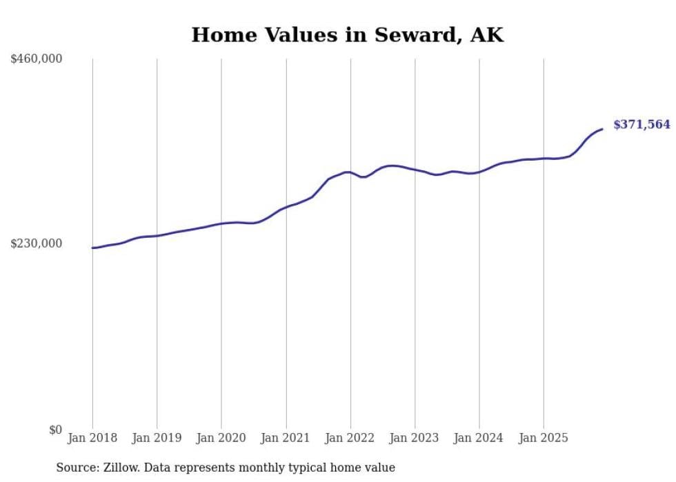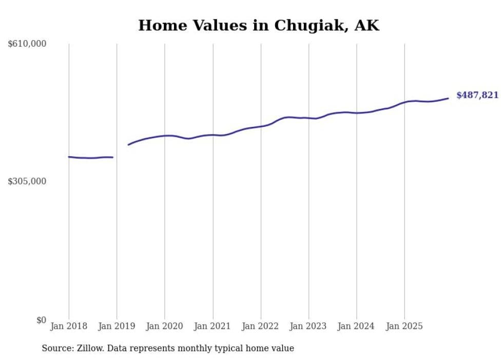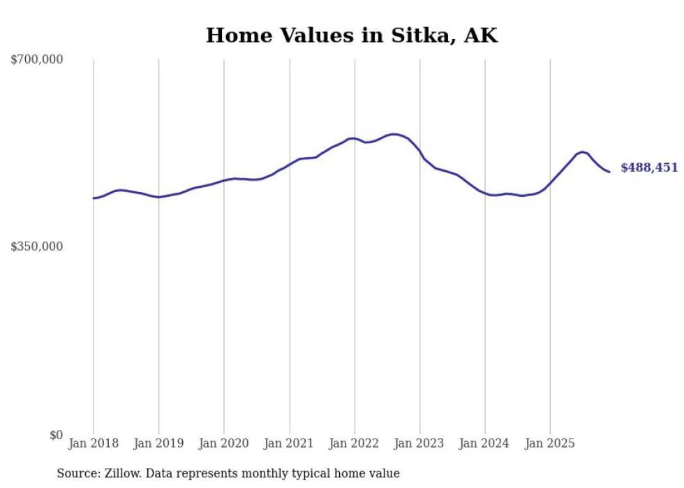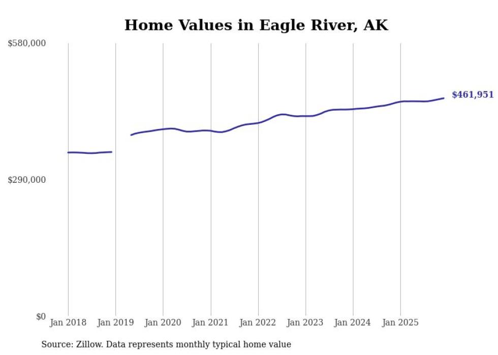 compiled a list of cities with the most expensive homes in Alaska using data from . Cities are ranked by the Zillow Home Values Index for all homes as of December 2025. The charts in this story were created automatically using .