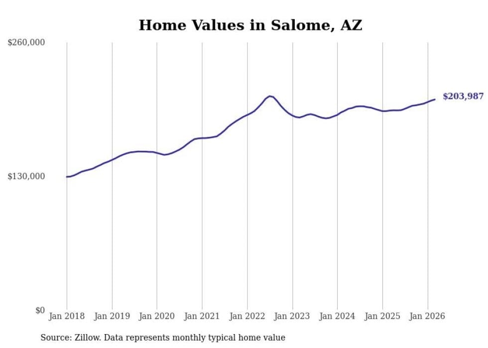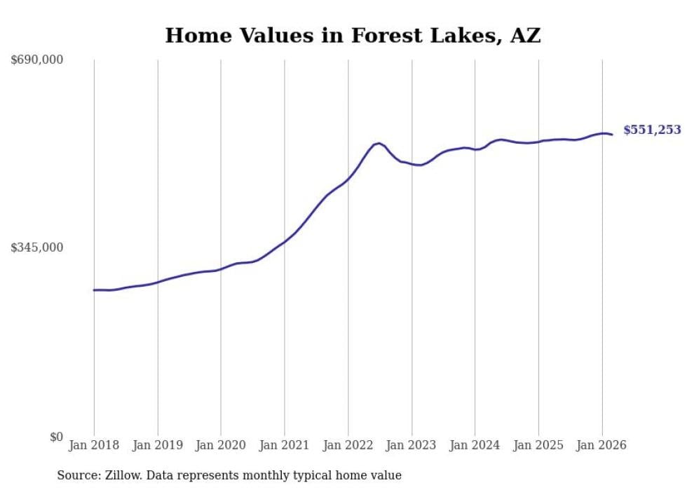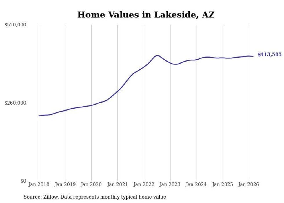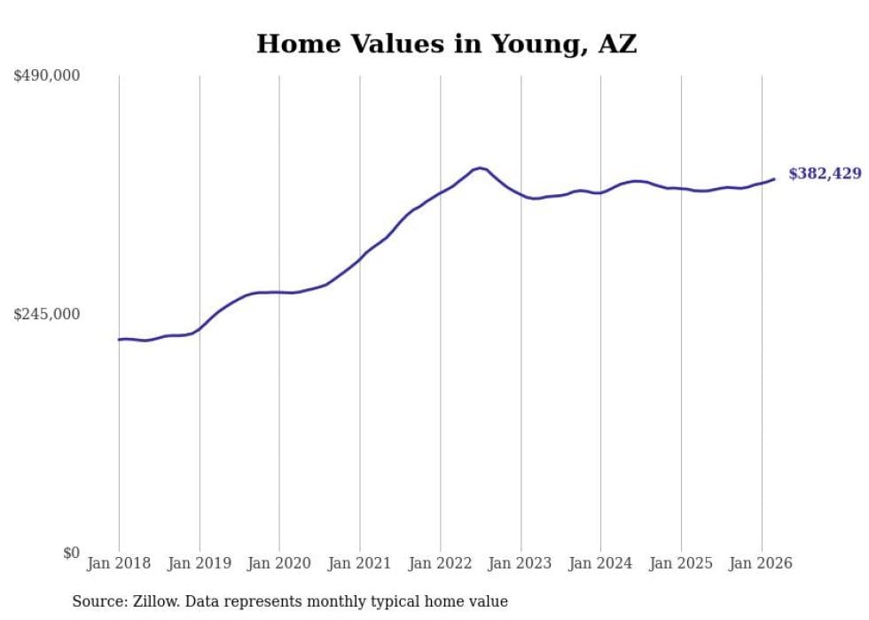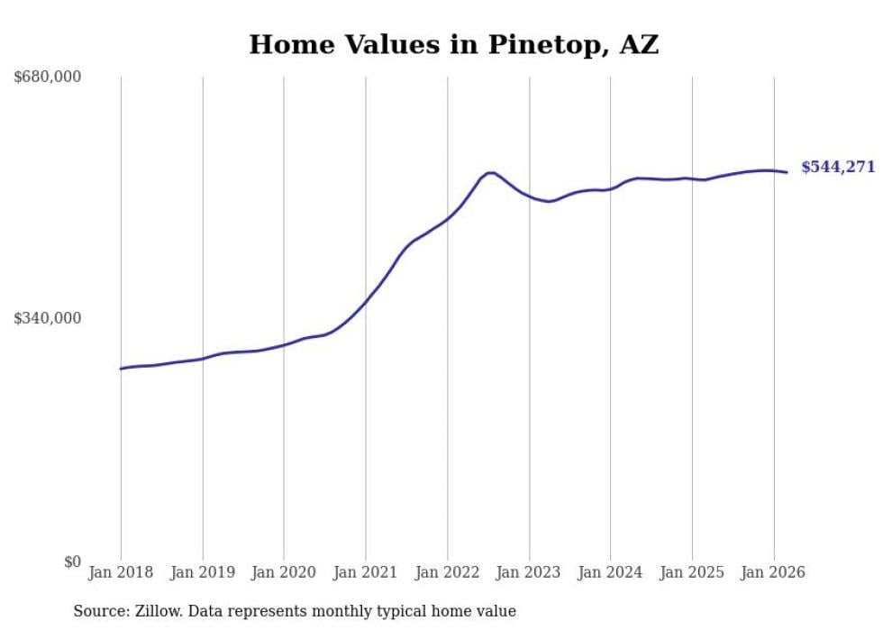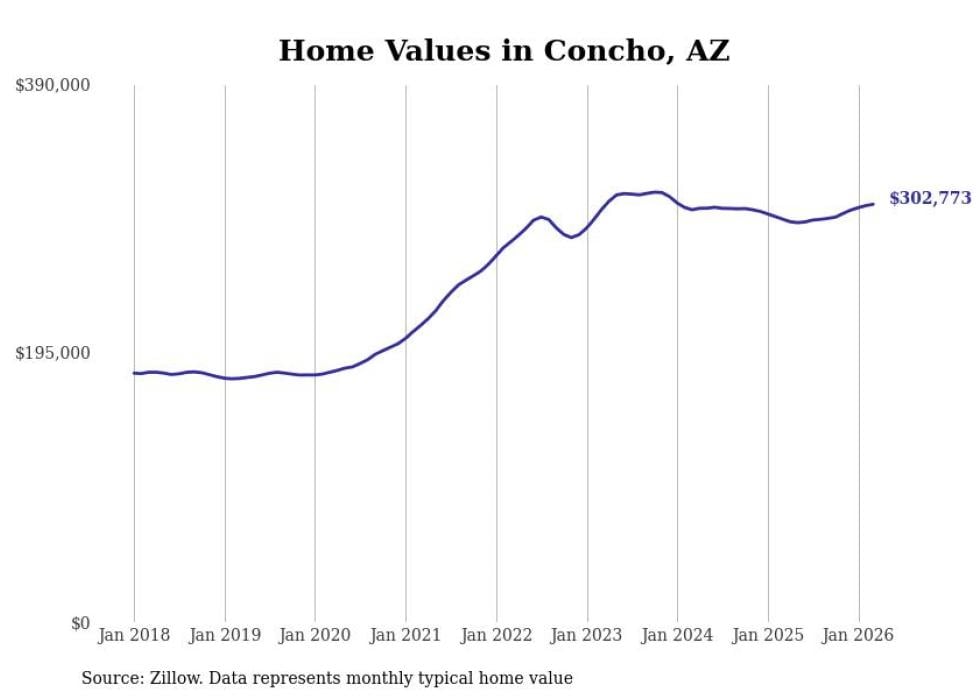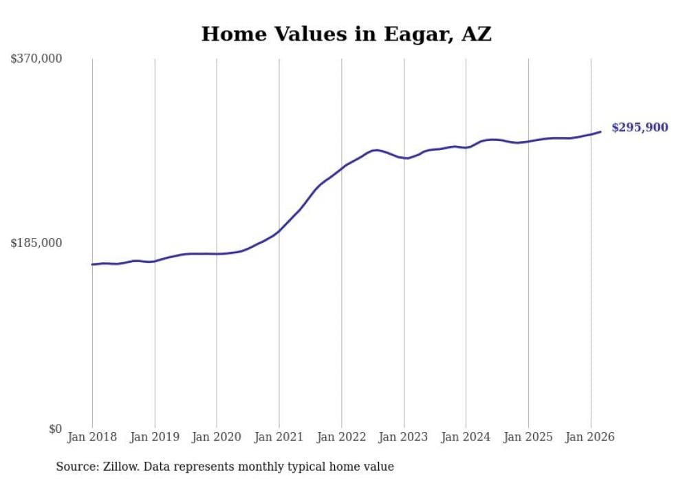 compiled a list of cities with the fastest-growing home prices in Arizona using data from . Cities are ranked by the dollar change in the Zillow Home Values Index for all homes from the 12 months ending March 2026. The charts in this story were created automatically using . Data was available for 50 cities and towns in Arizona.