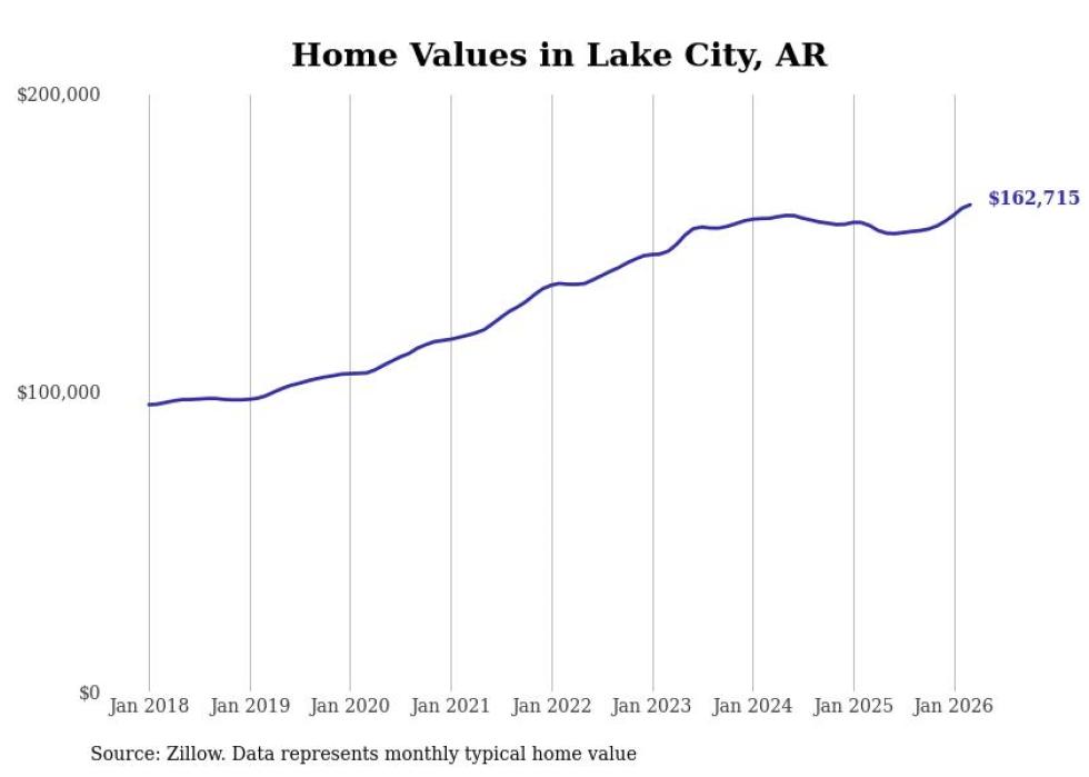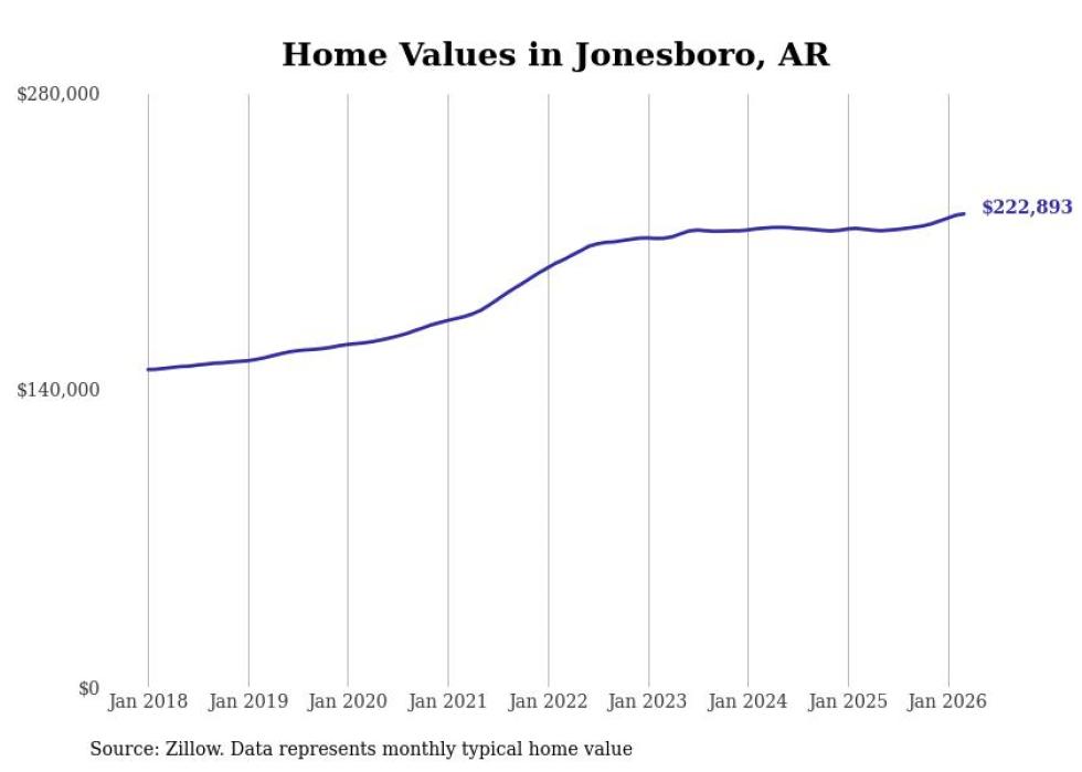 compiled a list of cities with the most expensive homes in the Jonesboro, AR metro area using data from . Charts show the monthly typical home value since January 2018.