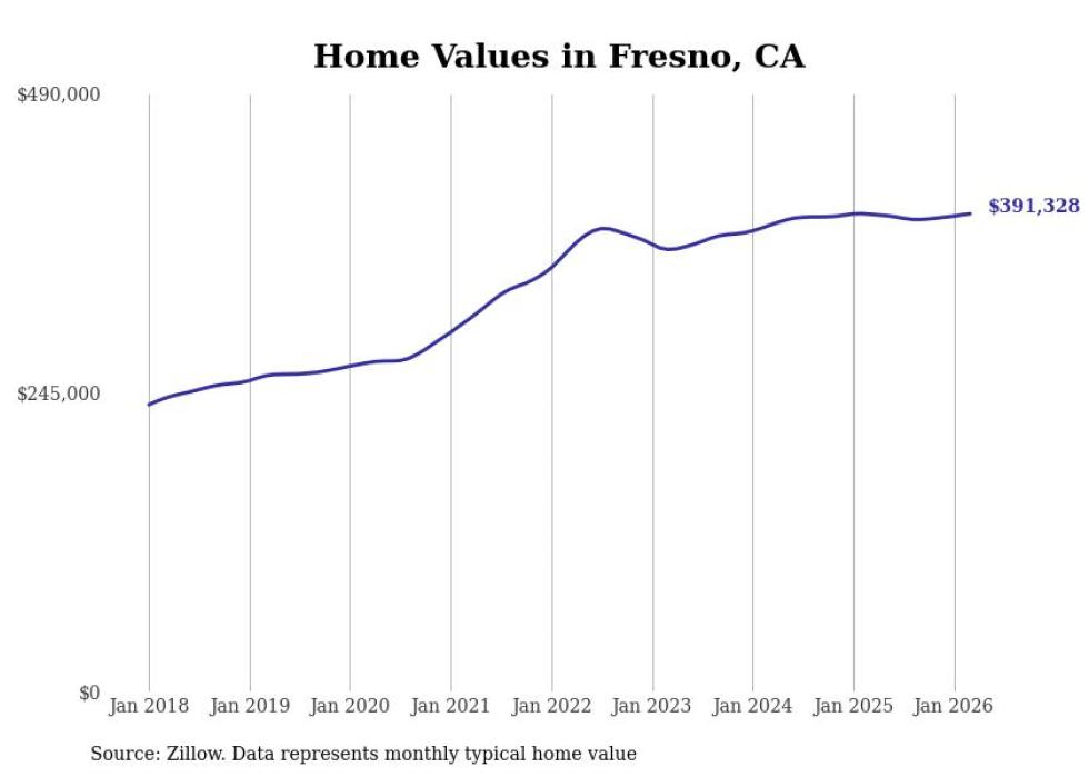 compiled a list of cities with the most expensive homes in the Fresno, CA metro area using data from . Charts show the monthly typical home value since January 2018.