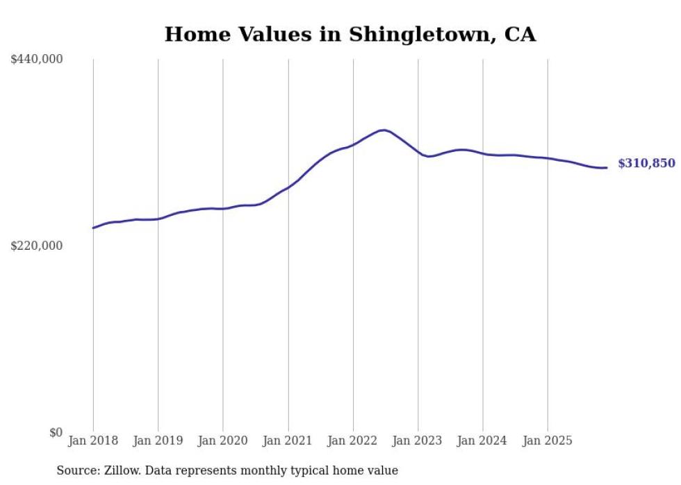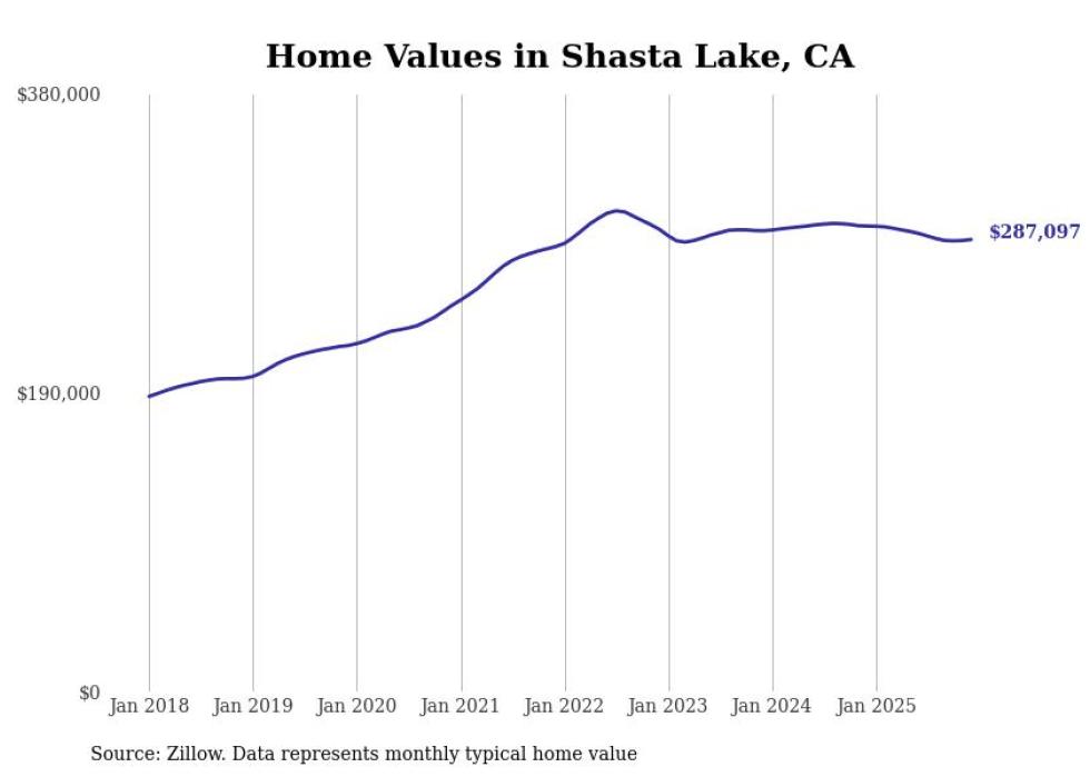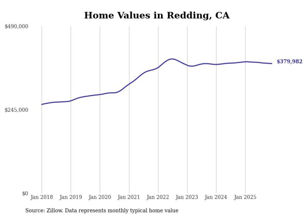 compiled a list of cities with the most expensive homes in the Redding, CA metro area using data from . Charts show the monthly typical home value since January 2018.
