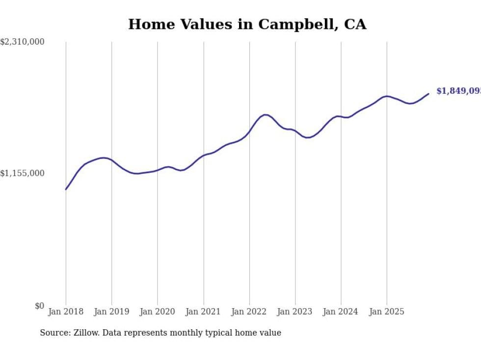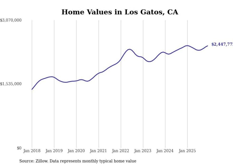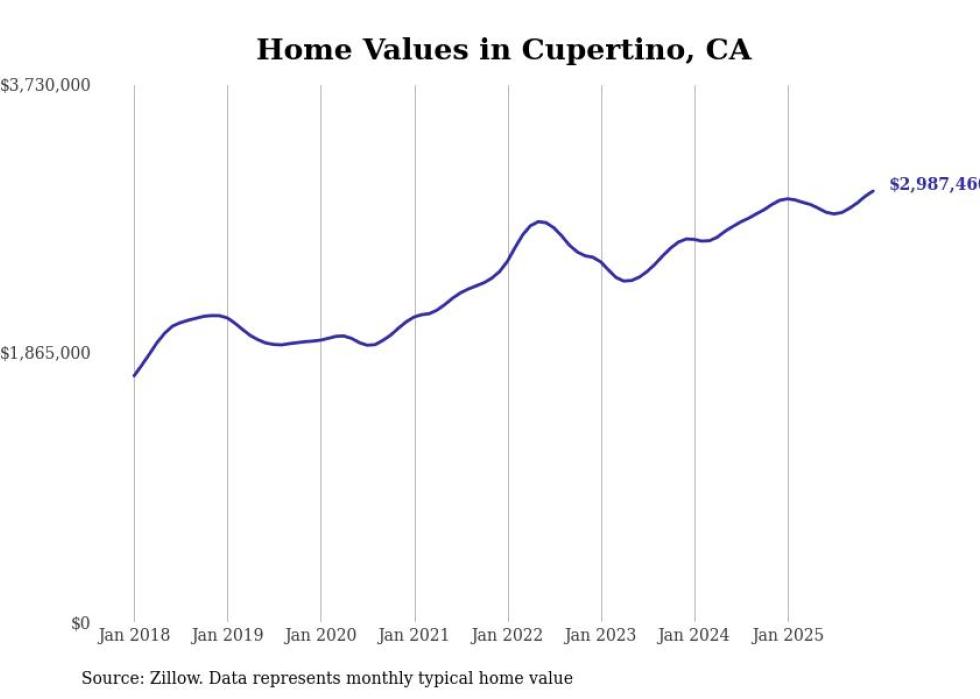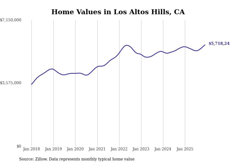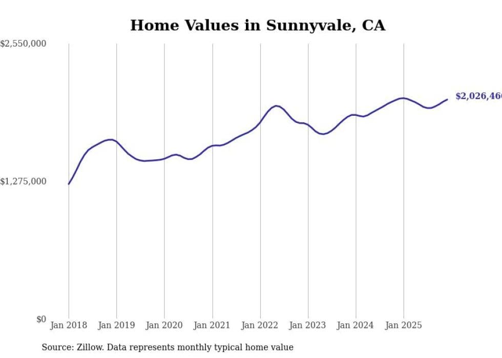 compiled a list of cities with the most expensive homes in the San Jose-Sunnyvale-Santa Clara, CA metro area using data from . Charts show the monthly typical home value since January 2018.