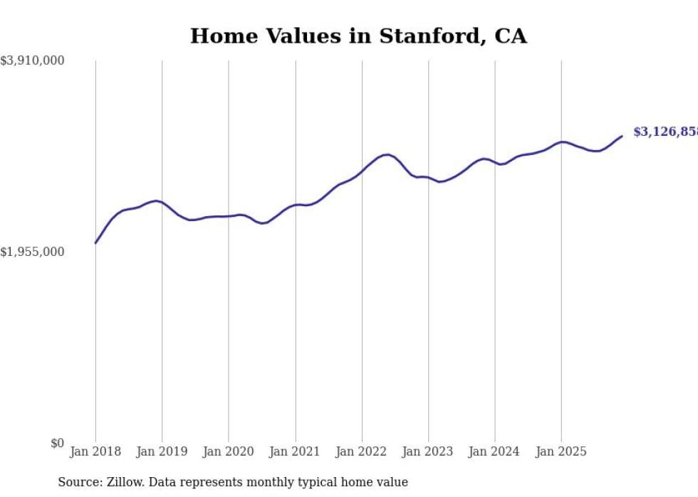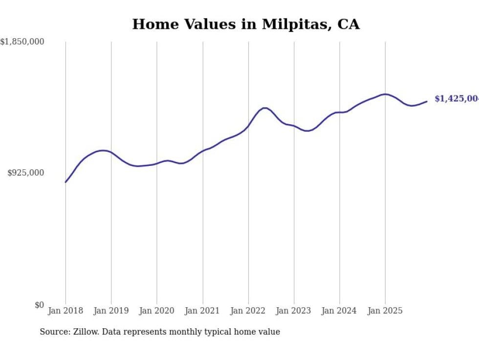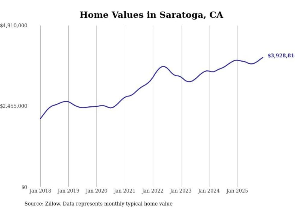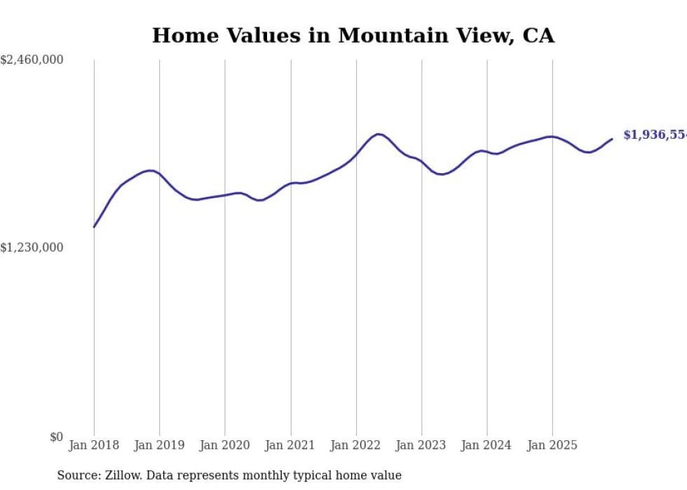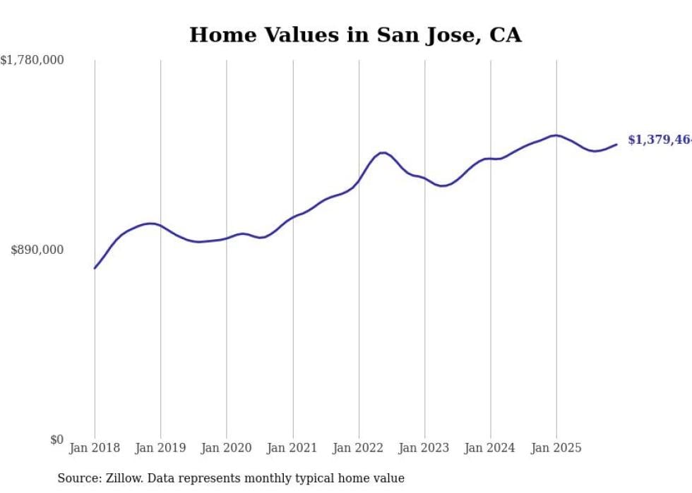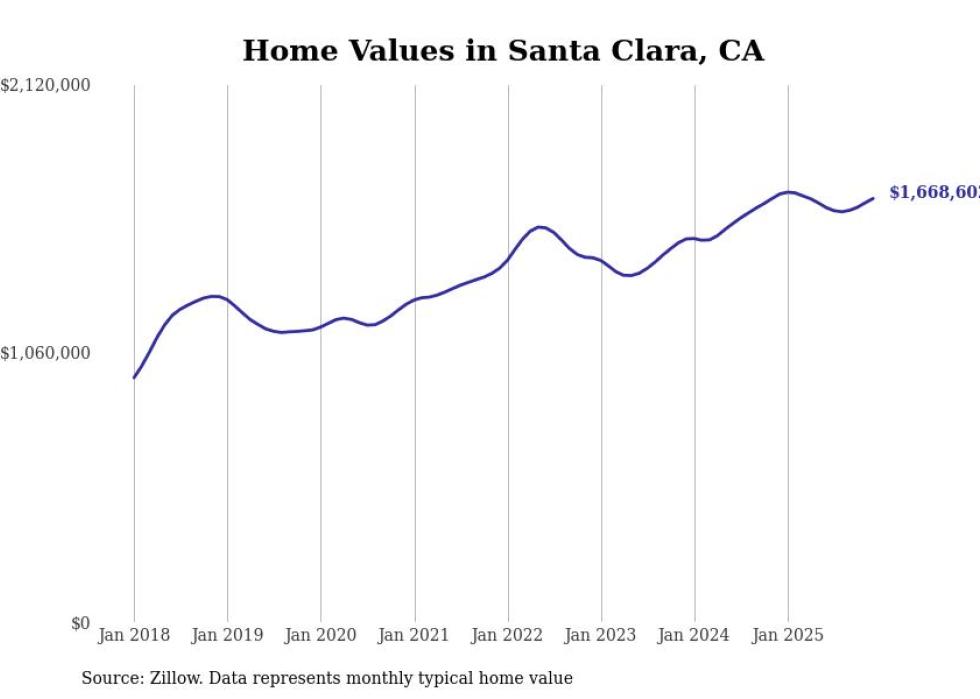 compiled a list of cities with the most expensive homes in the San Jose-Sunnyvale-Santa Clara, CA metro area using data from . Charts show the monthly typical home value since January 2018.