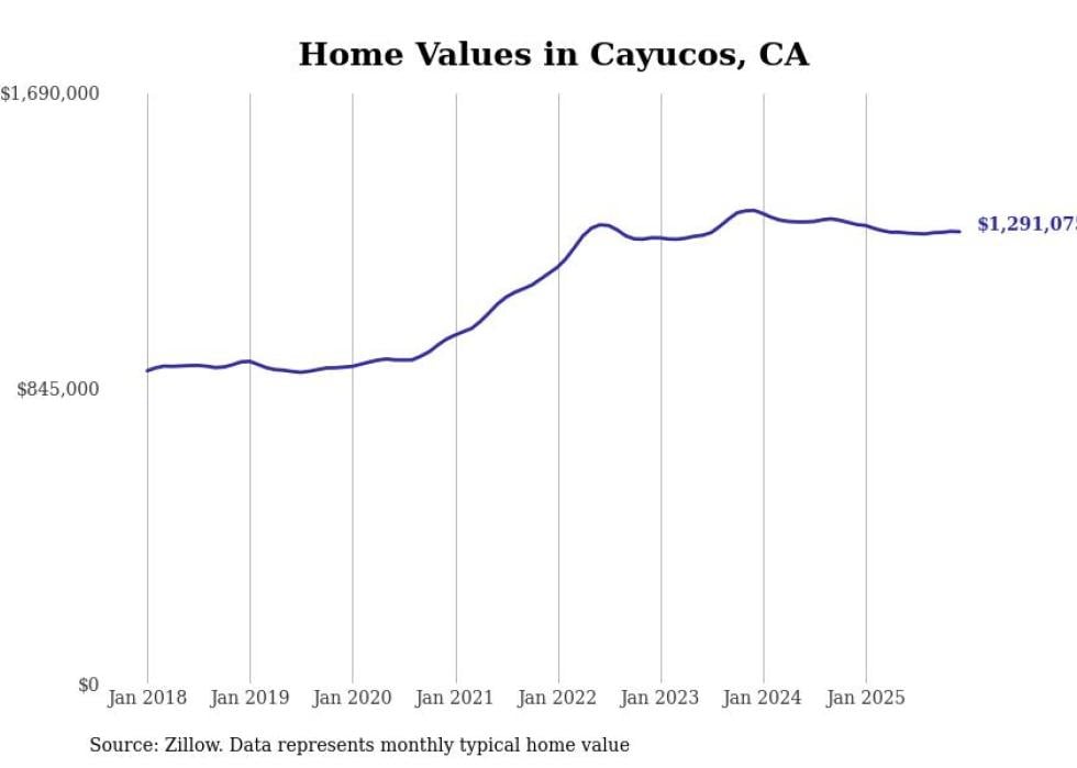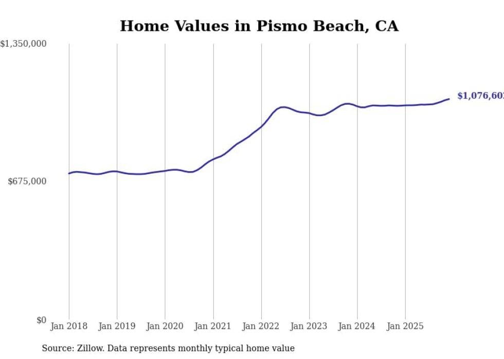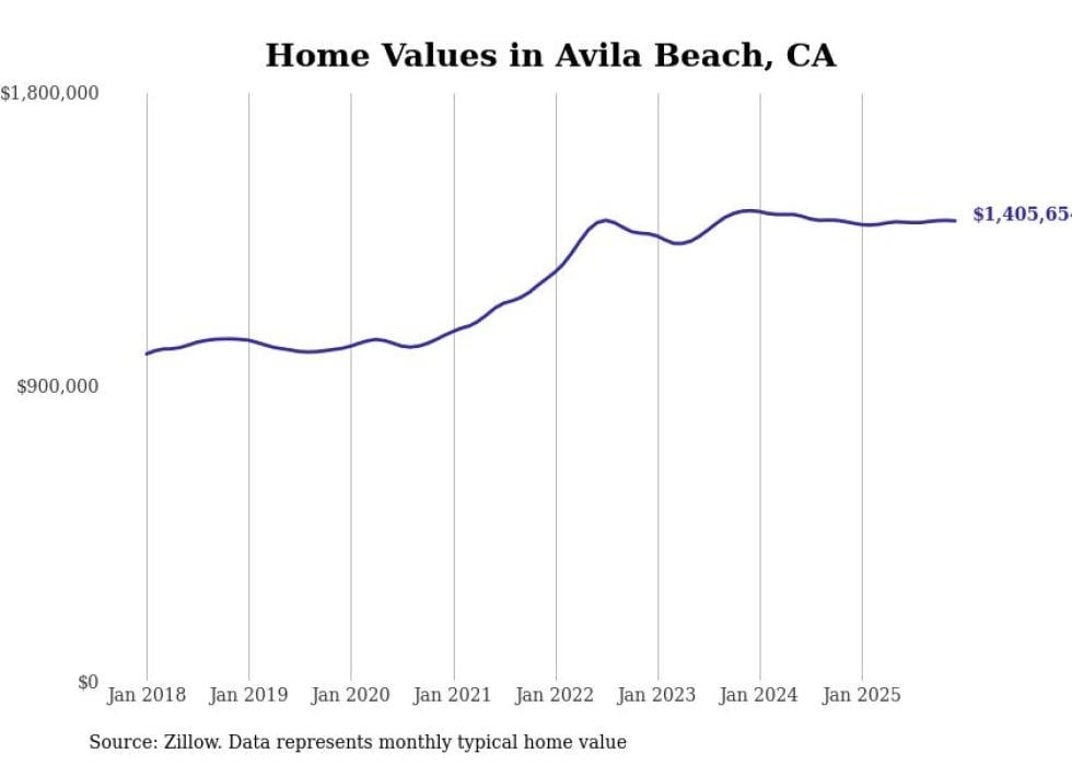 compiled a list of cities with the most expensive homes in the San Luis Obispo metro area using data from . Charts show the monthly typical home value since January 2018. All 17 cities and towns with data available were included in the list.