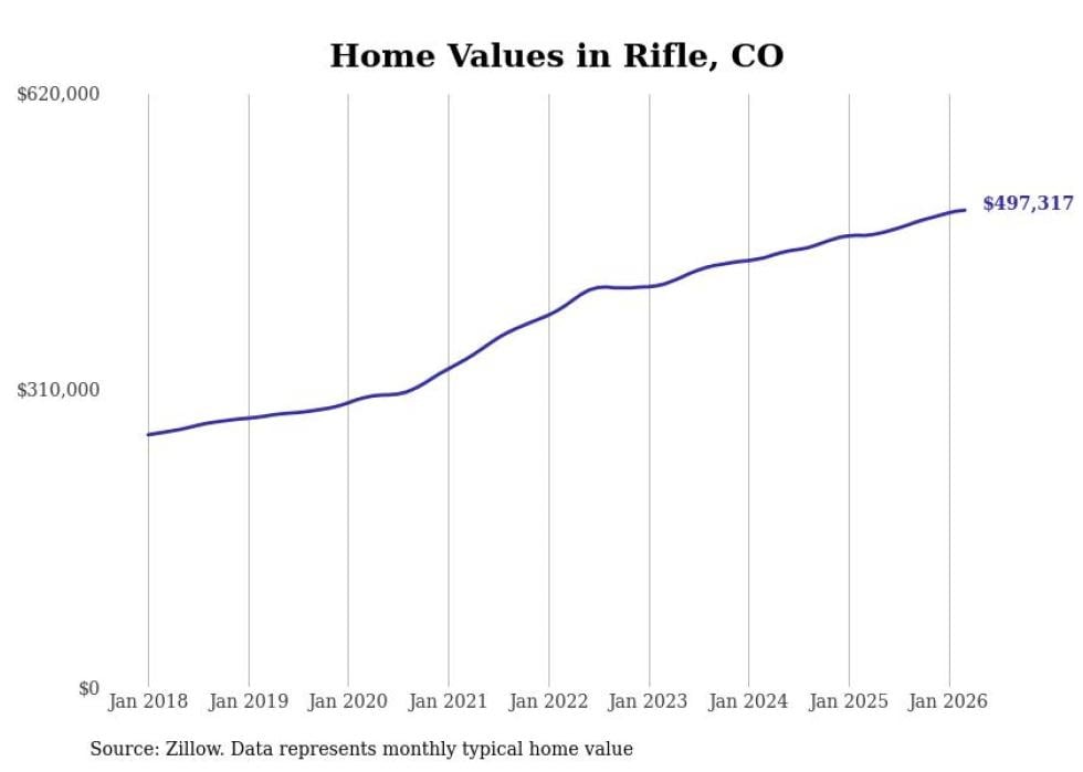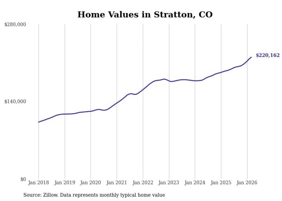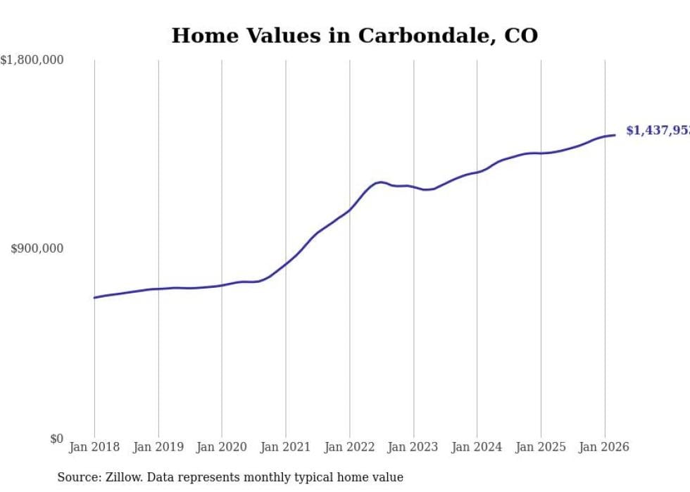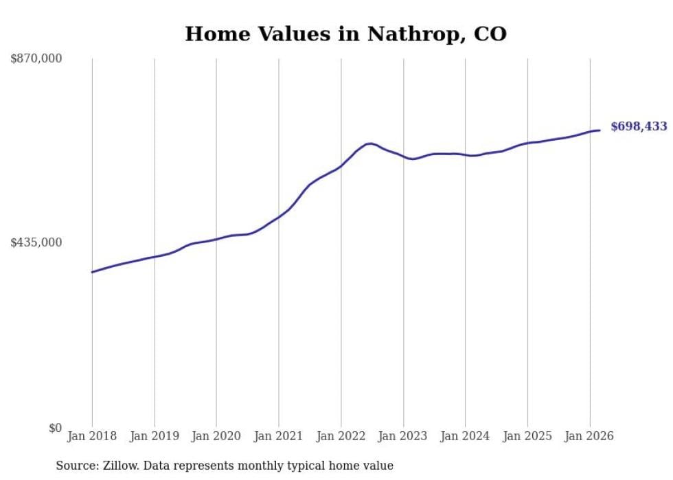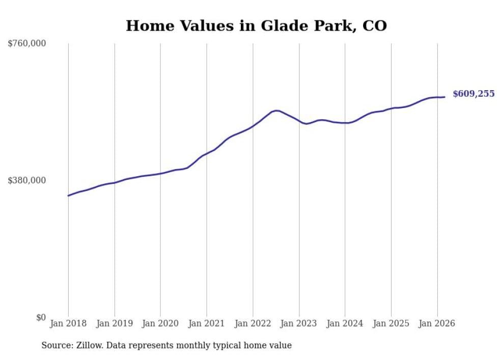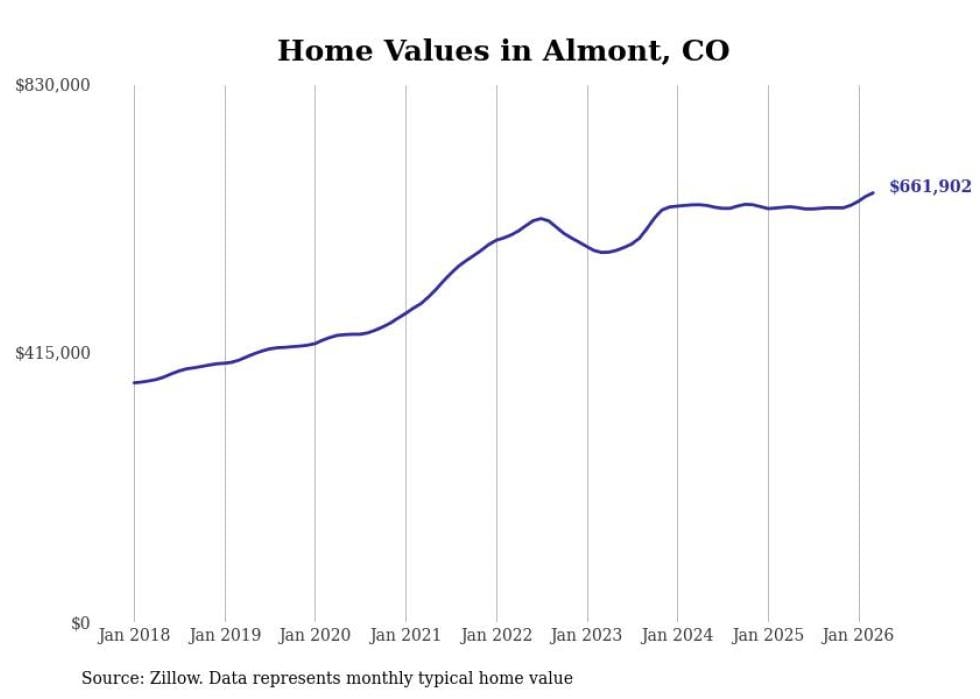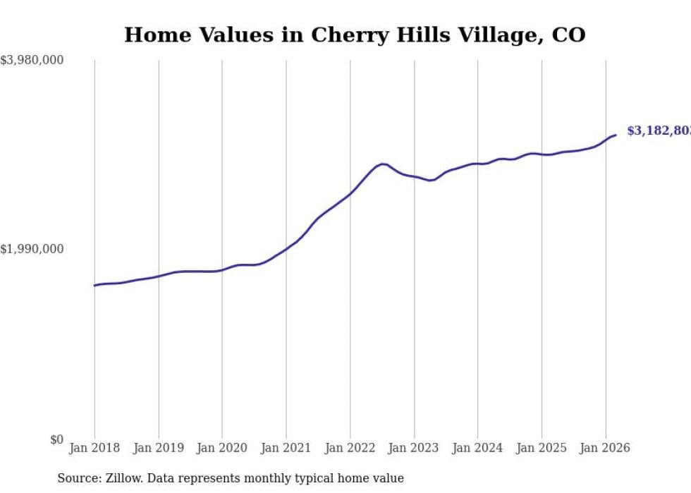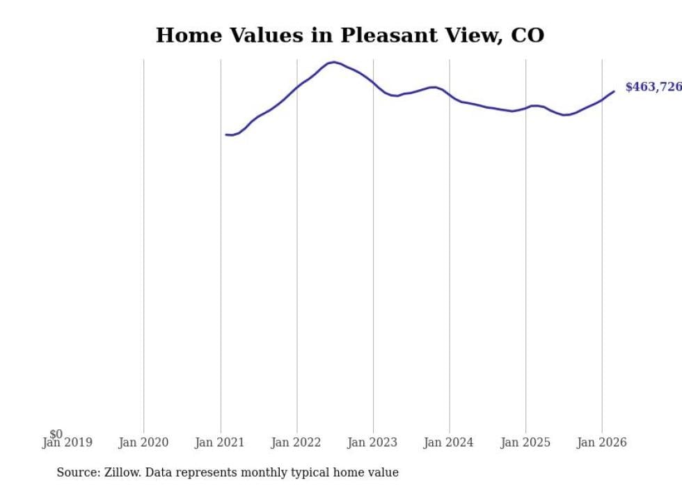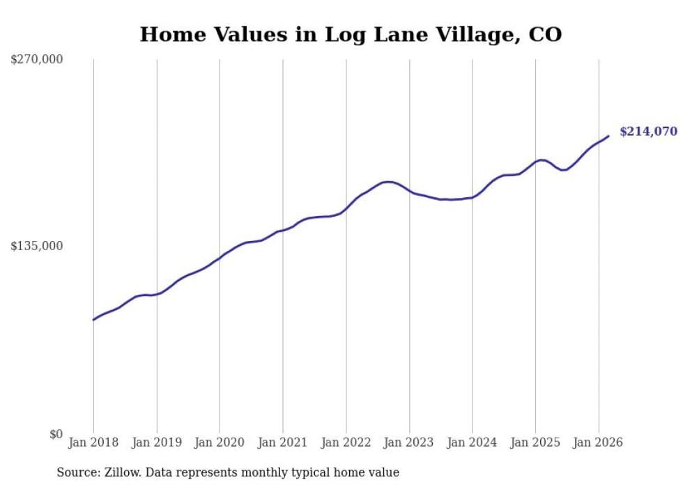 compiled a list of cities with the fastest-growing home prices in Colorado using data from . Cities are ranked by the dollar change in the Zillow Home Values Index for all homes from the 12 months ending March 2026. The charts in this story were created automatically using . Data was available for 50 cities and towns in Colorado.