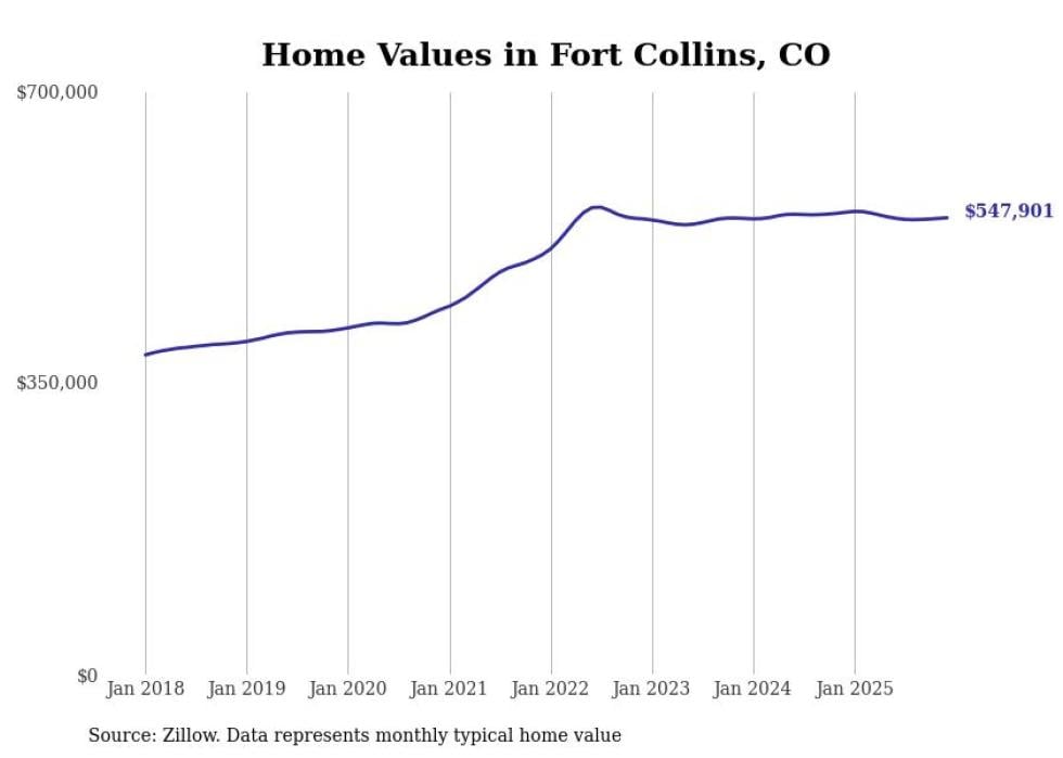compiled a list of cities with the most expensive homes in the Fort Collins metro area using data from . Charts show the monthly typical home value since January 2018. All 11 cities and towns with data available were included in the list.