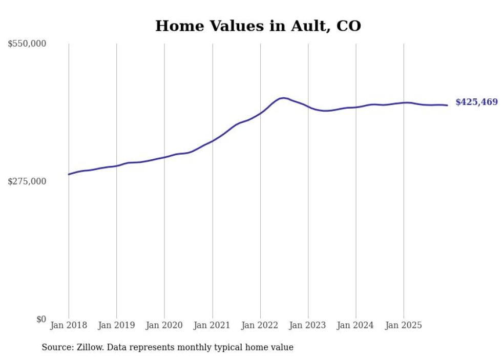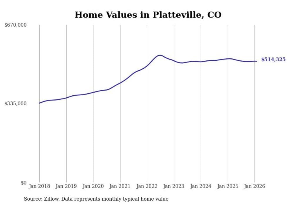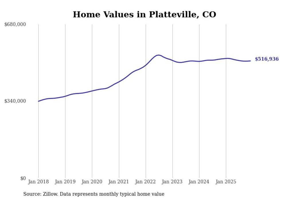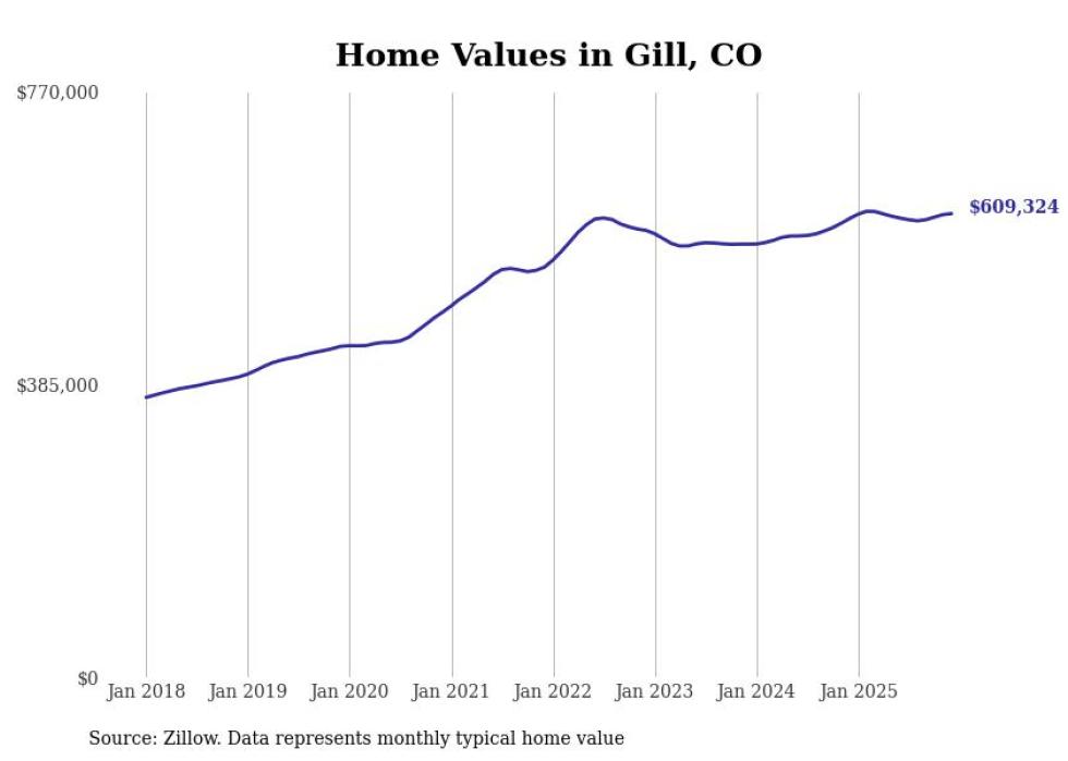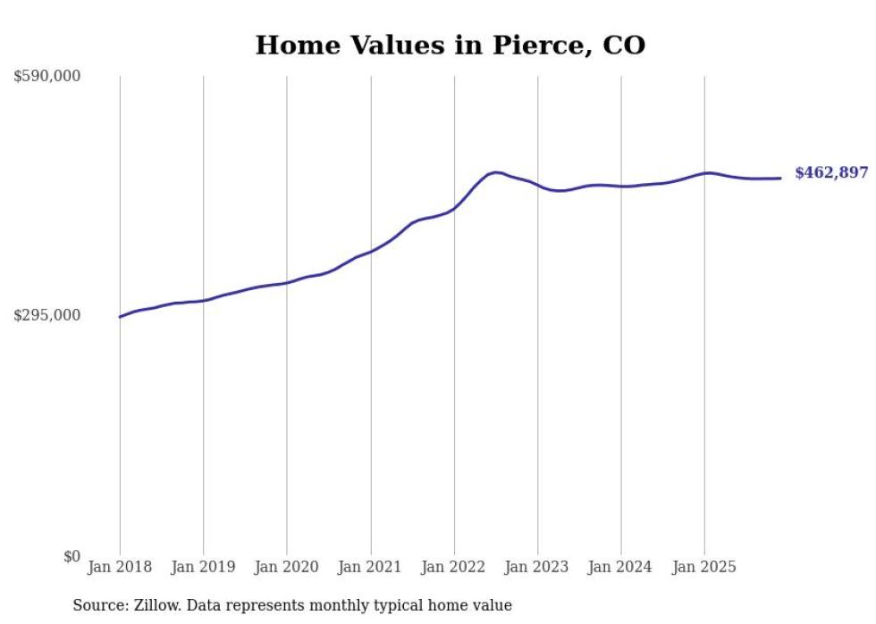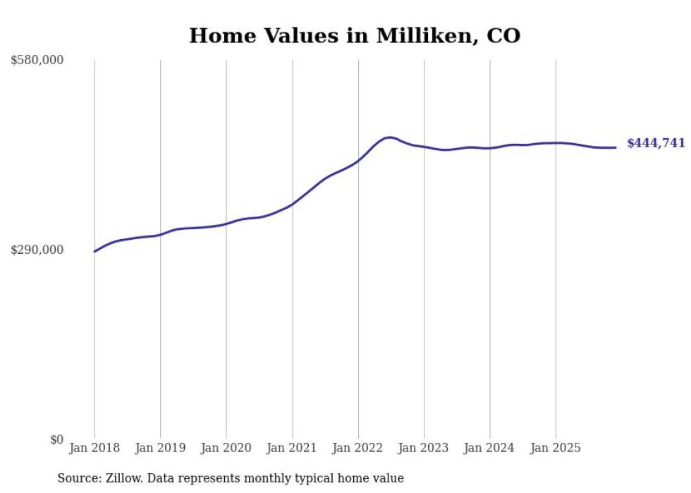 compiled a list of cities with the most expensive homes in the Greeley, CO metro area using data from . Charts show the monthly typical home value since January 2018.