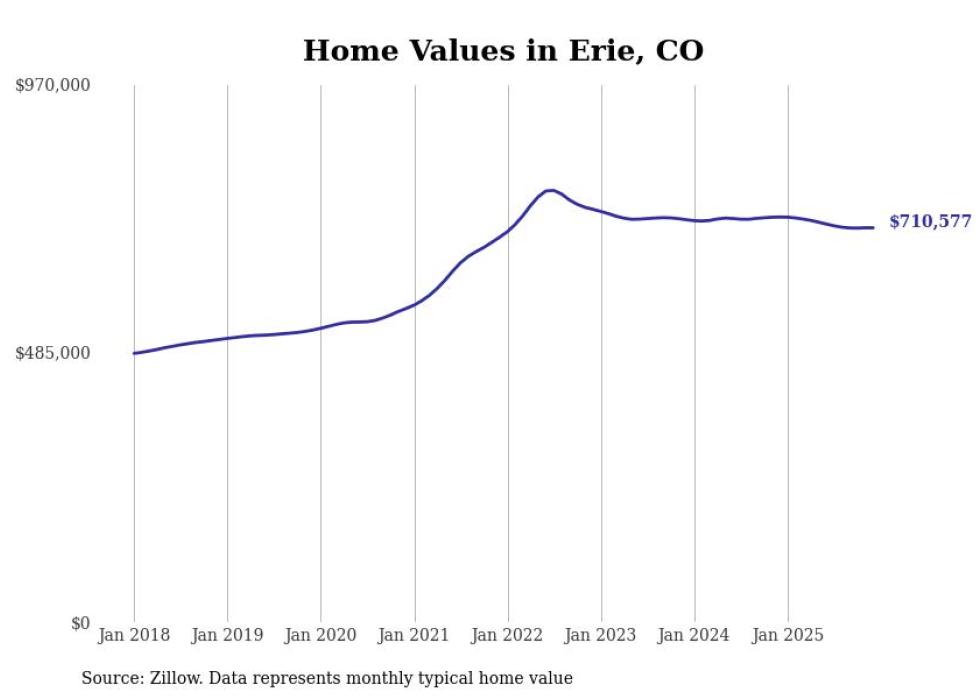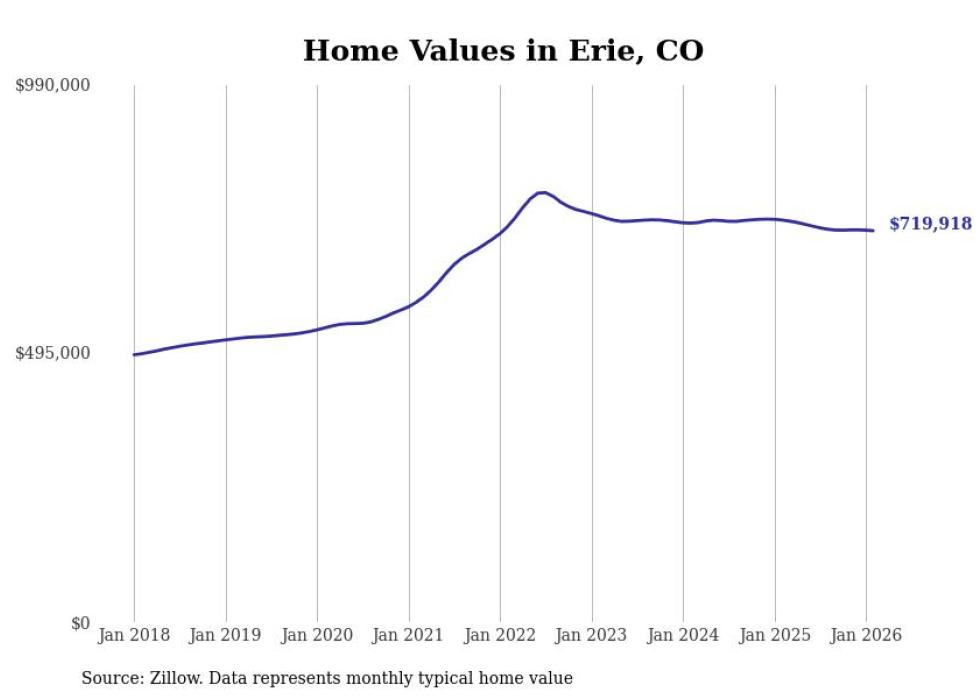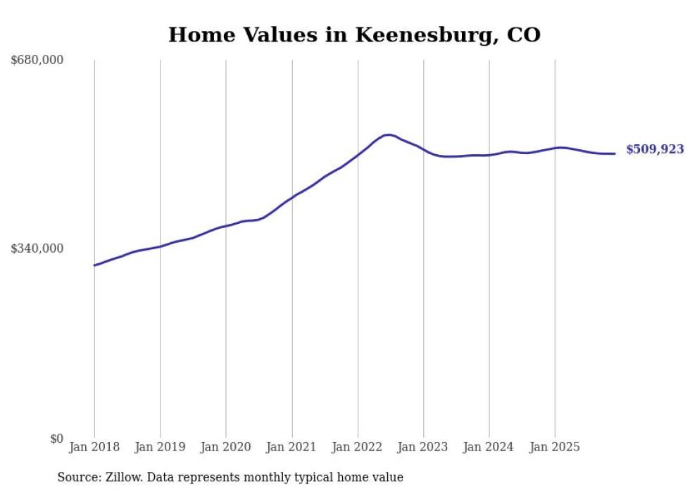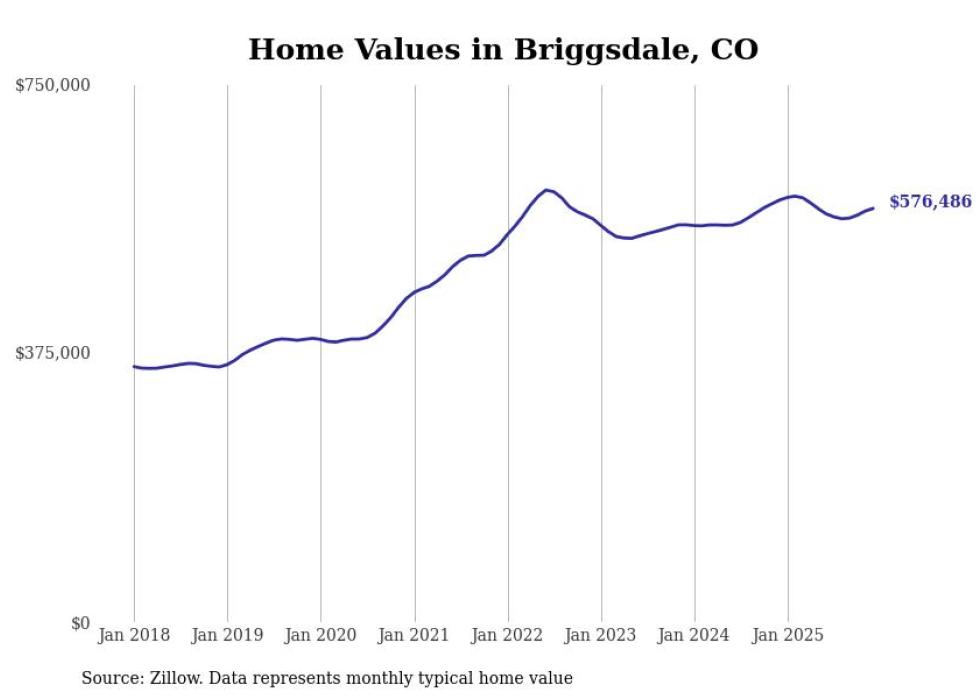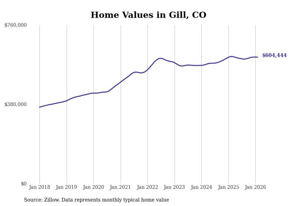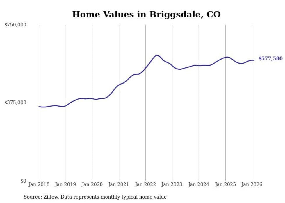 compiled a list of cities with the most expensive homes in the Greeley, CO metro area using data from . Charts show the monthly typical home value since January 2018.
