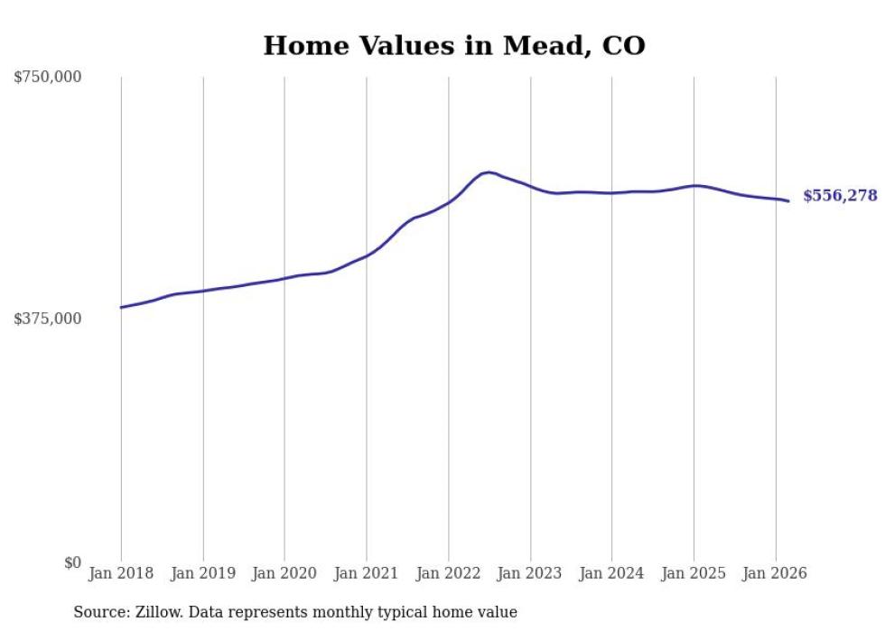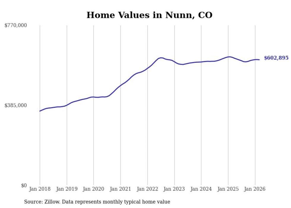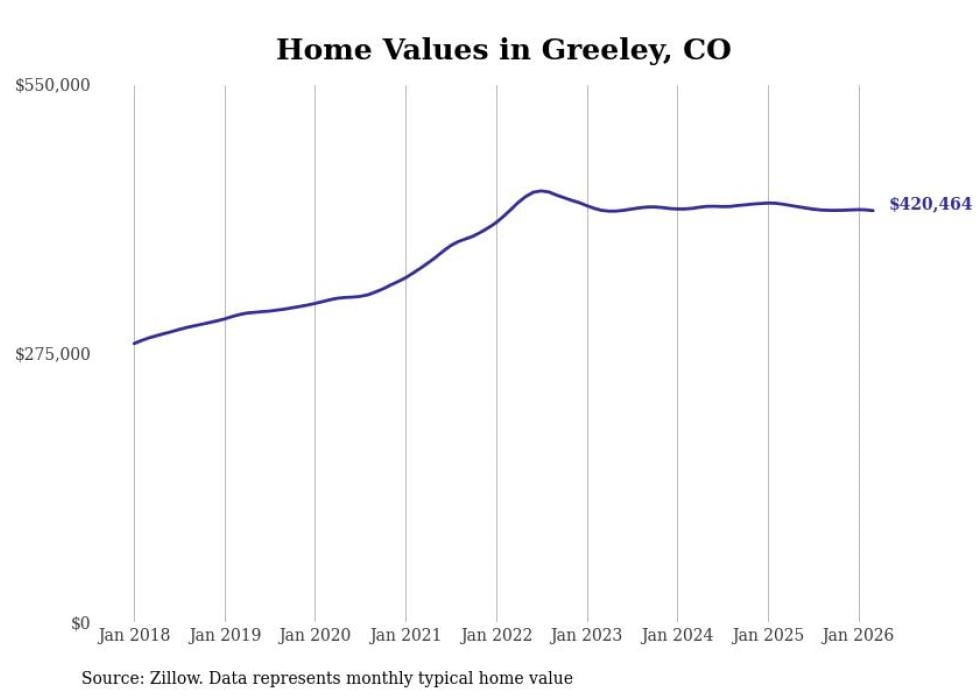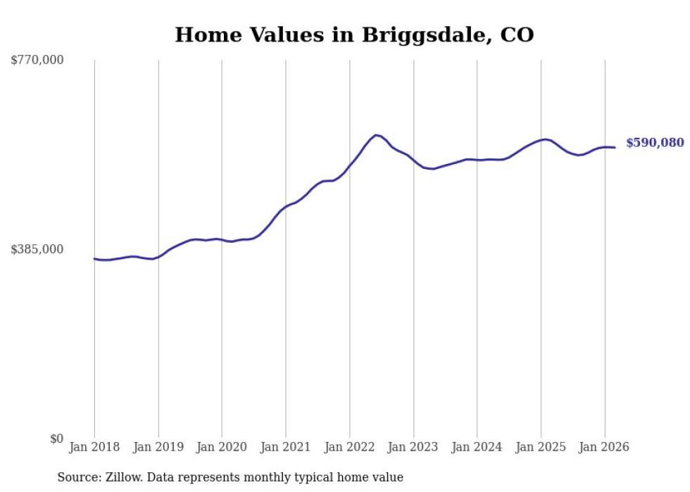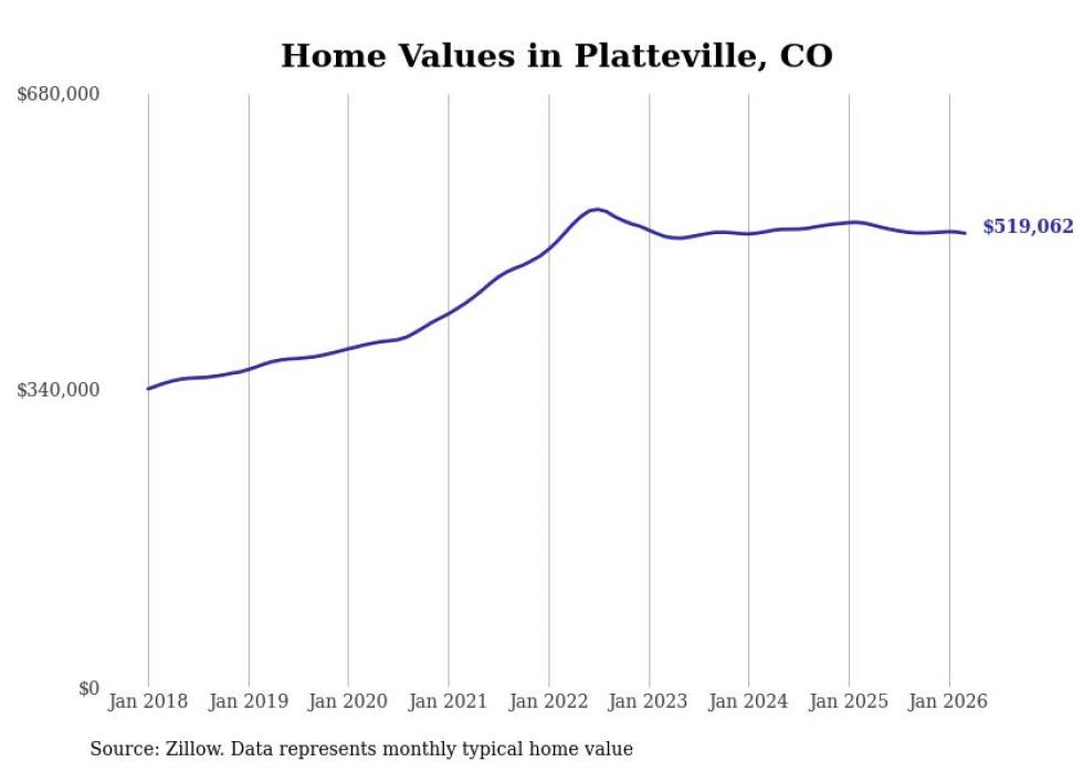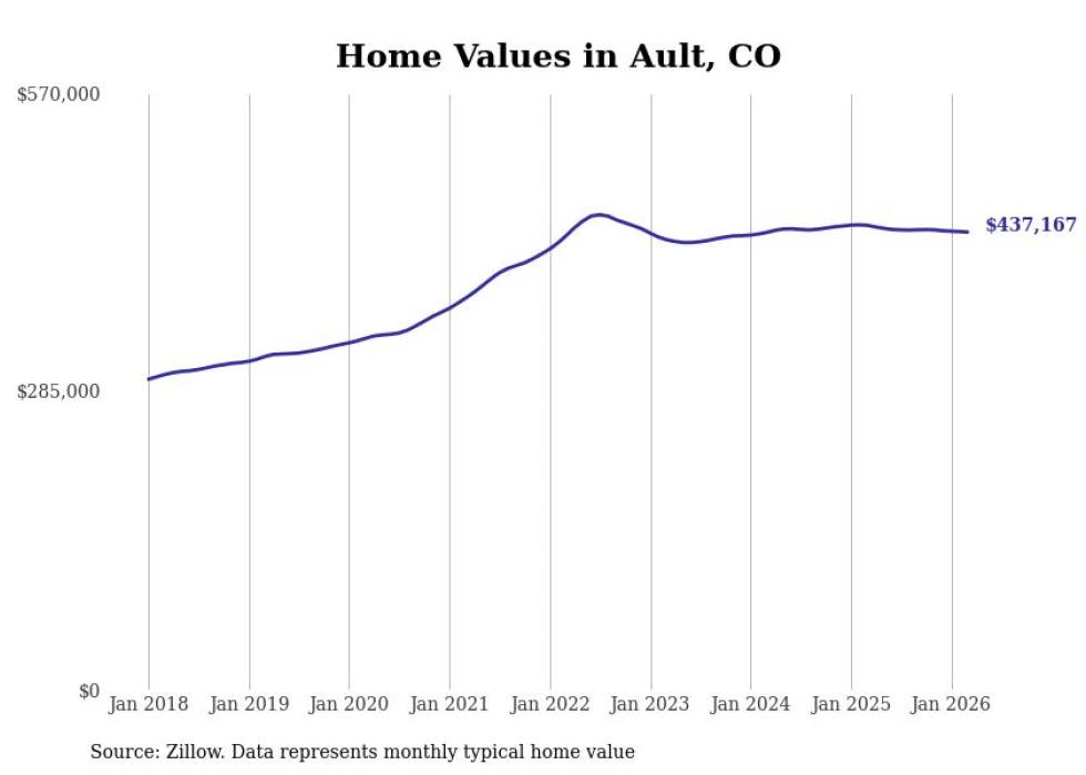 compiled a list of cities with the most expensive homes in the Greeley metro area using data from . Charts show the monthly typical home value since January 2018. All 25 cities and towns with data available were included in the list.