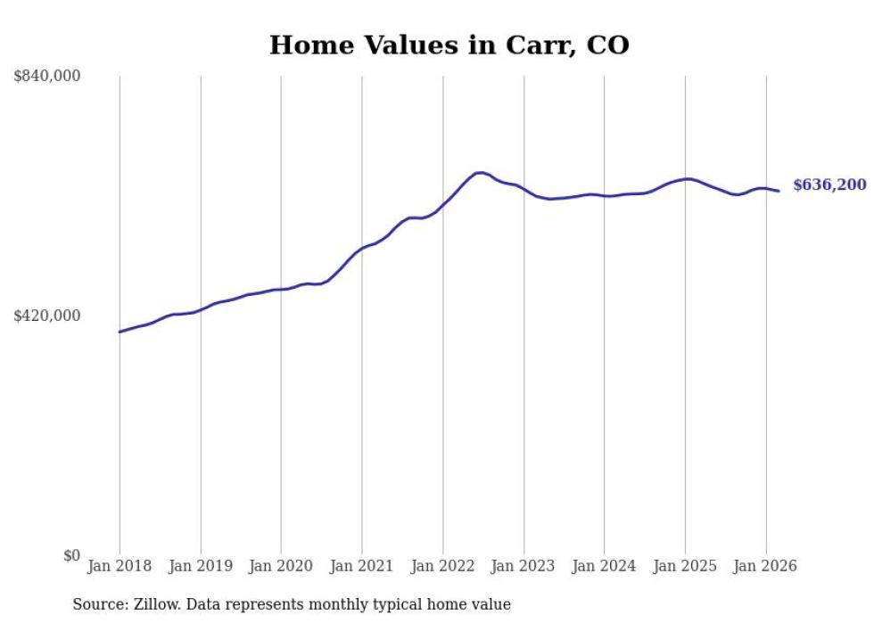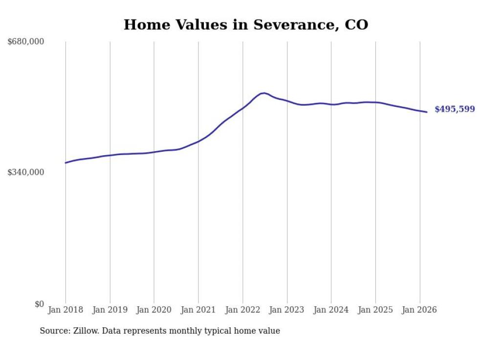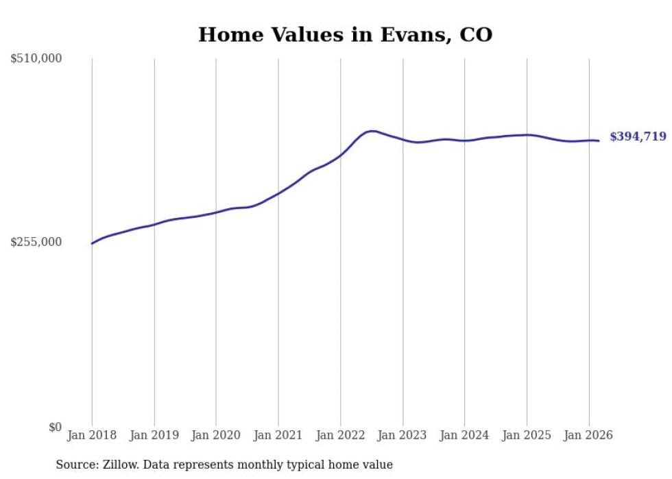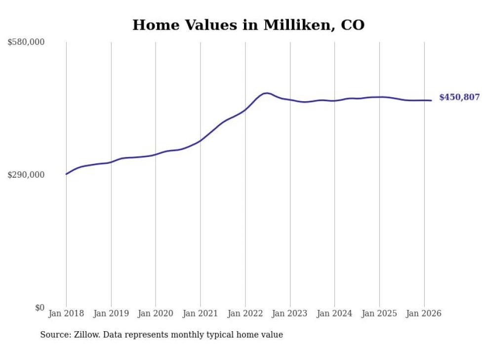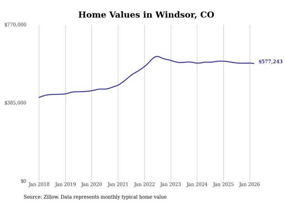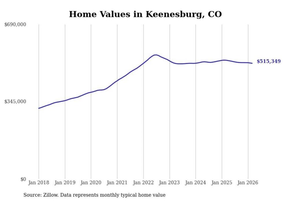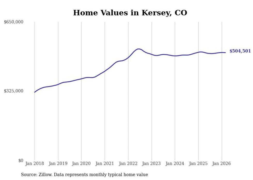compiled a list of cities with the most expensive homes in the Greeley metro area using data from . Charts show the monthly typical home value since January 2018. All 25 cities and towns with data available were included in the list.