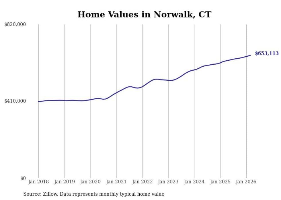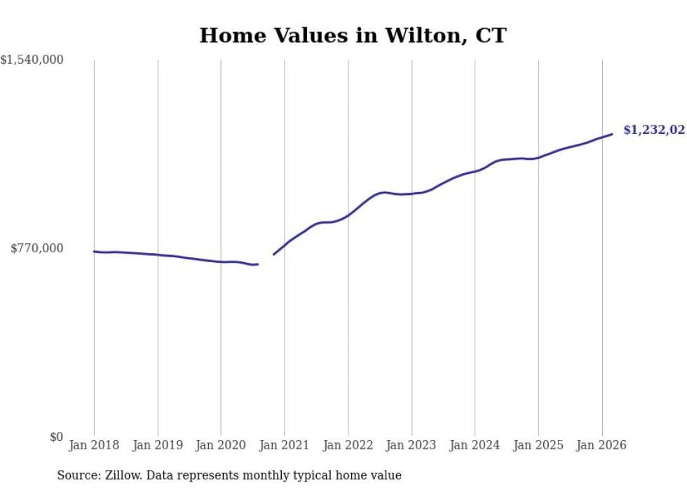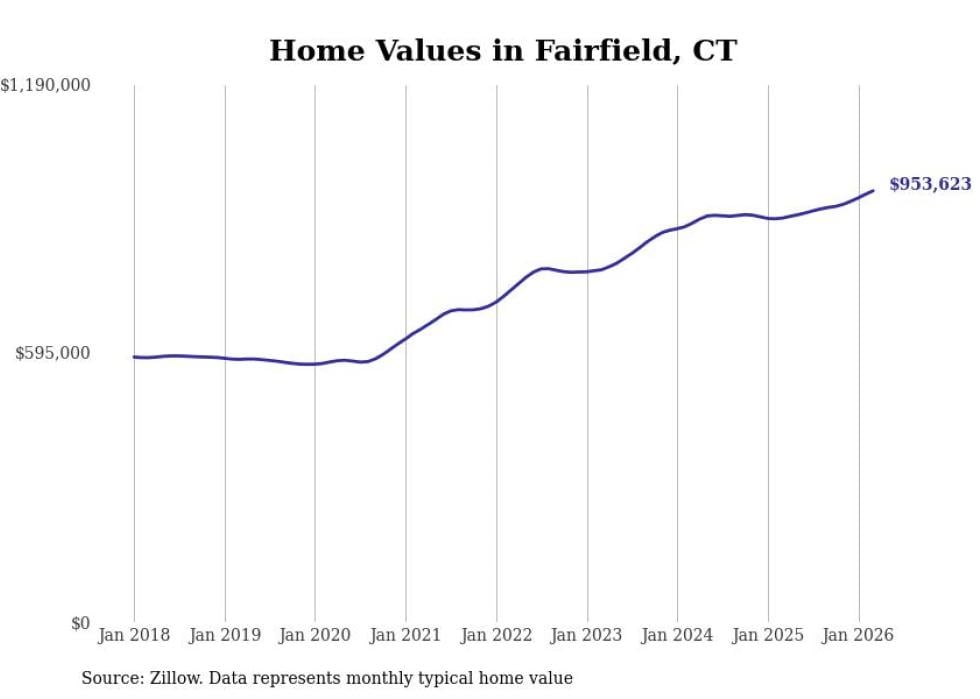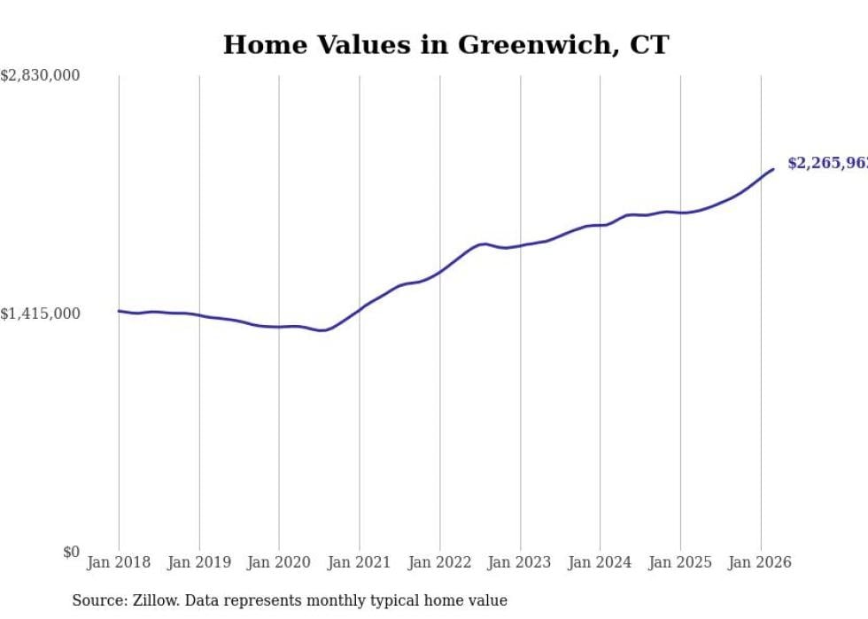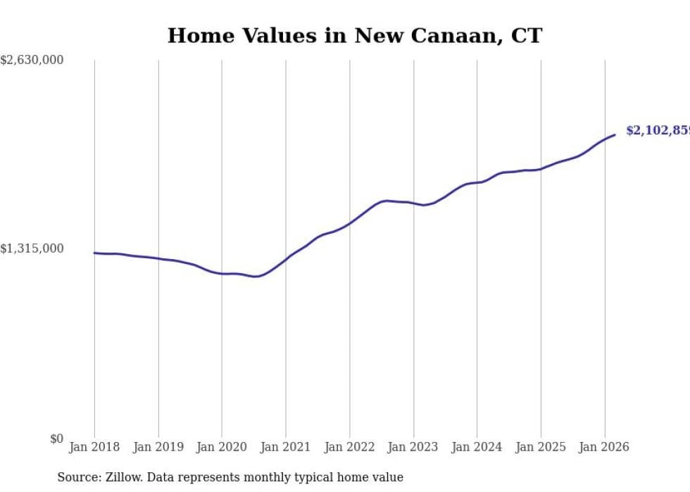 compiled a list of cities with the most expensive homes in Connecticut using data from . Cities are ranked by the Zillow Home Values Index for all homes as of March 2026. The charts in this story were created automatically using .