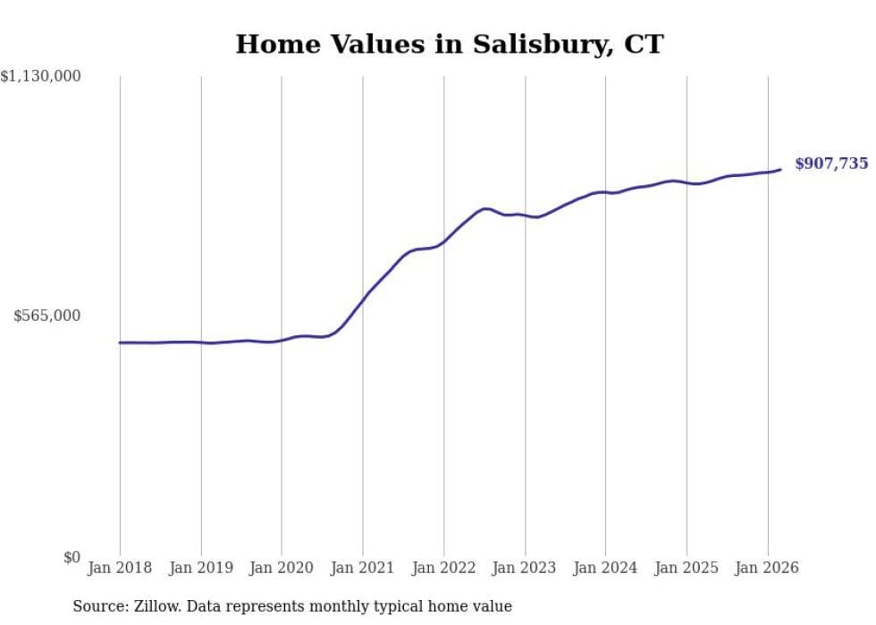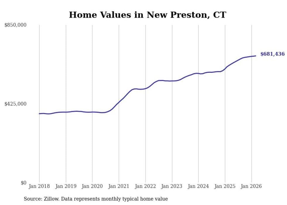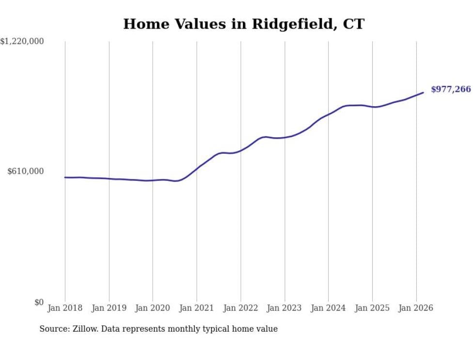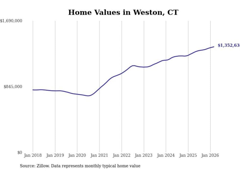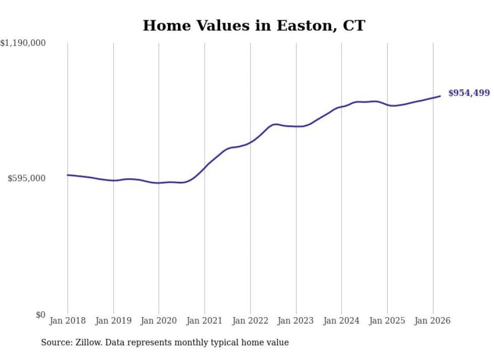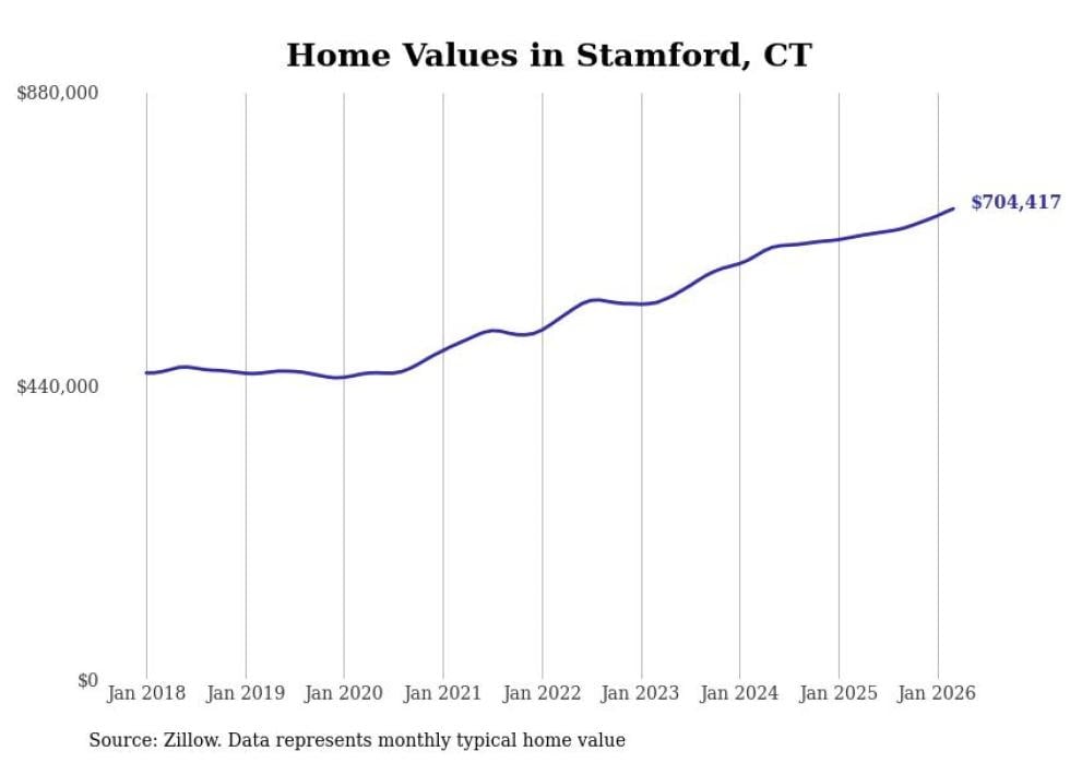 compiled a list of cities with the most expensive homes in Connecticut using data from . Cities are ranked by the Zillow Home Values Index for all homes as of March 2026. The charts in this story were created automatically using .