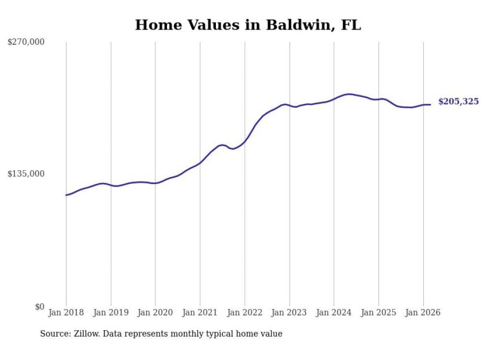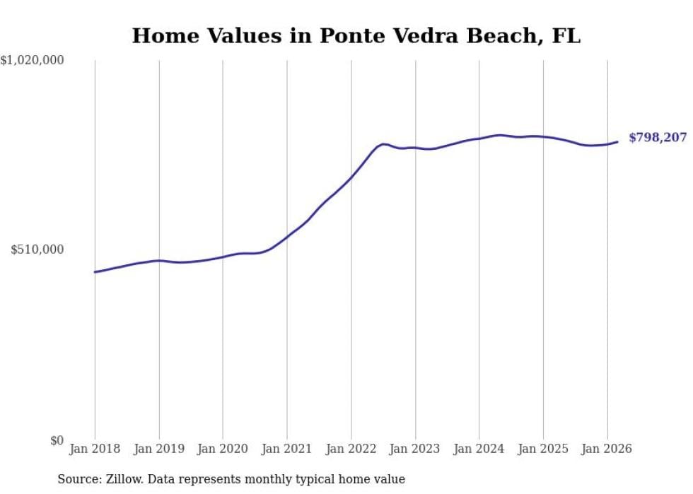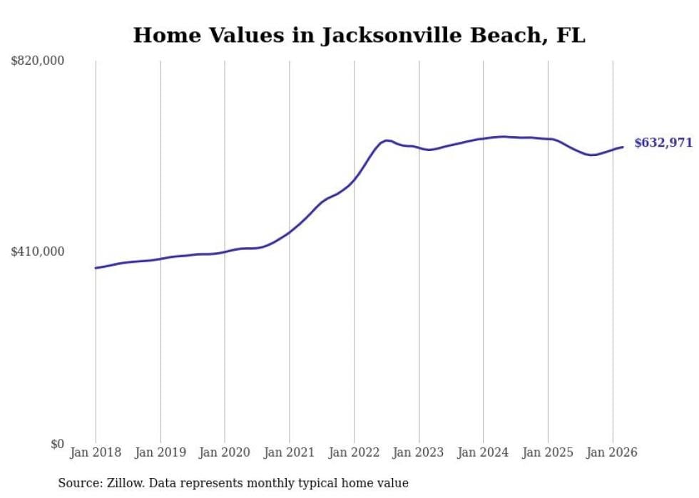 compiled a list of cities with the most expensive homes in the Jacksonville, FL metro area using data from . Charts show the monthly typical home value since January 2018.