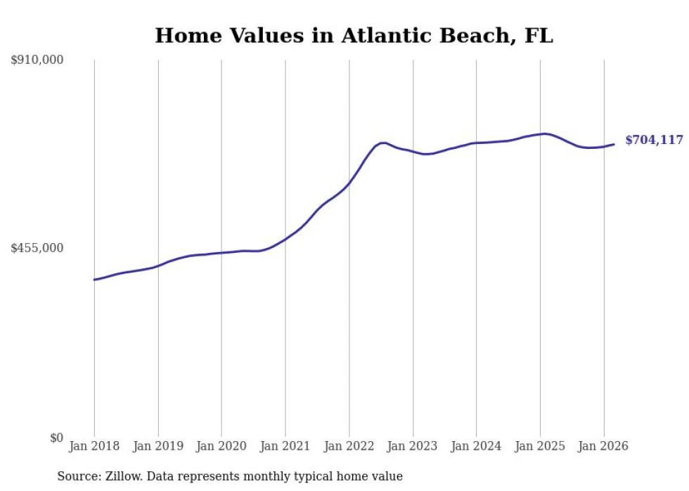 compiled a list of cities with the most expensive homes in the Jacksonville metro area using data from . Charts show the monthly typical home value since January 2018. All 27 cities and towns with data available were included in the list.