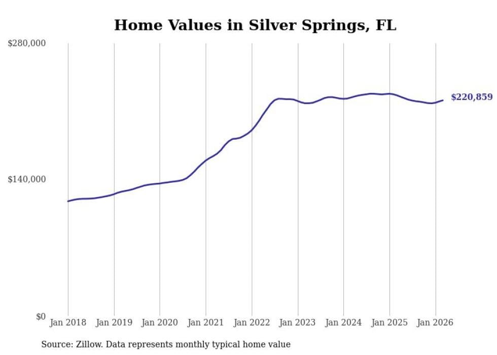 compiled a list of cities with the most expensive homes in the Ocala metro area using data from . Charts show the monthly typical home value since January 2018. All 12 cities and towns with data available were included in the list.