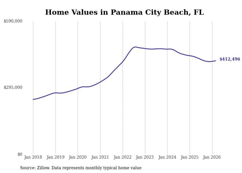 compiled a list of cities with the most expensive homes in the Panama City metro area using data from . Charts show the monthly typical home value since January 2018. All 10 cities and towns with data available were included in the list.