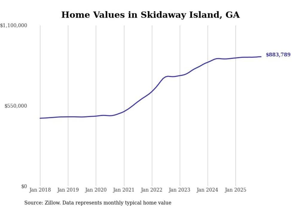 compiled a list of cities with the most expensive homes in the Savannah, GA metro area using data from . Charts show the monthly typical home value since January 2018.