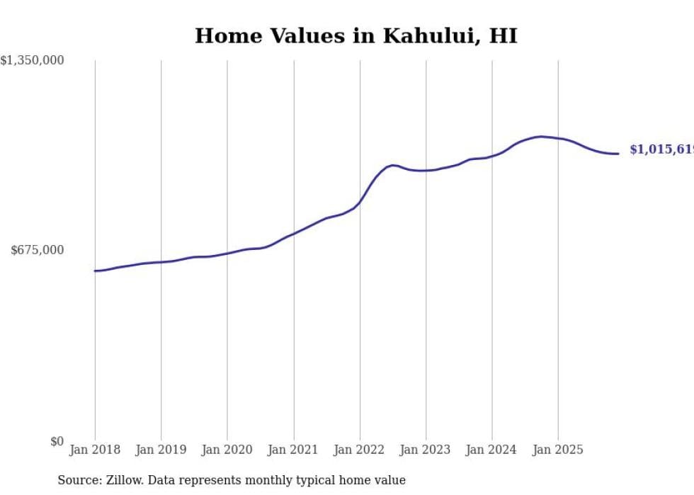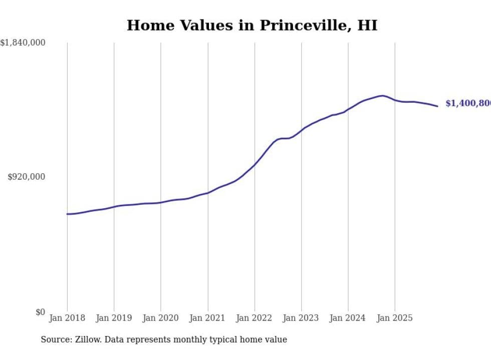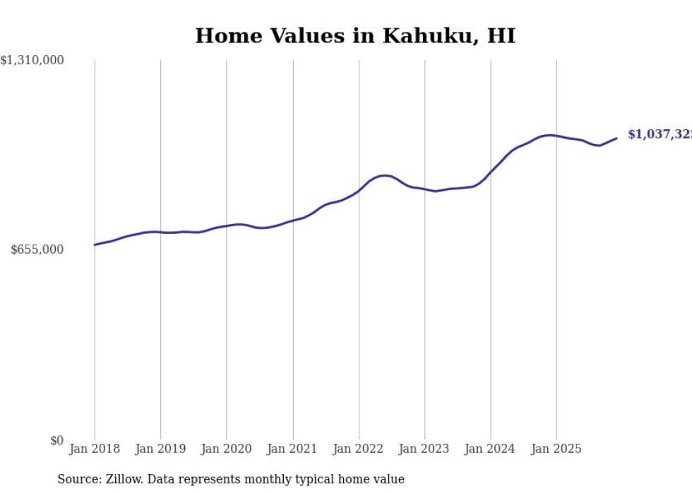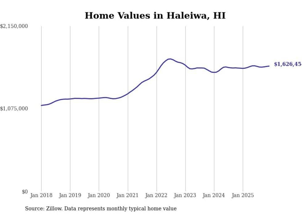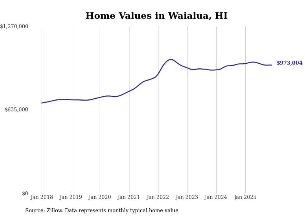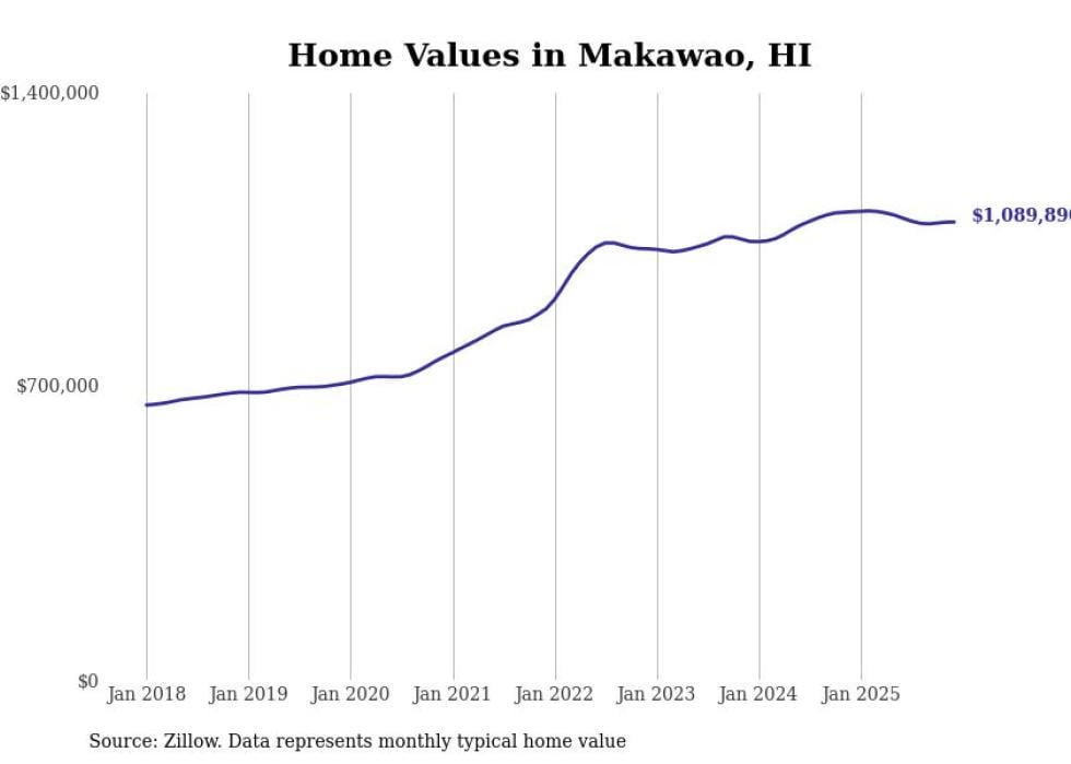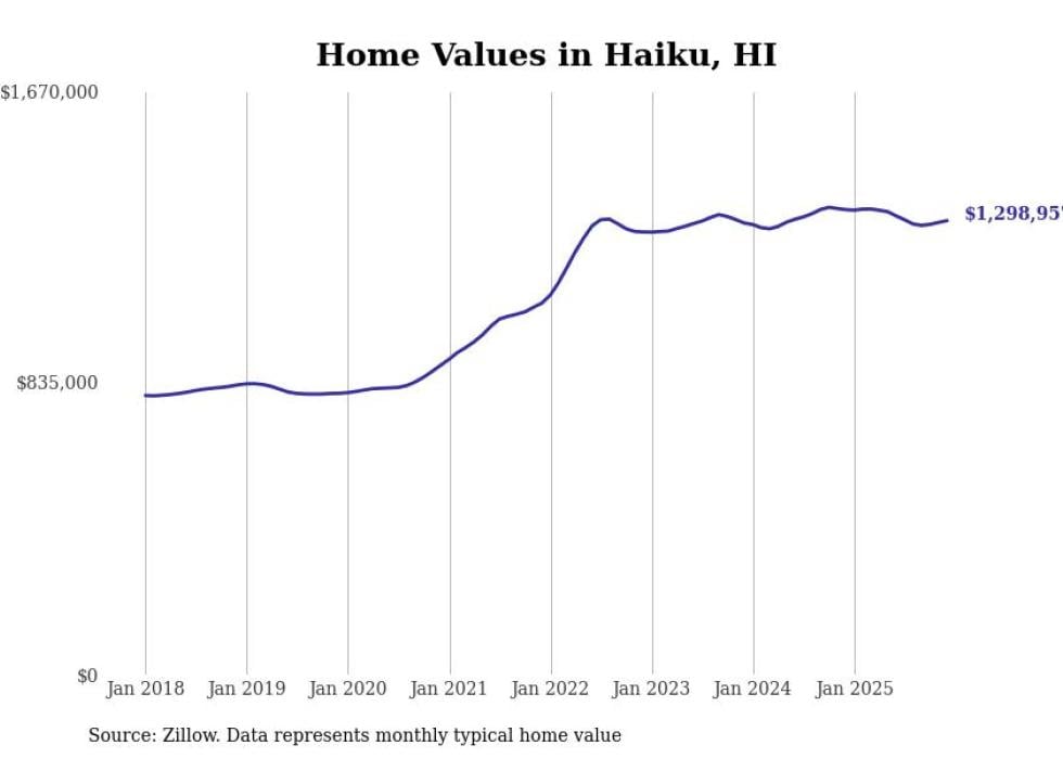 compiled a list of cities with the most expensive homes in Hawaii using data from . Cities are ranked by the Zillow Home Values Index for all homes as of December 2025. The charts in this story were created automatically using .
