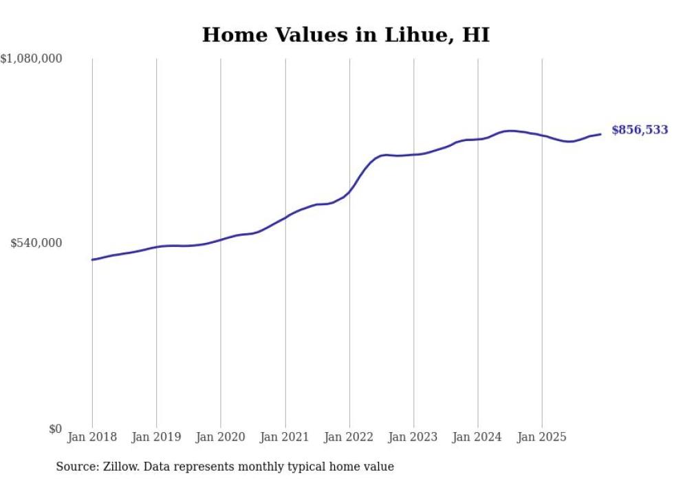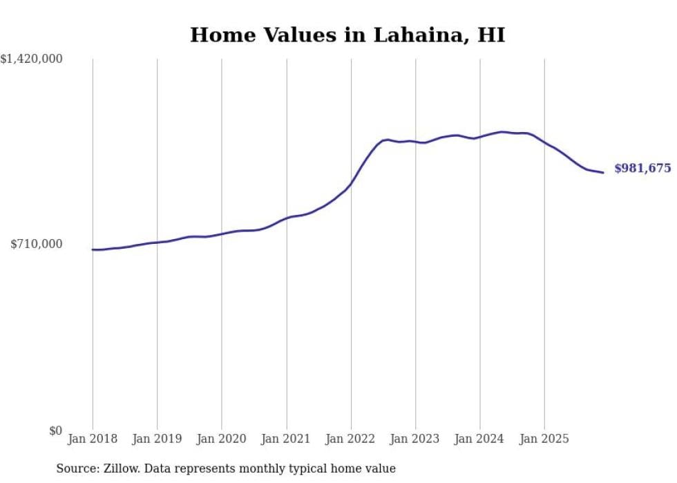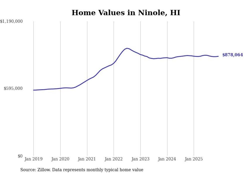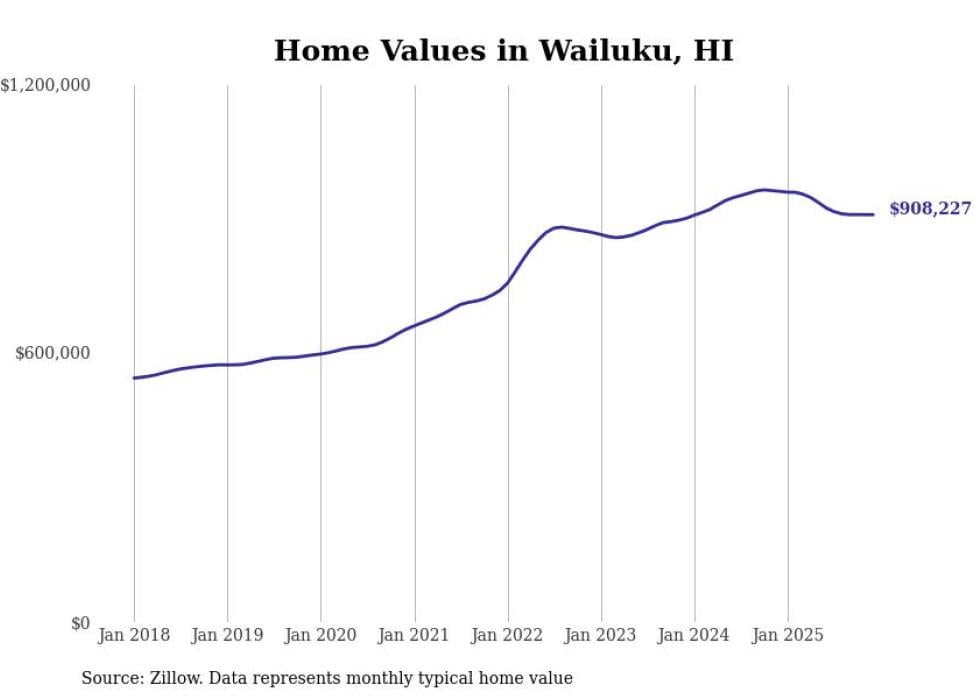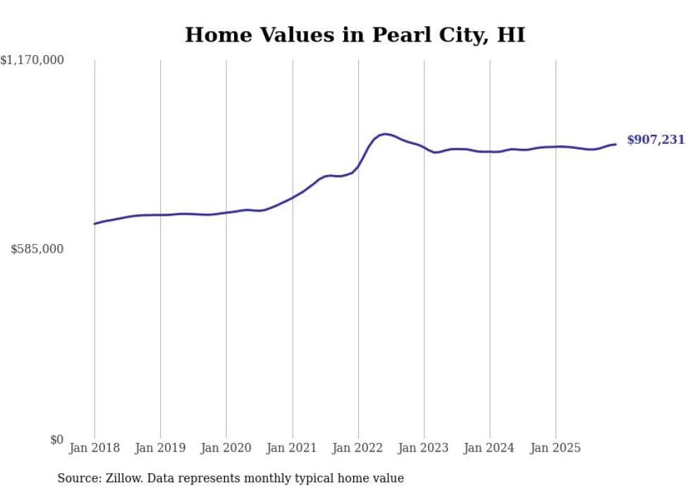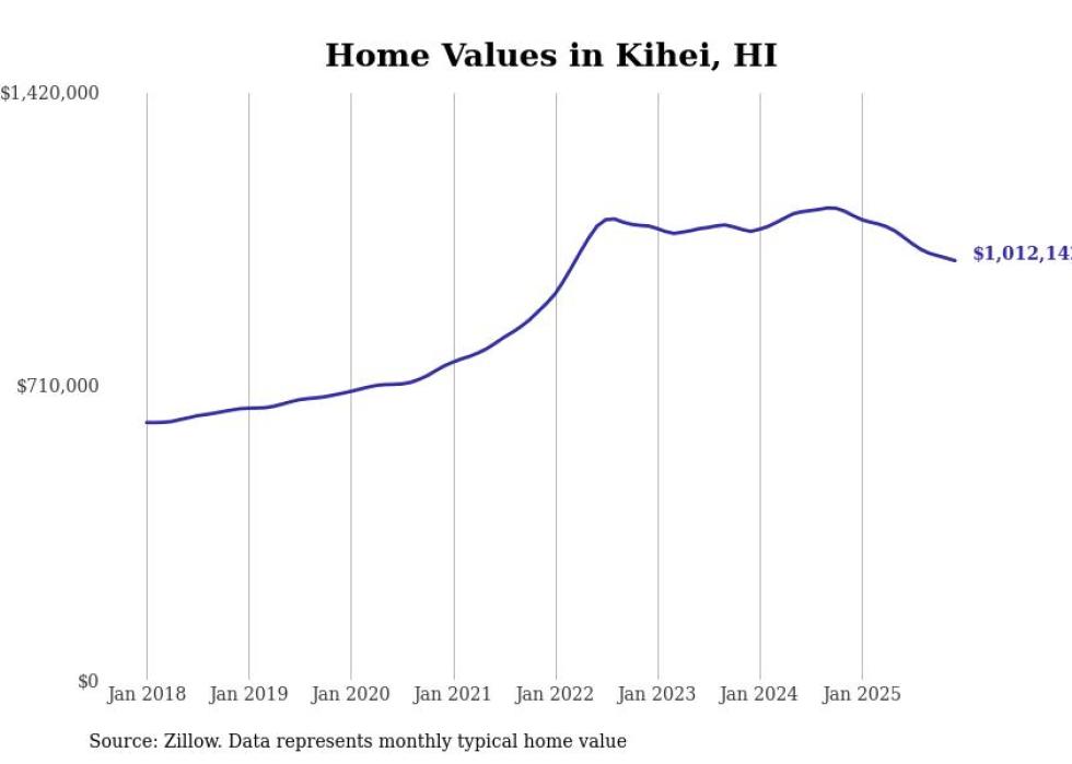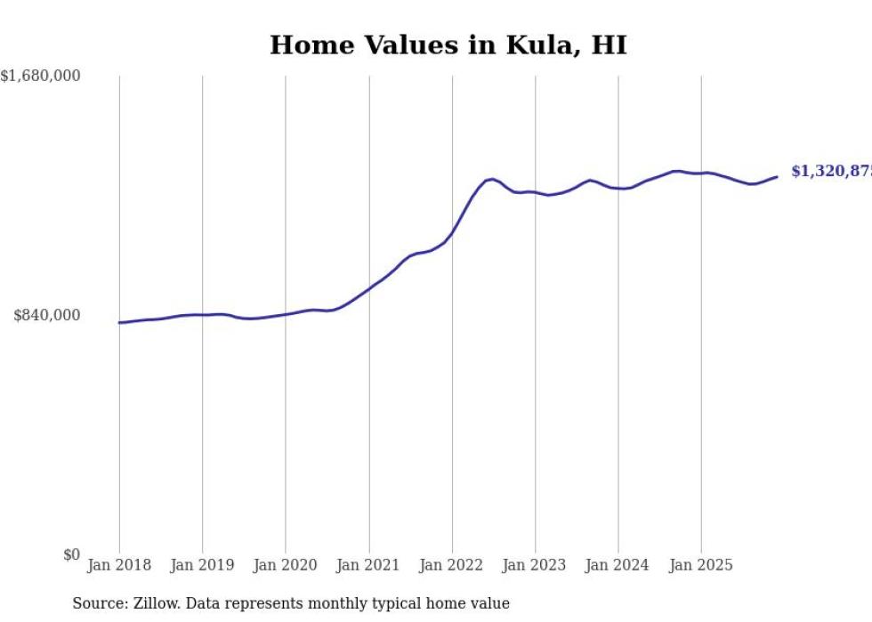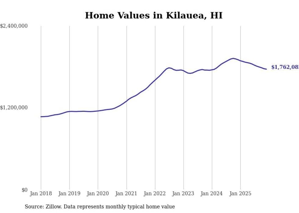 compiled a list of cities with the most expensive homes in Hawaii using data from . Cities are ranked by the Zillow Home Values Index for all homes as of December 2025. The charts in this story were created automatically using .