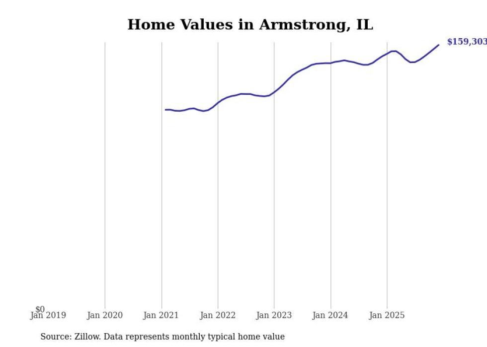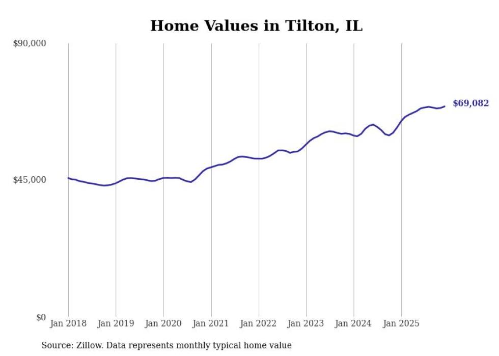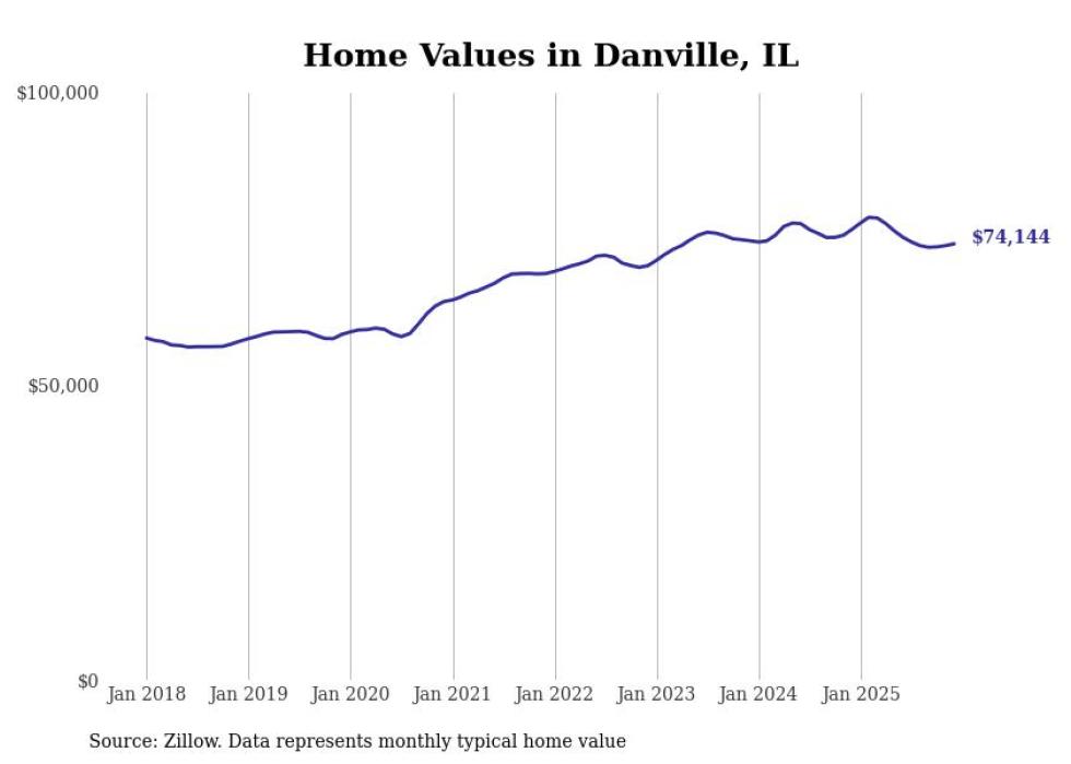 compiled a list of cities with the most expensive homes in the Danville, IL metro area using data from . Charts show the monthly typical home value since January 2018.