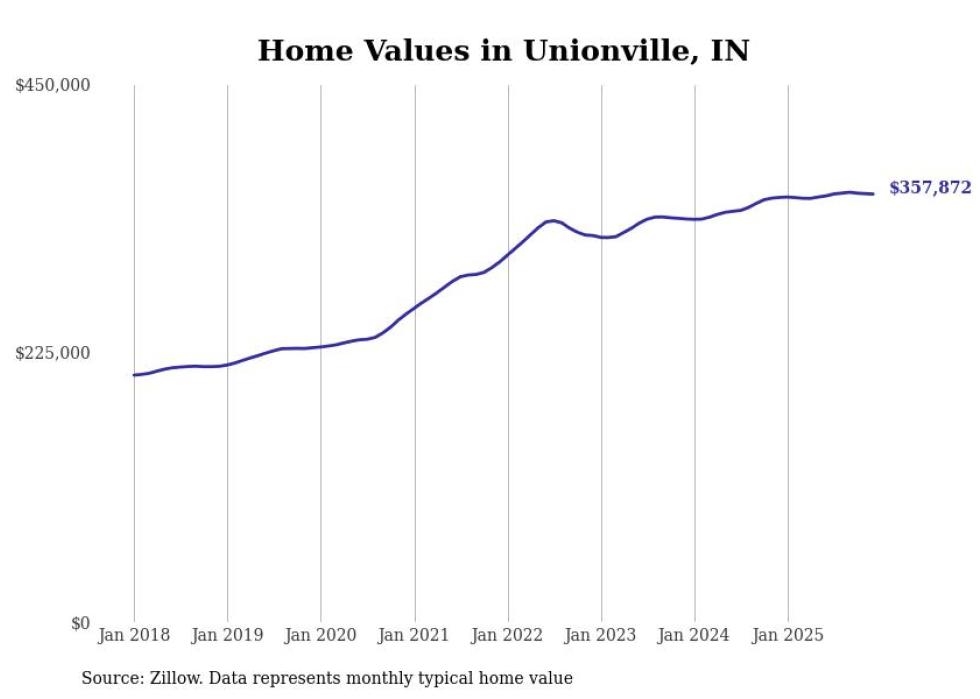 compiled a list of cities with the most expensive homes in the Bloomington, IN metro area using data from . Charts show the monthly typical home value since January 2018.