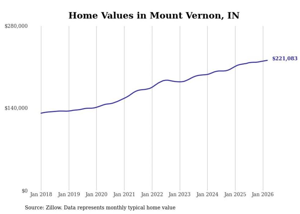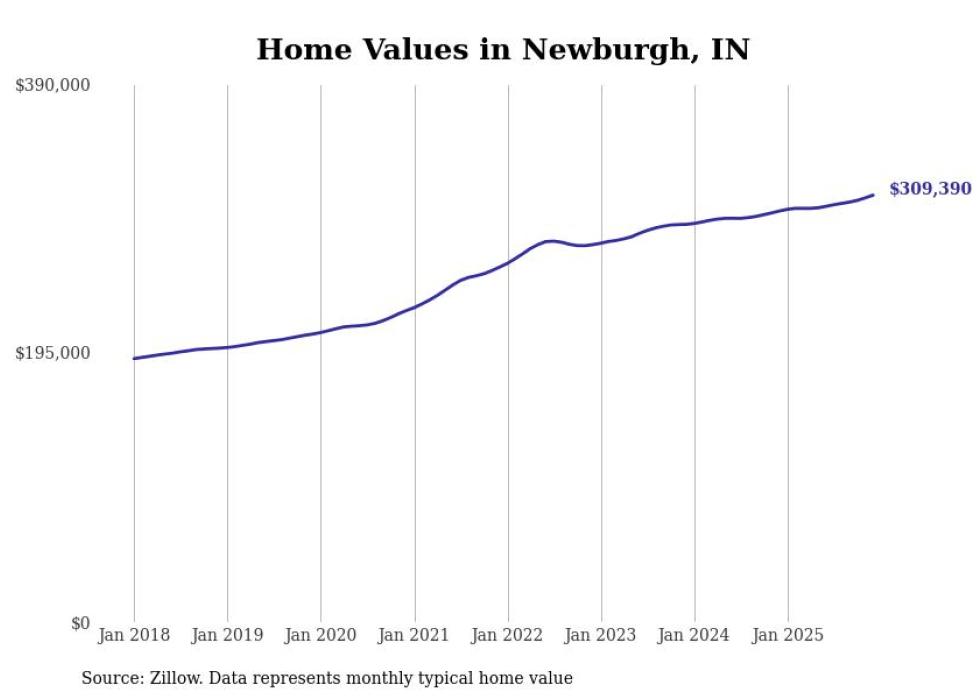 compiled a list of cities with the most expensive homes in the Evansville, IN-KY metro area using data from . Charts show the monthly typical home value since January 2018.