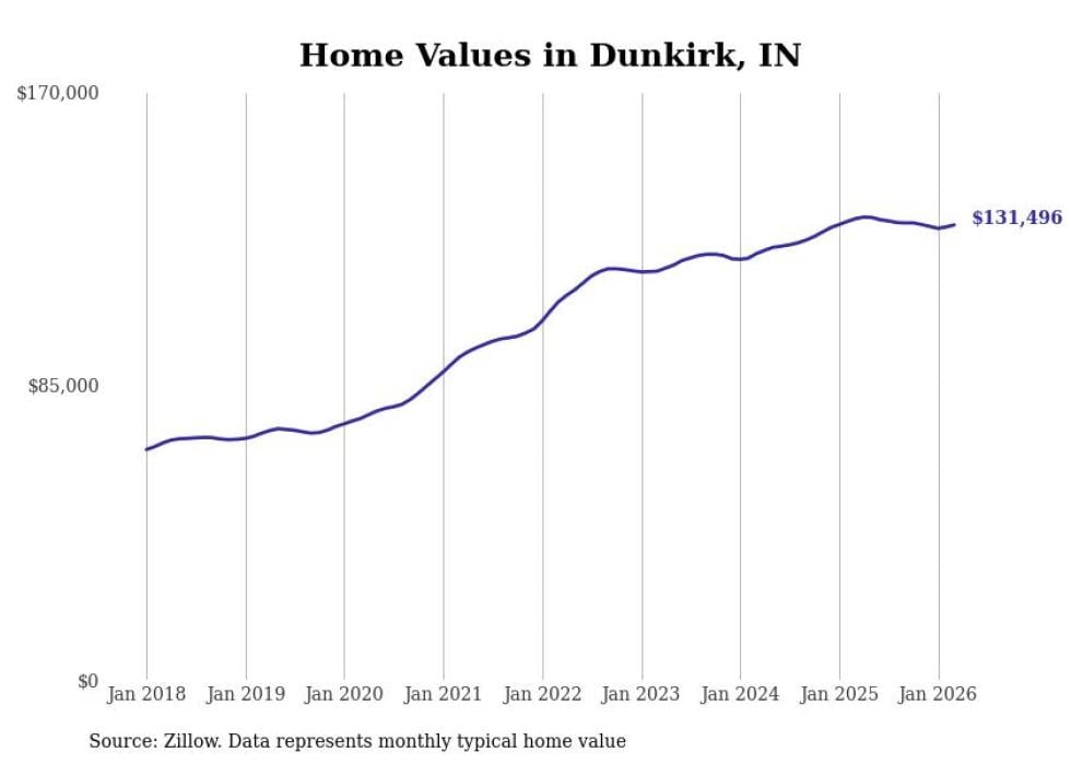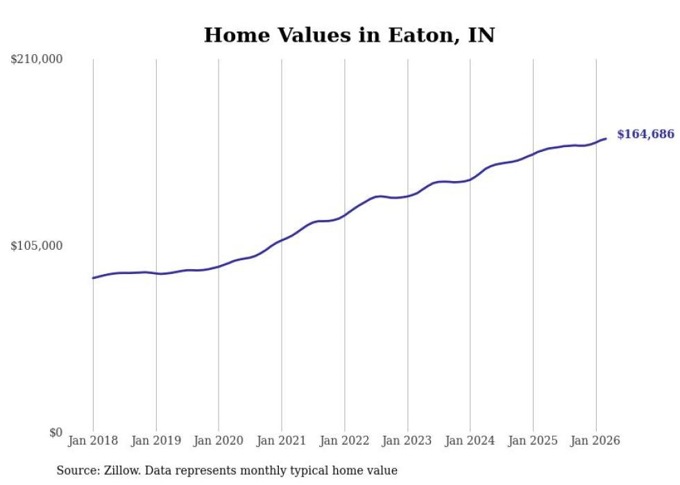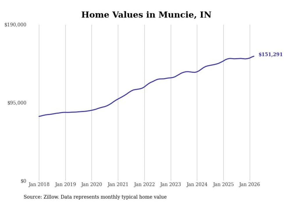 compiled a list of cities with the most expensive homes in the Muncie, IN metro area using data from . Charts show the monthly typical home value since January 2018.