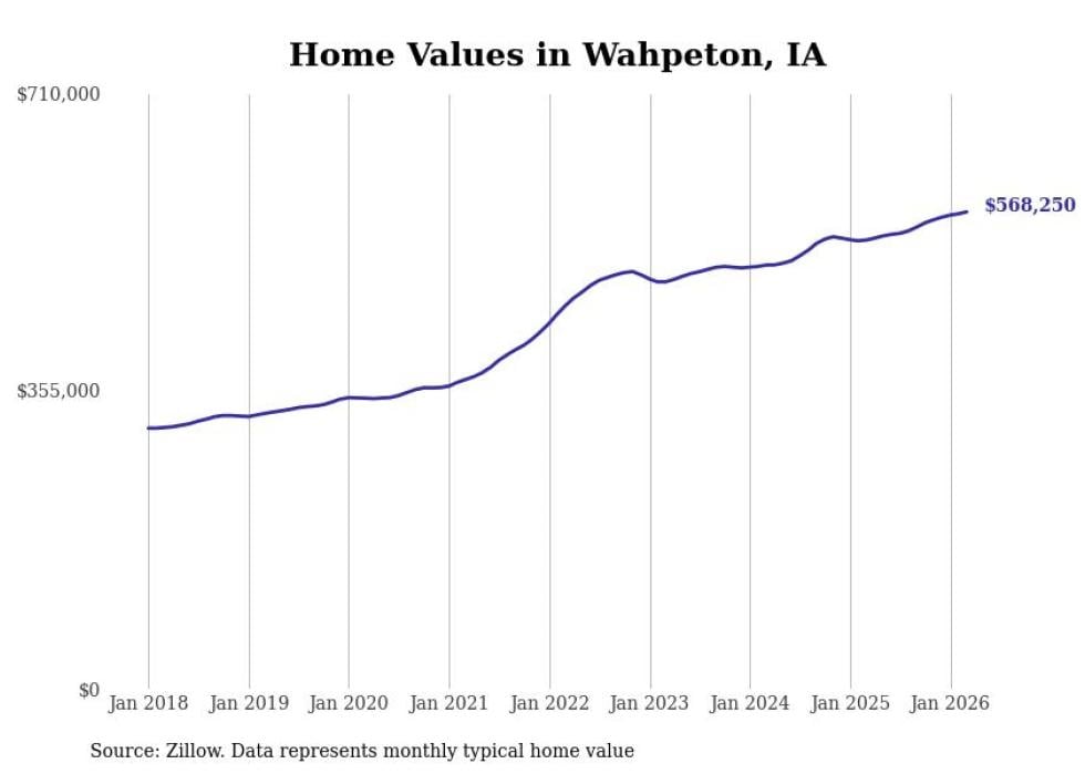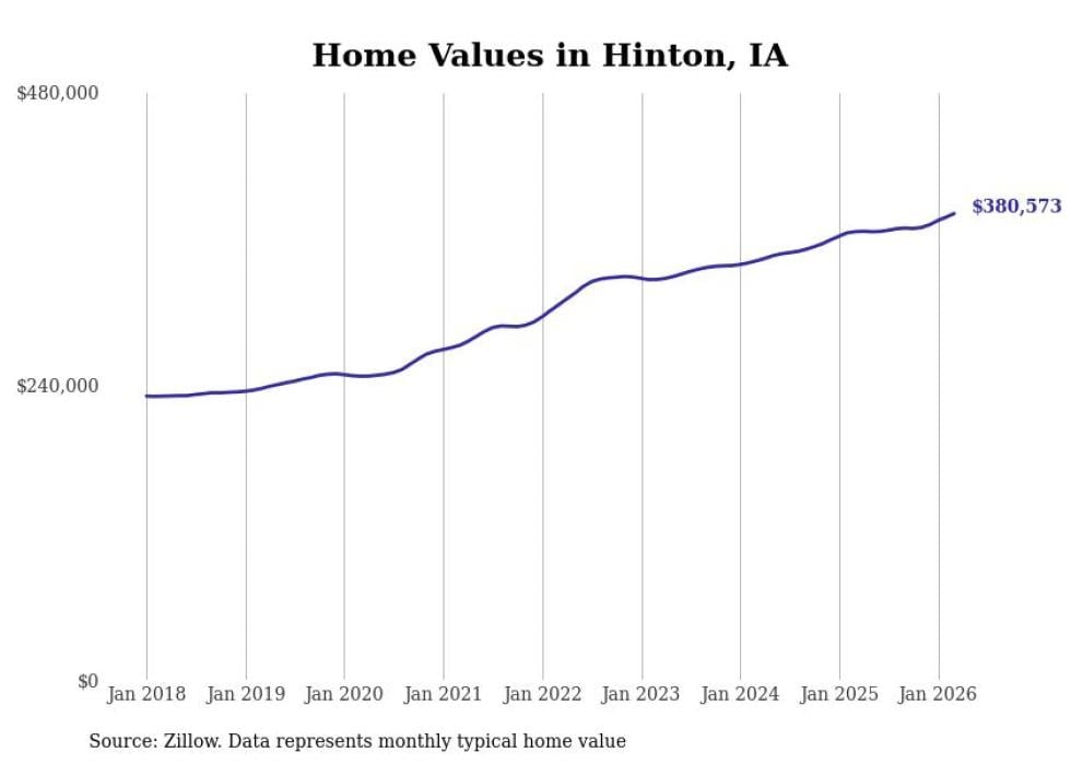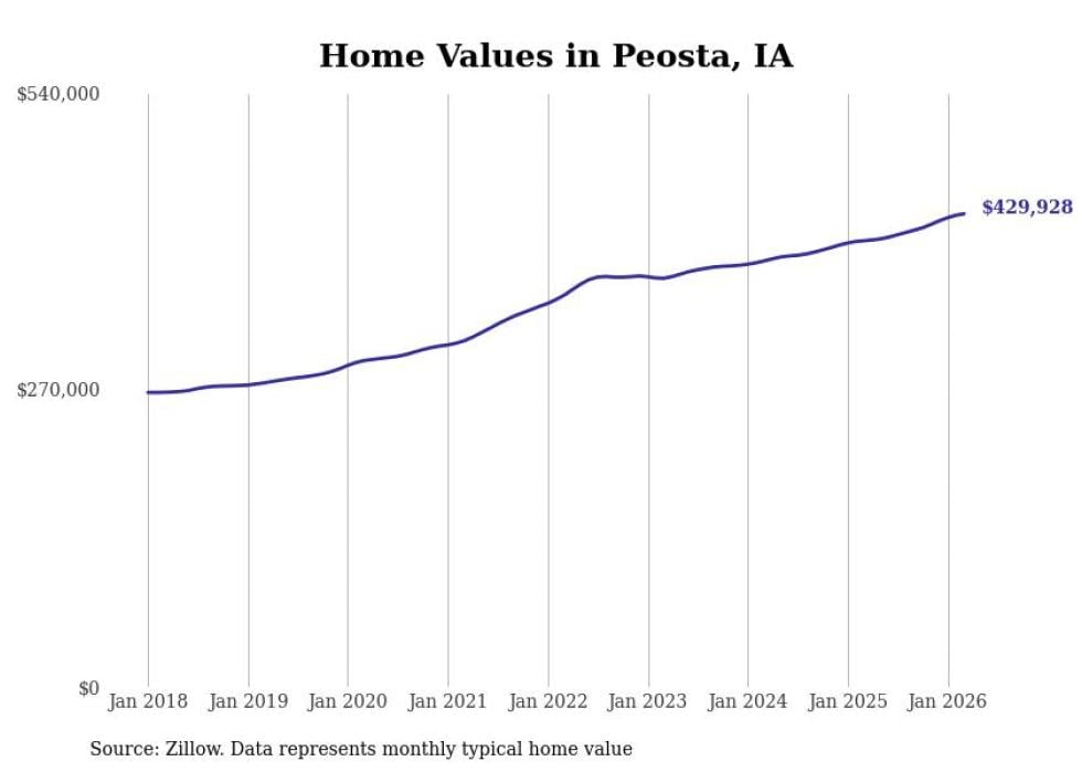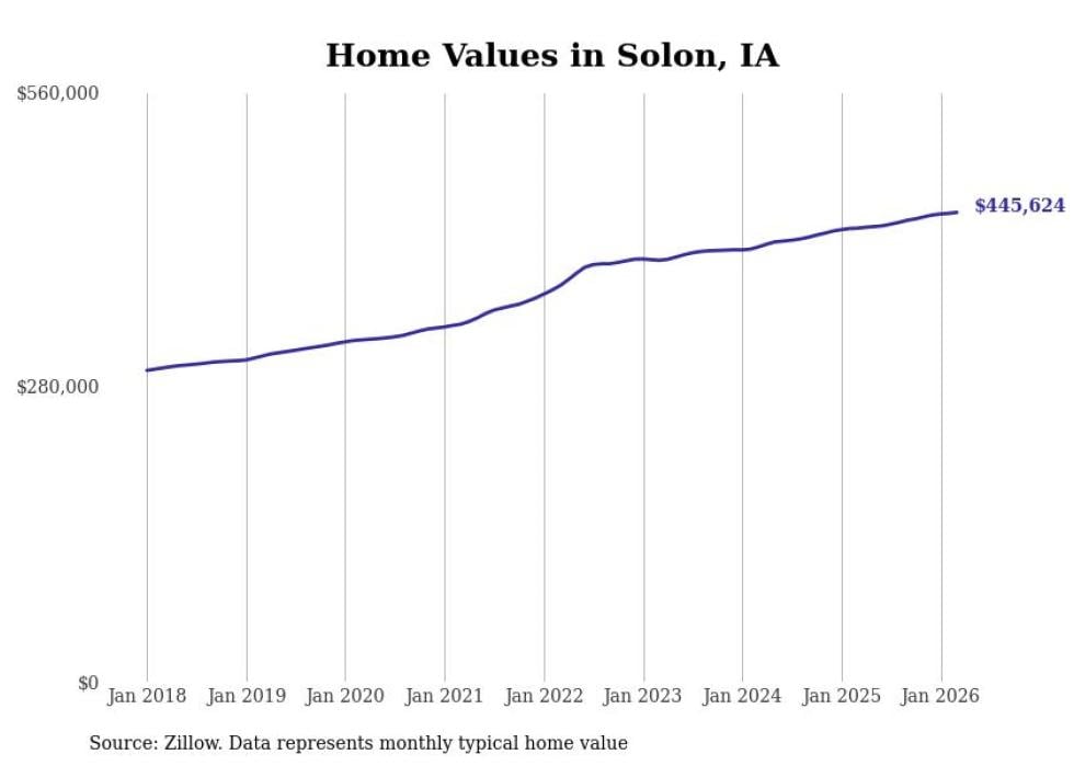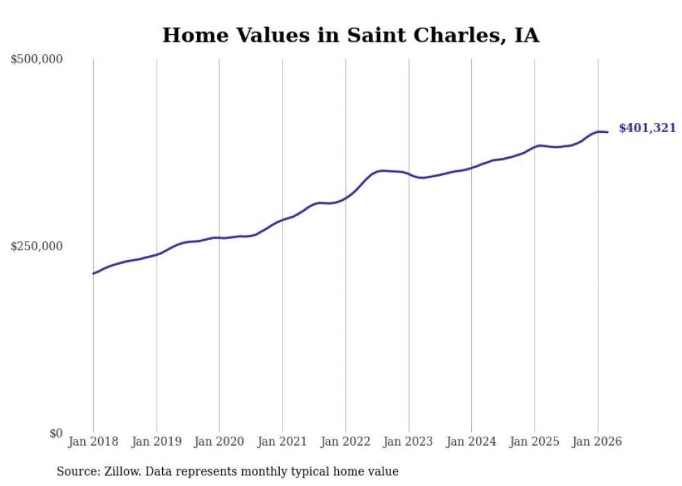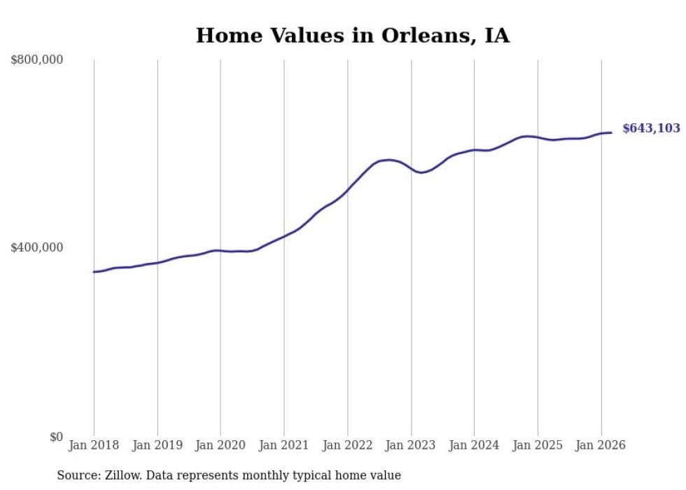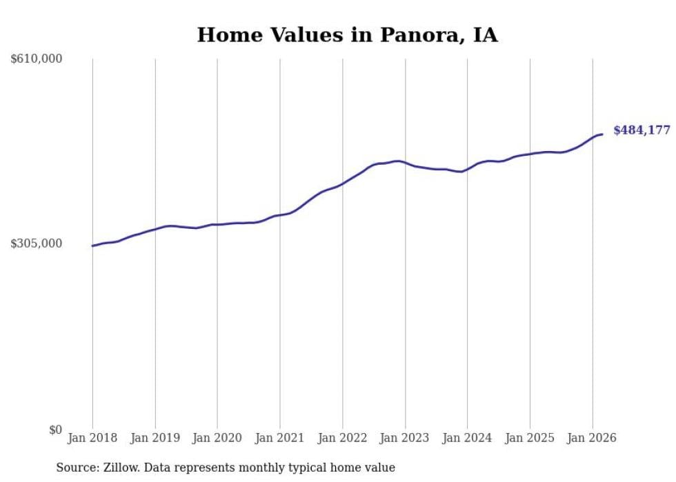 compiled a list of cities with the most expensive homes in Iowa using data from . Cities are ranked by the Zillow Home Values Index for all homes as of March 2026. The charts in this story were created automatically using .