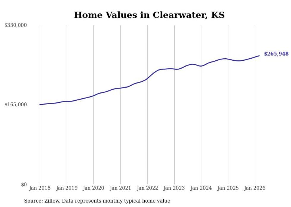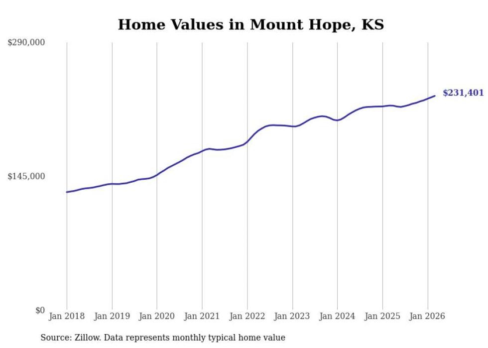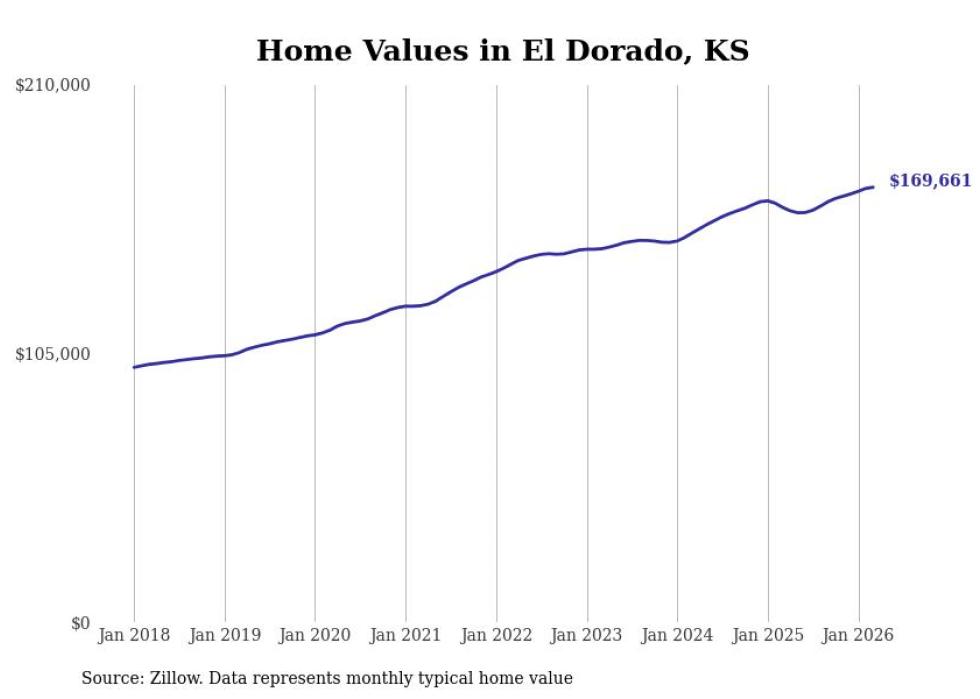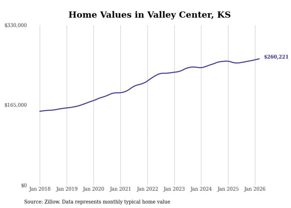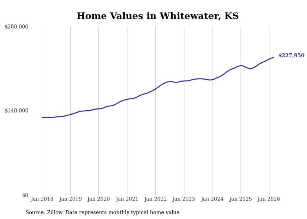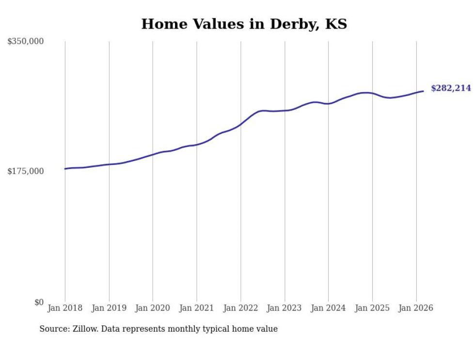 compiled a list of cities with the most expensive homes in the Wichita, KS metro area using data from . Charts show the monthly typical home value since January 2018.