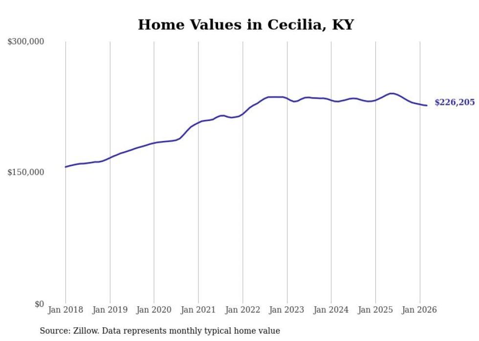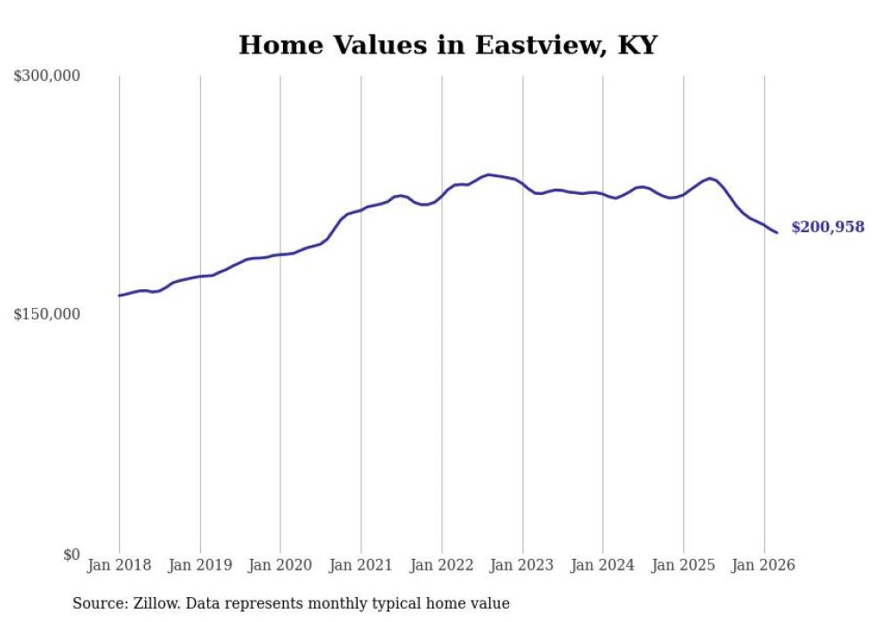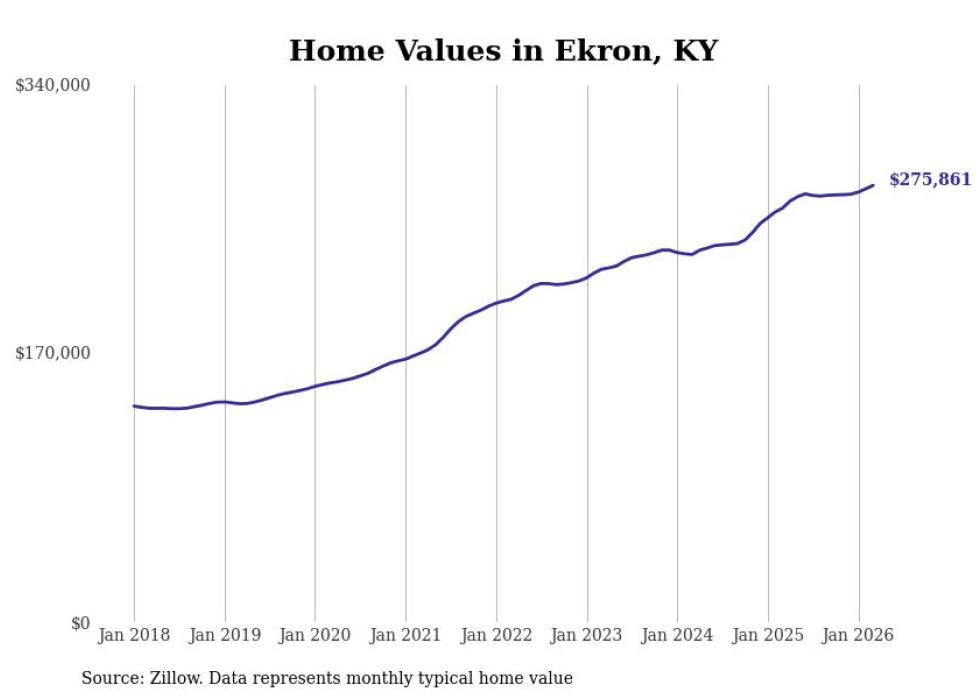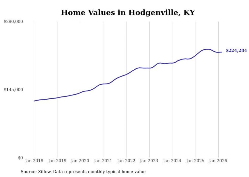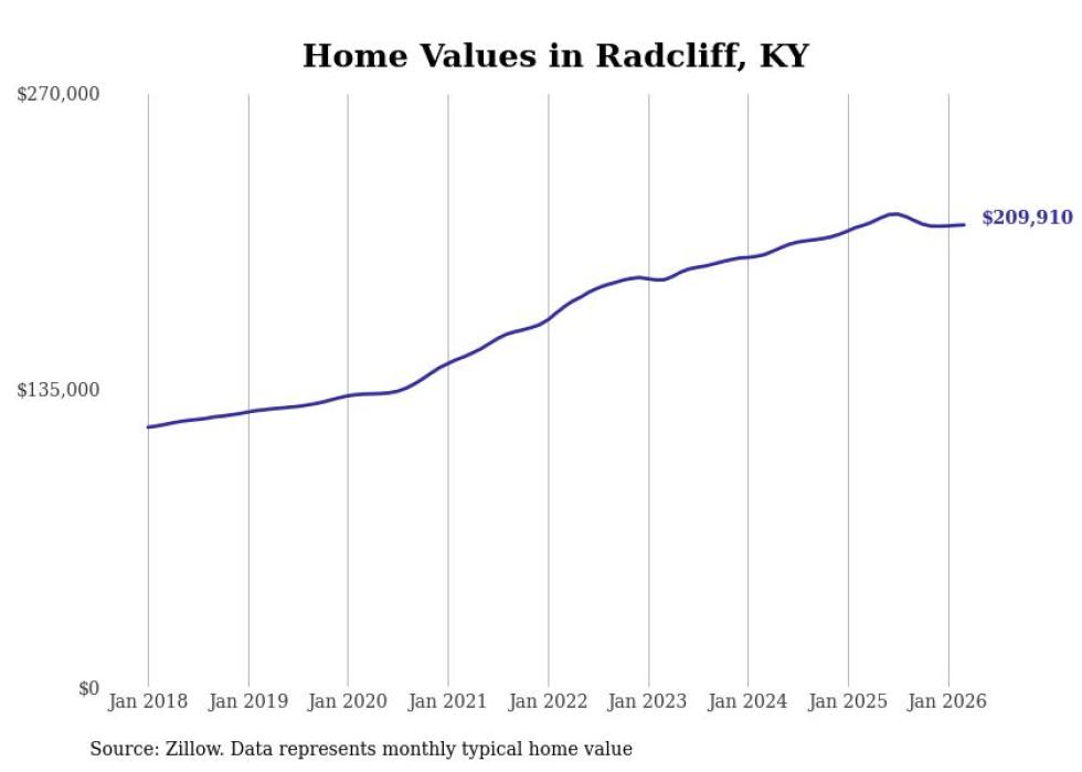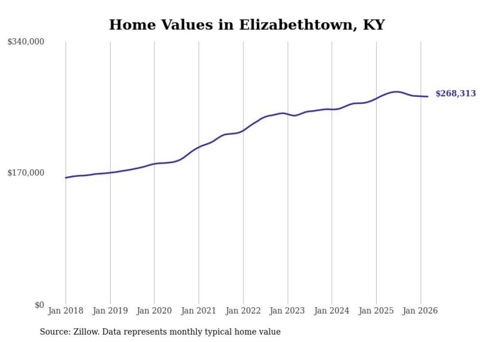 compiled a list of cities with the most expensive homes in the Elizabethtown-Fort Knox, KY metro area using data from . Charts show the monthly typical home value since January 2018.