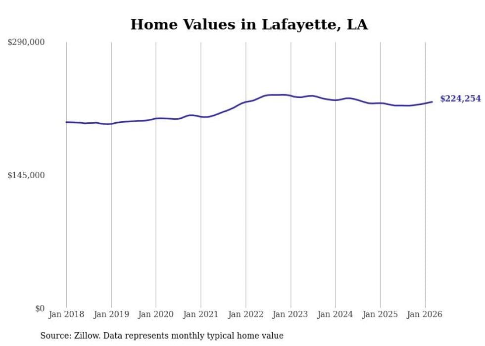 compiled a list of cities with the most expensive homes in the Lafayette metro area using data from . Charts show the monthly typical home value since January 2018. All 24 cities and towns with data available were included in the list.