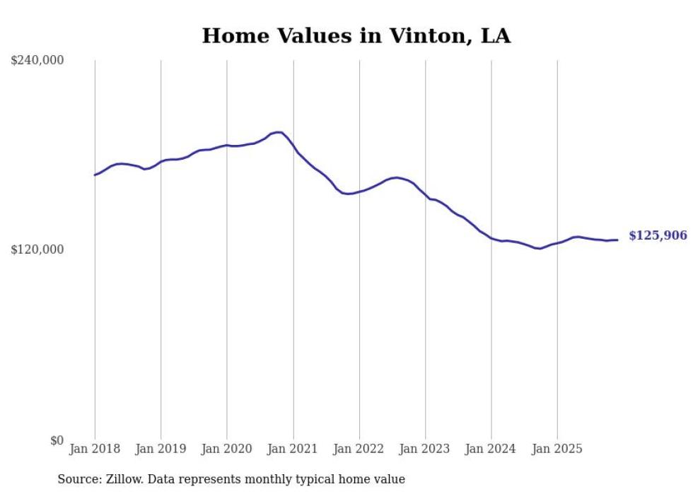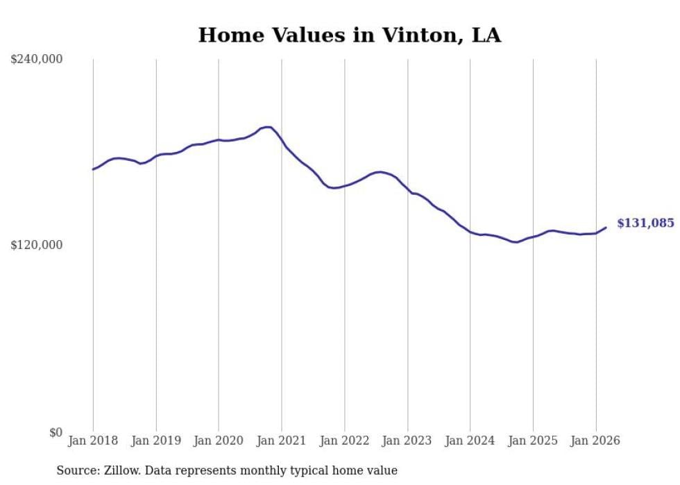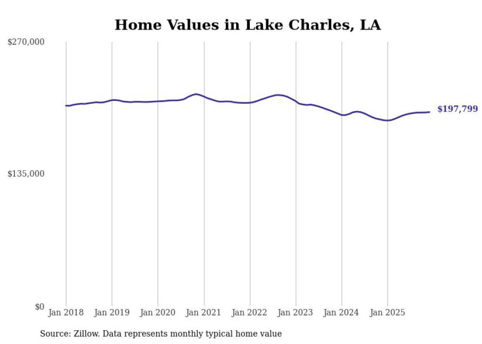 compiled a list of cities with the most expensive homes in the Lake Charles, LA metro area using data from . Charts show the monthly typical home value since January 2018.