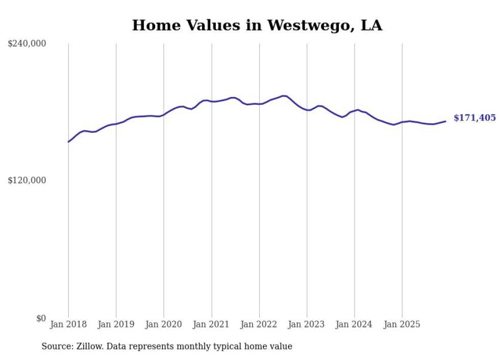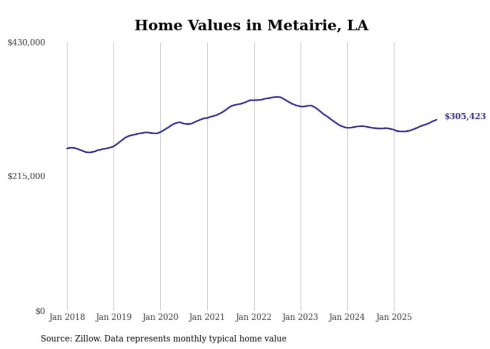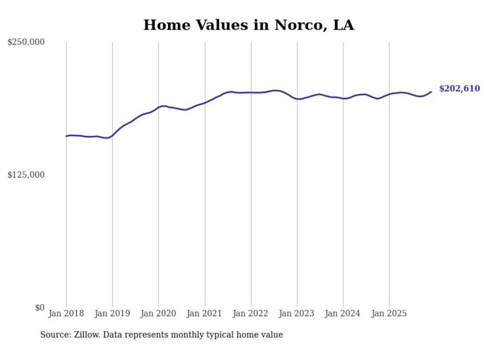 compiled a list of cities with the most expensive homes in the New Orleans-Metairie, LA metro area using data from . Charts show the monthly typical home value since January 2018.