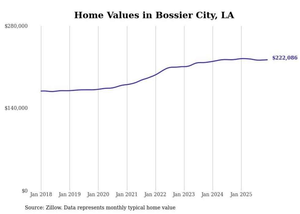 compiled a list of cities with the most expensive homes in the Shreveport-Bossier City, LA metro area using data from . Charts show the monthly typical home value since January 2018.