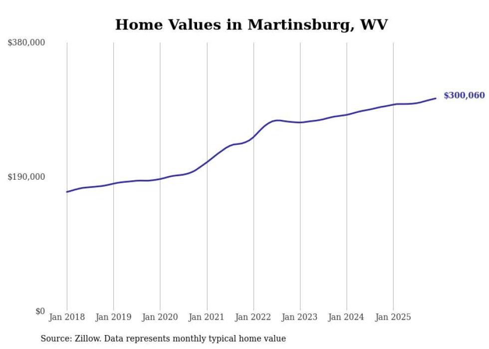 compiled a list of cities with the most expensive homes in the Hagerstown-Martinsburg, MD-WV metro area using data from . Charts show the monthly typical home value since January 2018.