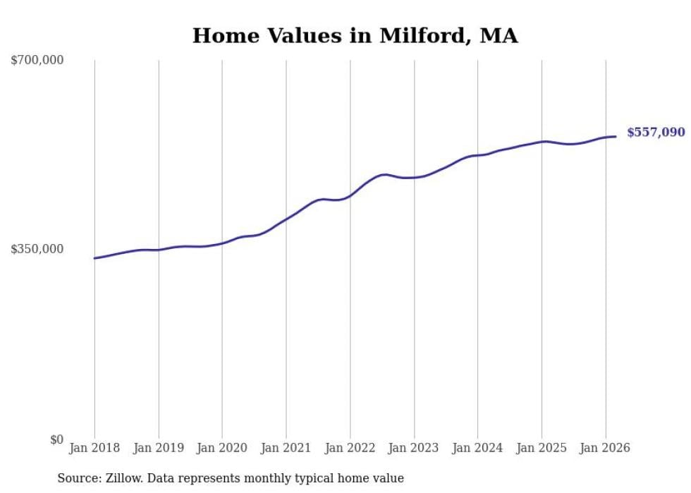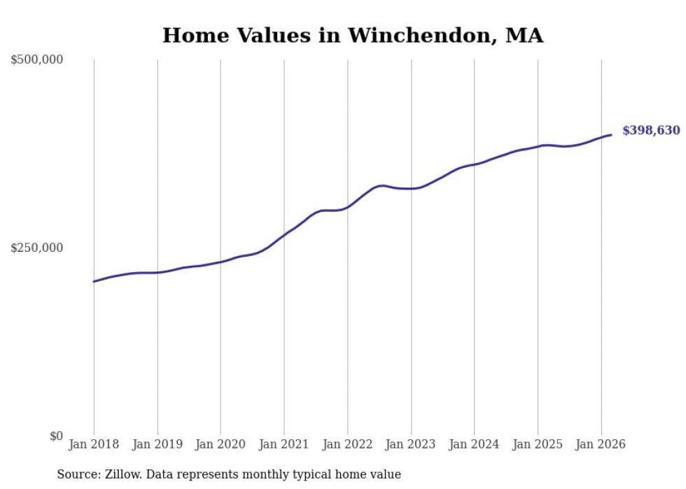 compiled a list of cities with the most expensive homes in the Worcester, MA-CT metro area using data from . Charts show the monthly typical home value since January 2018.