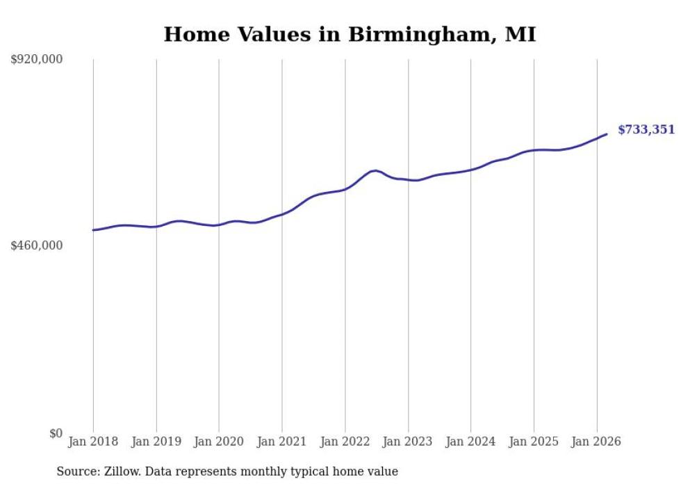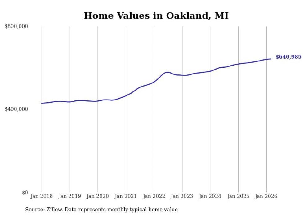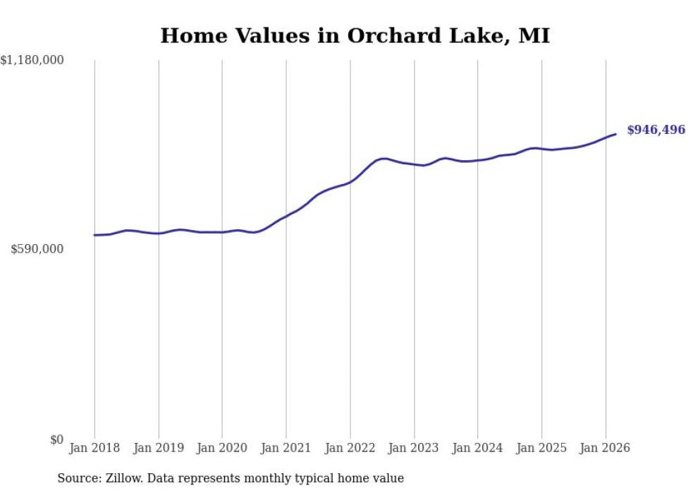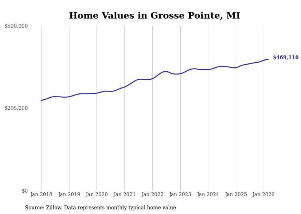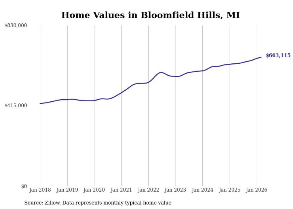 compiled a list of cities with the most expensive homes in the Detroit metro area using data from . Charts show the monthly typical home value since January 2018. Data was available for 150 cities and towns.