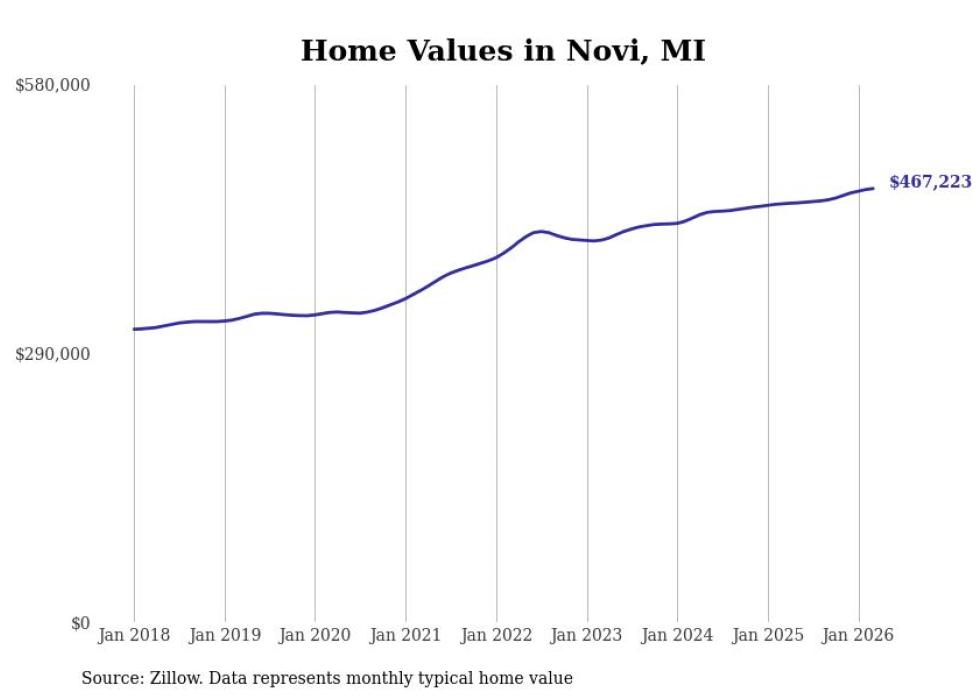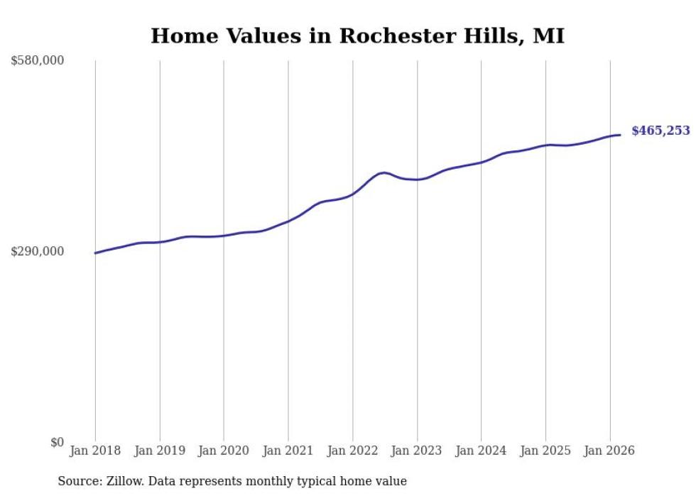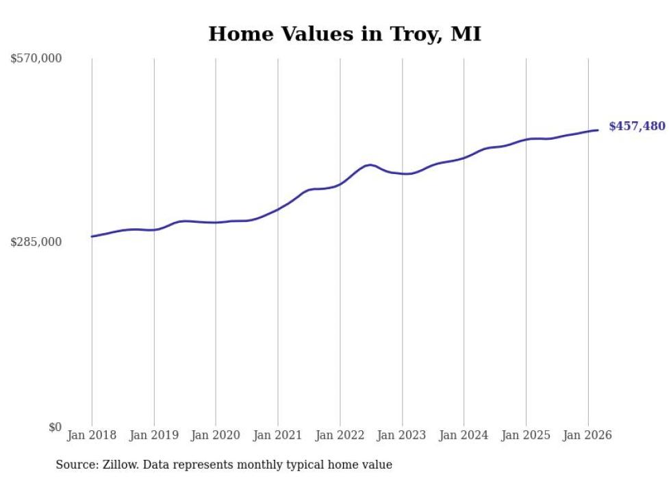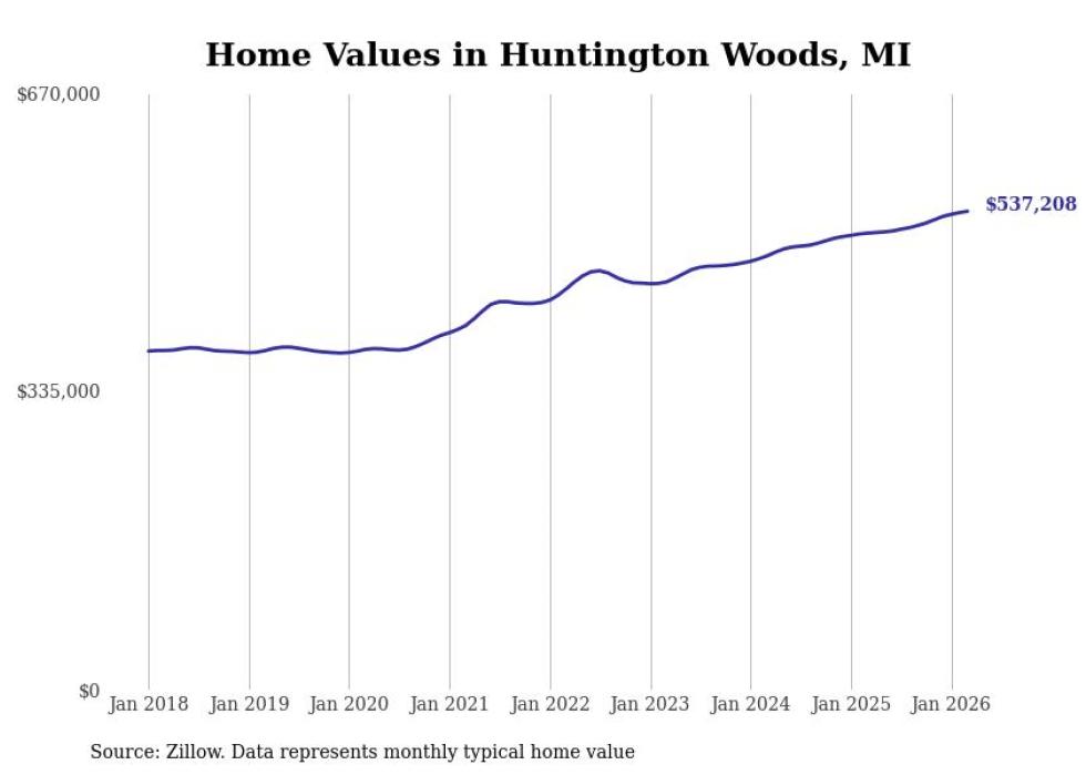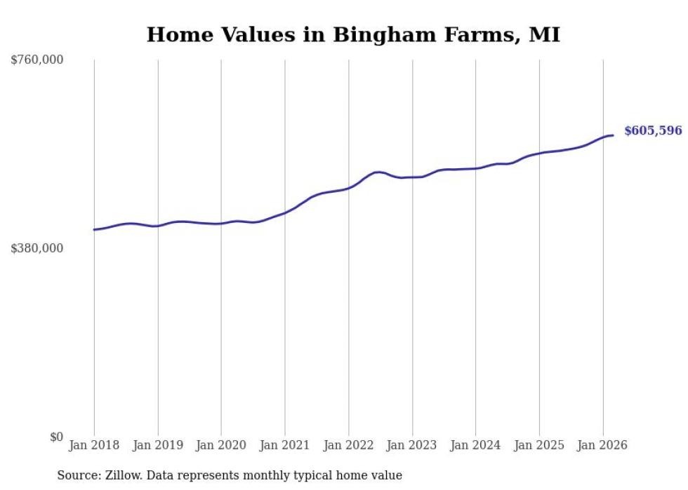 compiled a list of cities with the most expensive homes in the Detroit metro area using data from . Charts show the monthly typical home value since January 2018. Data was available for 150 cities and towns.