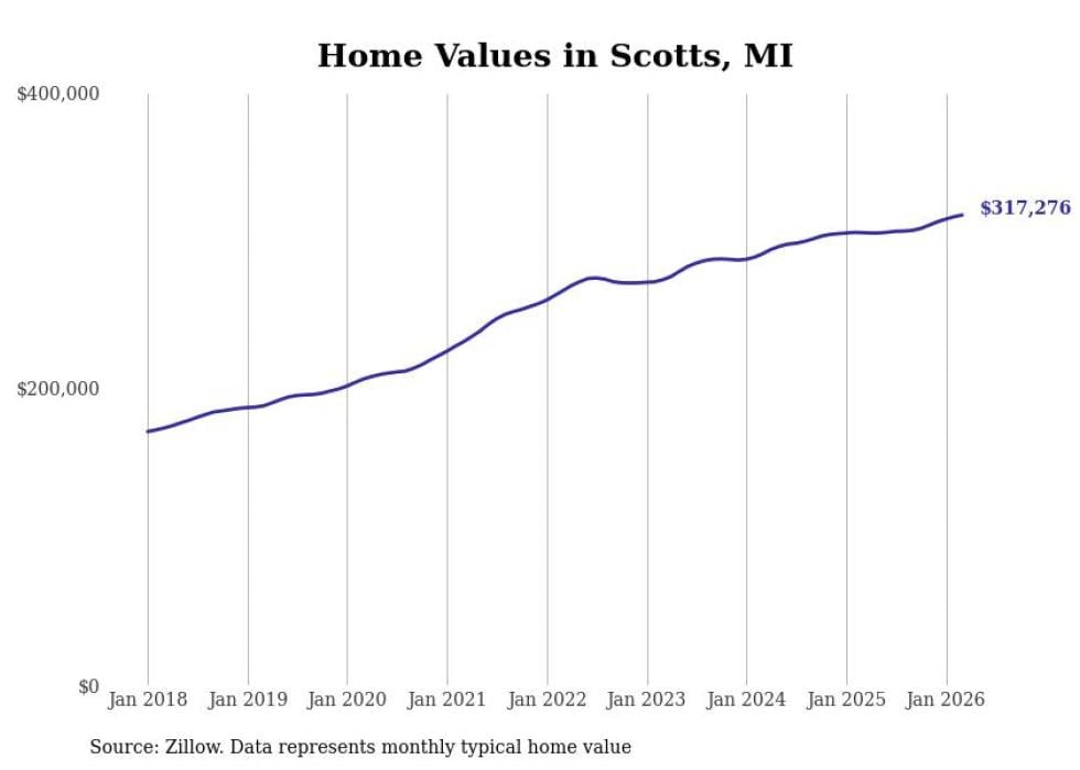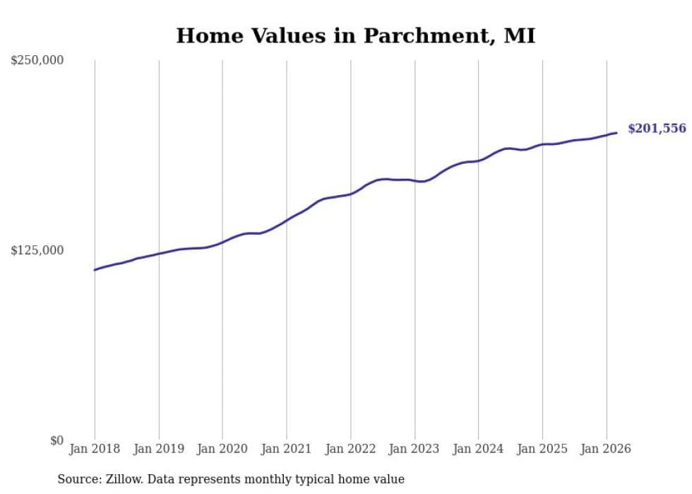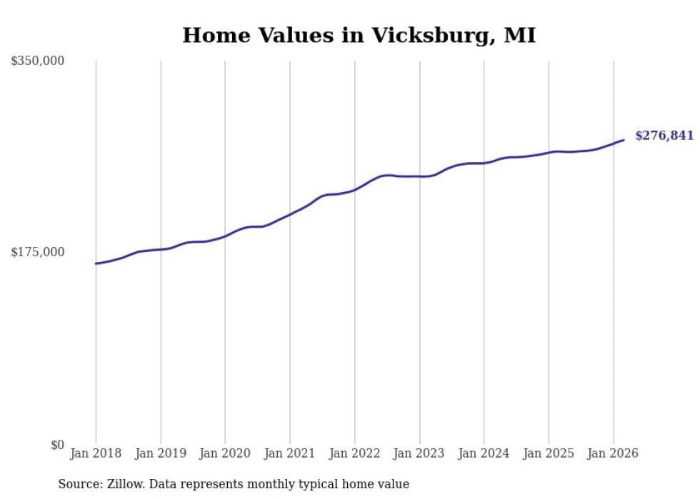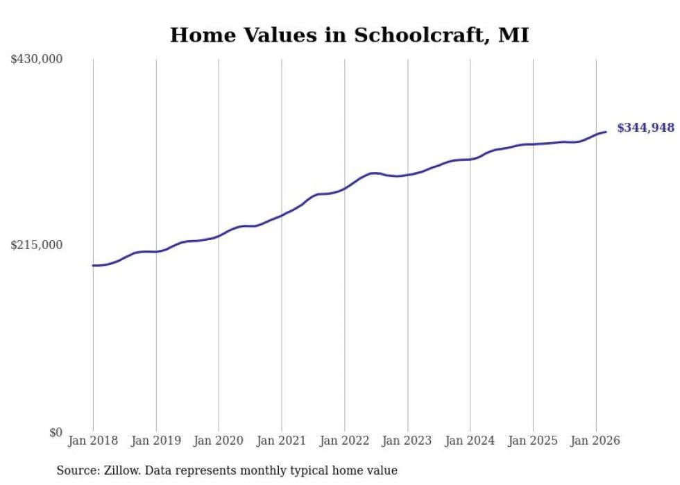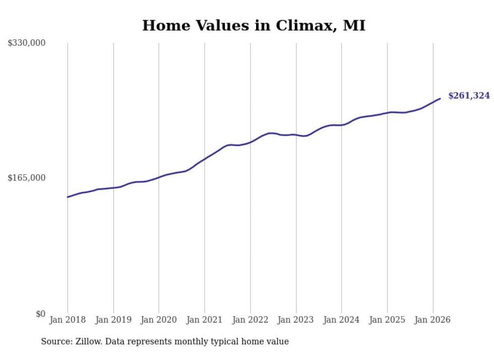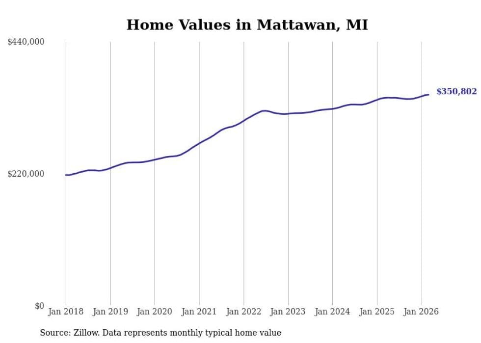 compiled a list of cities with the most expensive homes in the Kalamazoo-Portage, MI metro area using data from . Charts show the monthly typical home value since January 2018.