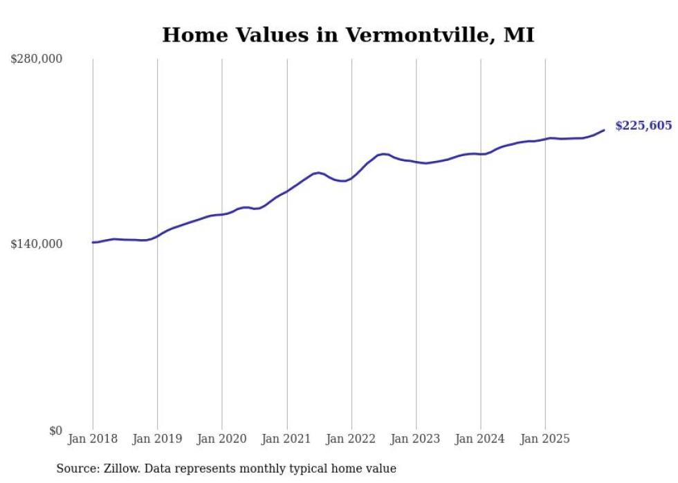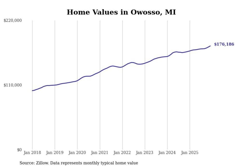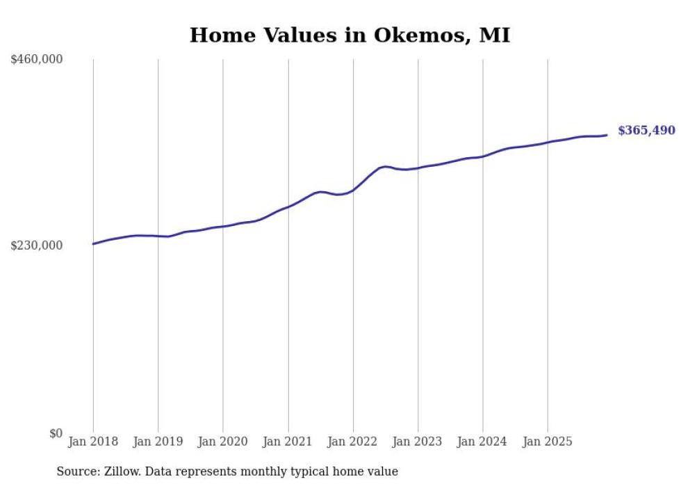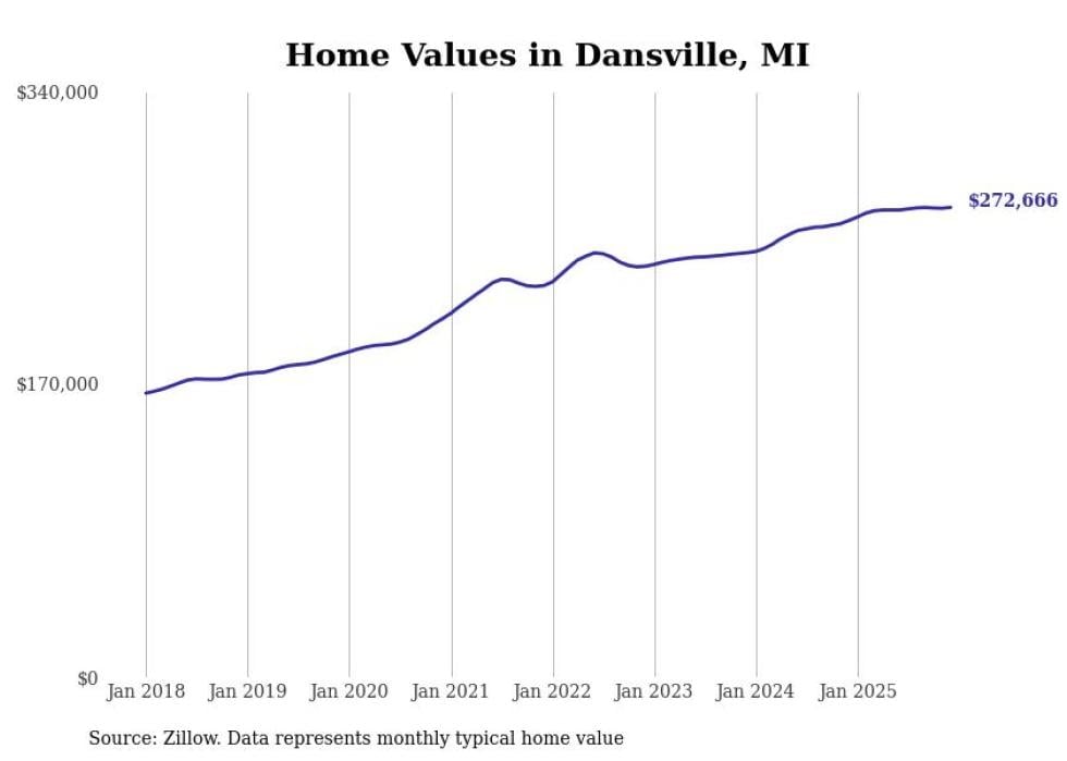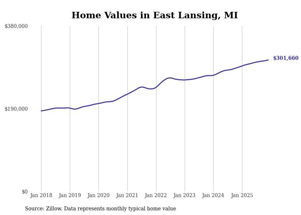 compiled a list of cities with the most expensive homes in the Lansing-East Lansing, MI metro area using data from . Charts show the monthly typical home value since January 2018.