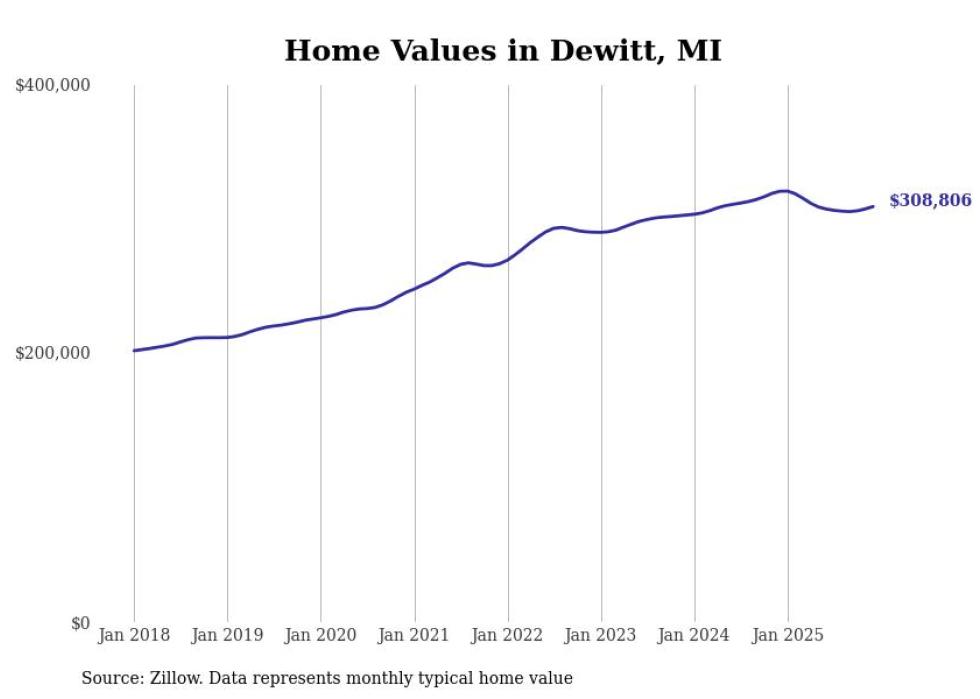 compiled a list of cities with the most expensive homes in the Lansing metro area using data from . Charts show the monthly typical home value since January 2018. Data was available for 44 cities and towns.