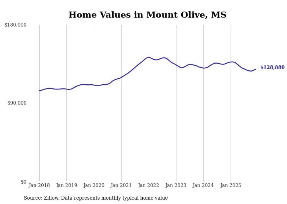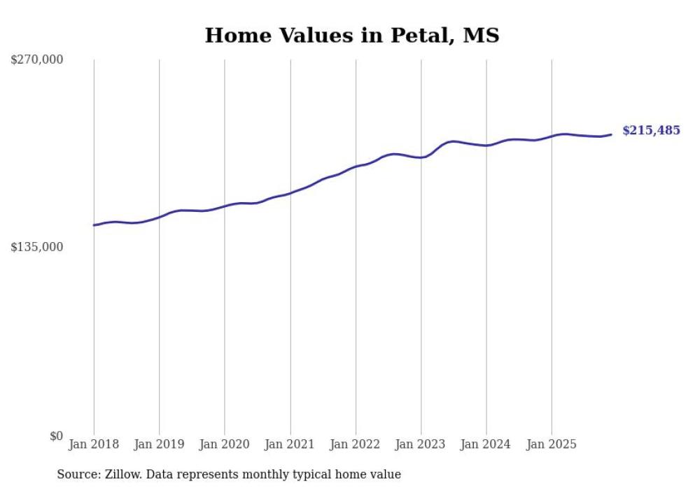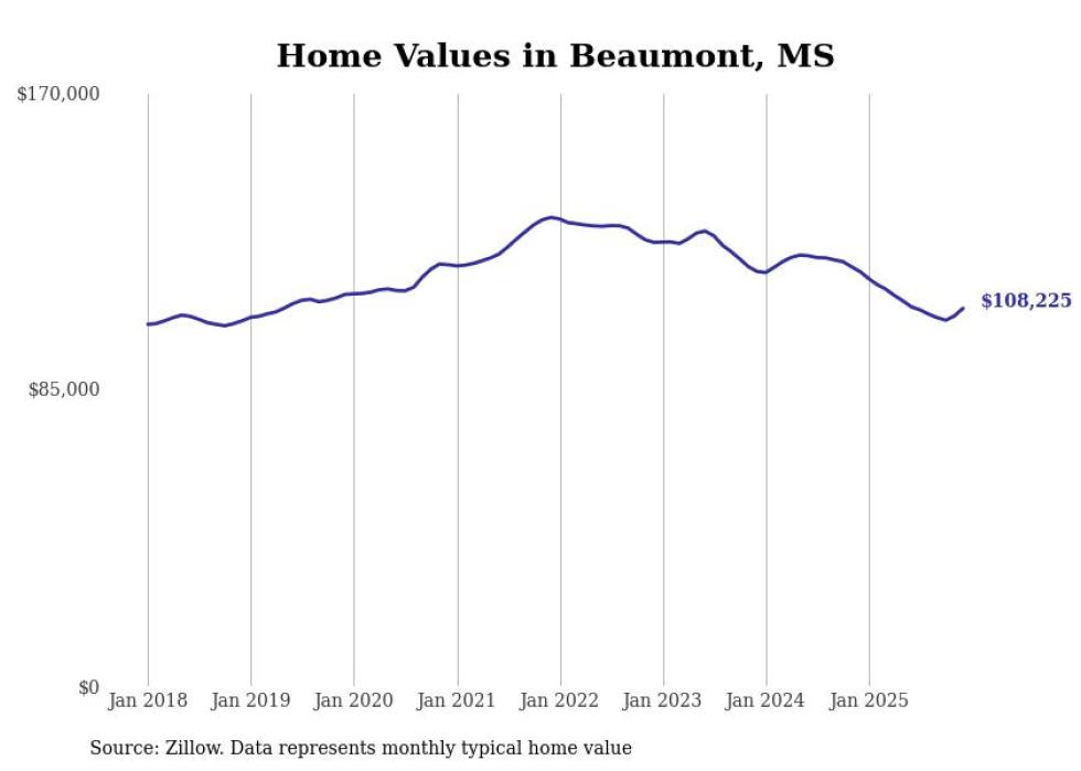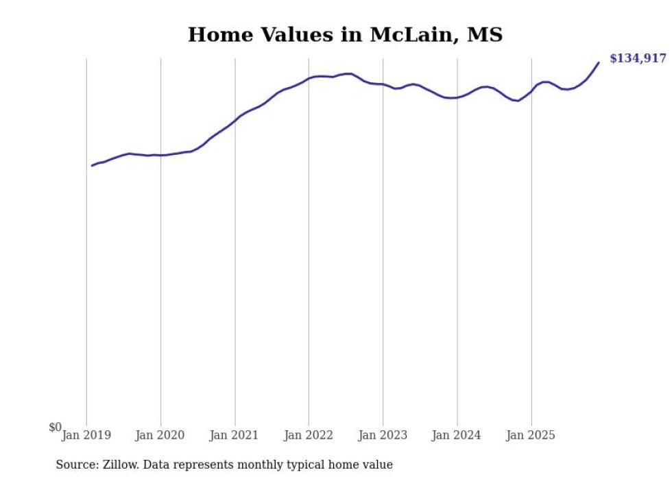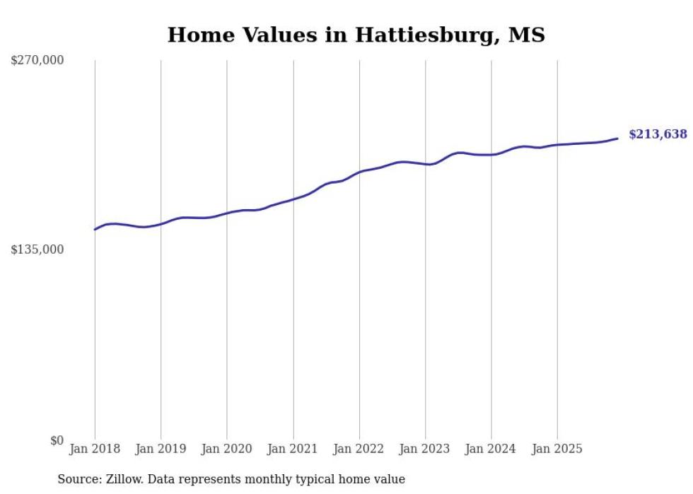 compiled a list of cities with the most expensive homes in the Hattiesburg metro area using data from . Charts show the monthly typical home value since January 2018. All 14 cities and towns with data available were included in the list.