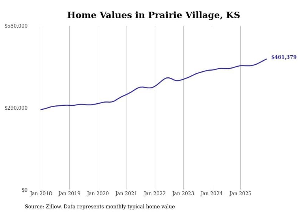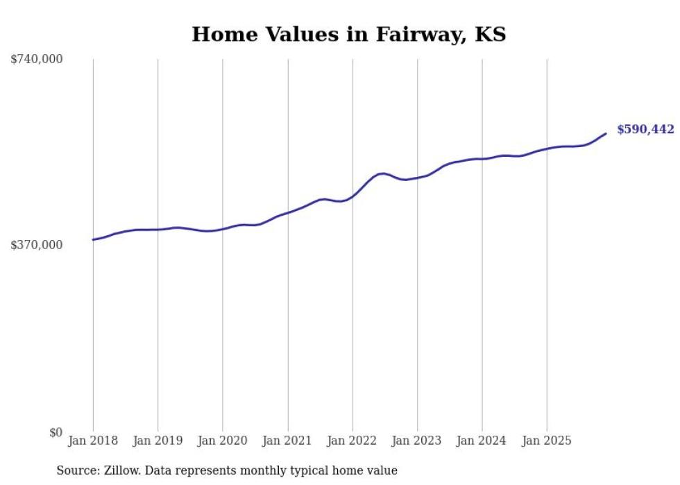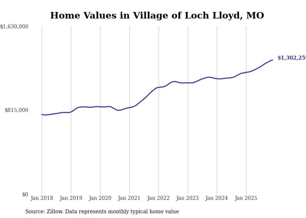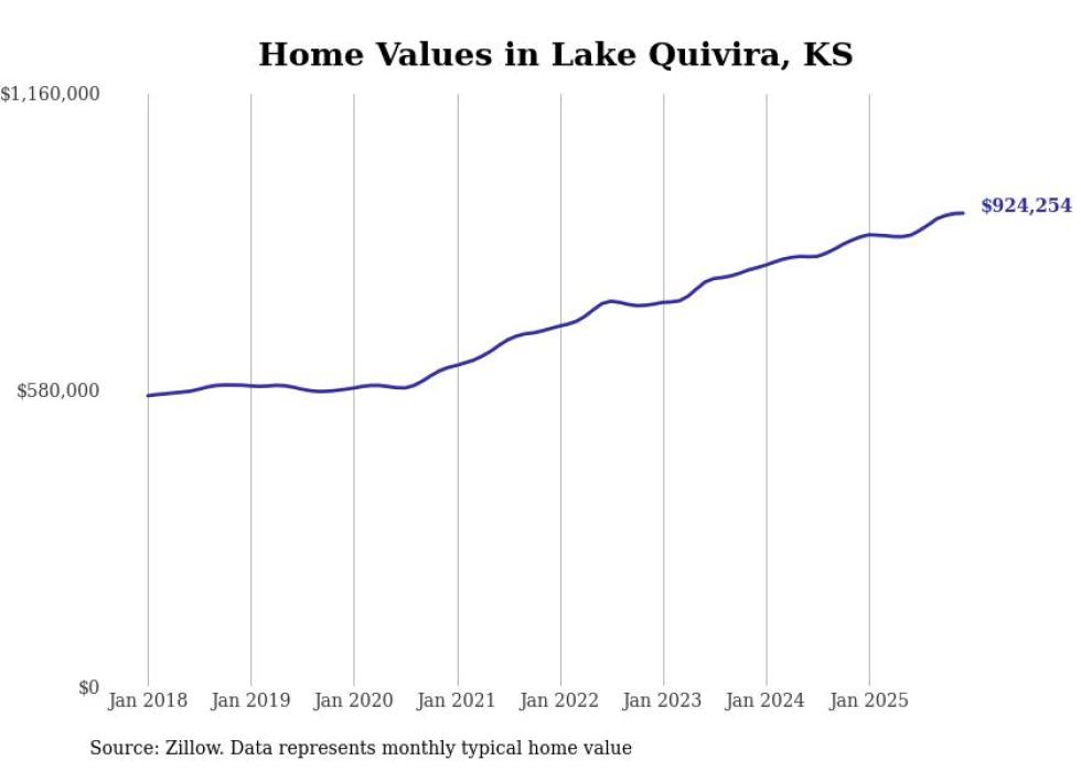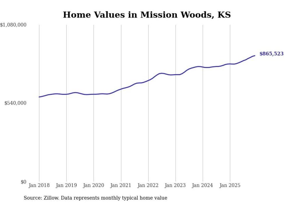 compiled a list of cities with the most expensive homes in the Kansas City metro area using data from . Charts show the monthly typical home value since January 2018. Data was available for 134 cities and towns.