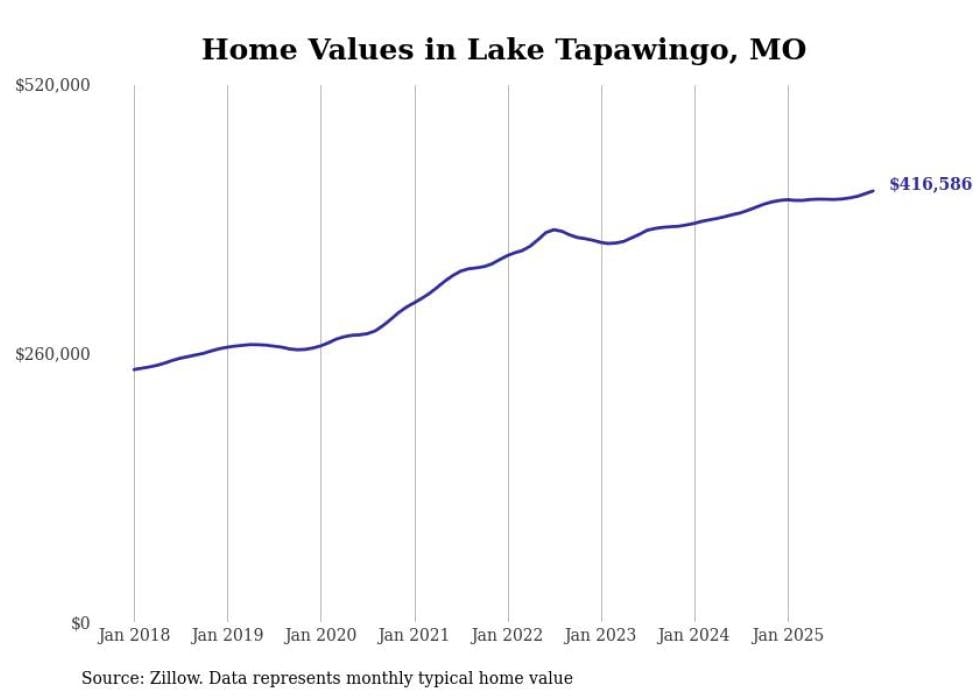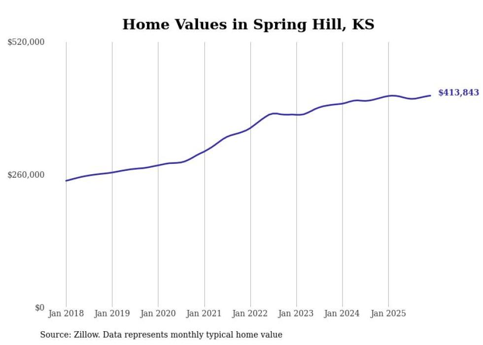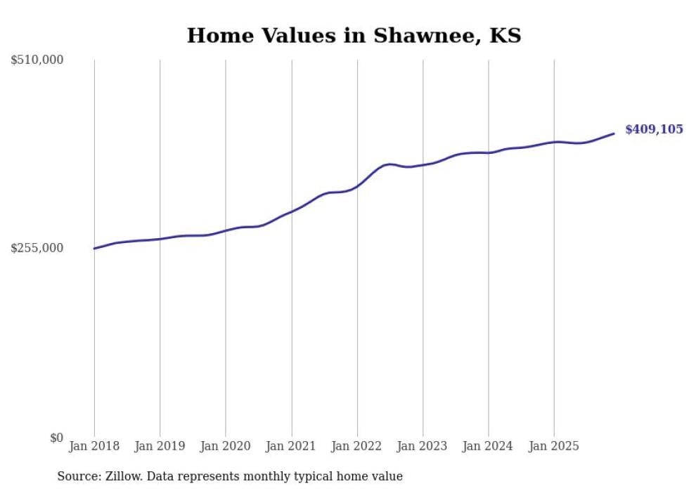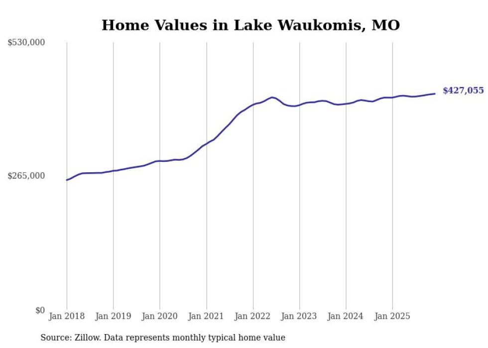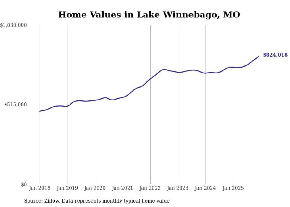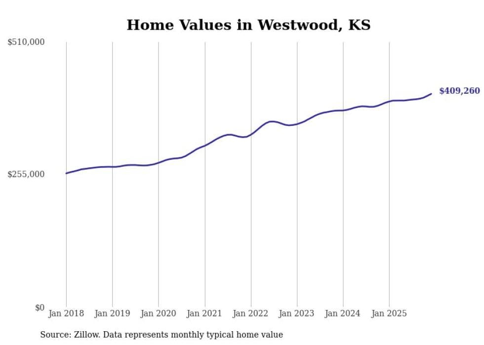compiled a list of cities with the most expensive homes in the Kansas City metro area using data from . Charts show the monthly typical home value since January 2018. Data was available for 134 cities and towns.