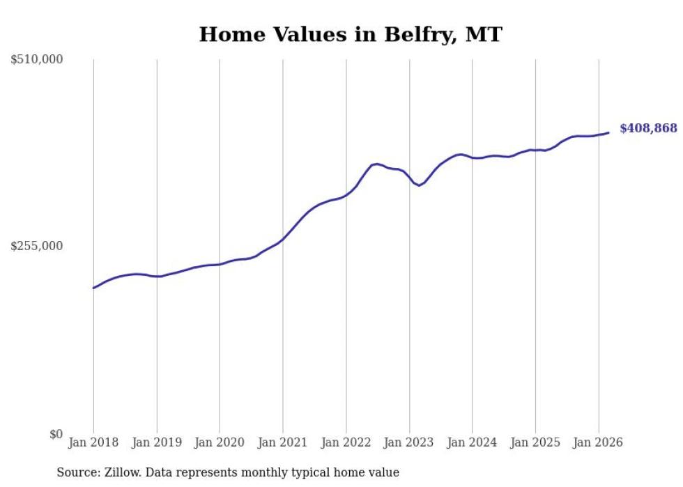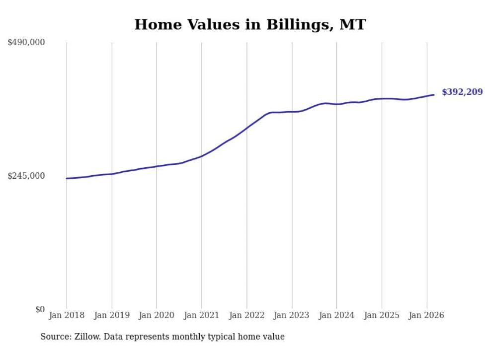 compiled a list of cities with the most expensive homes in the Billings, MT metro area using data from . Charts show the monthly typical home value since January 2018.