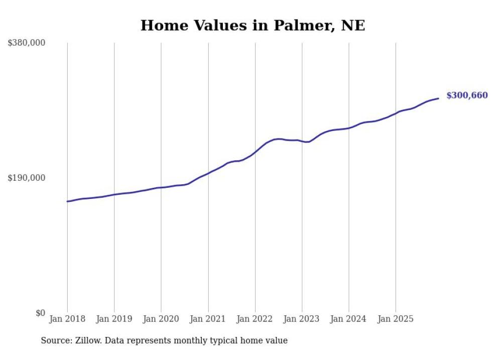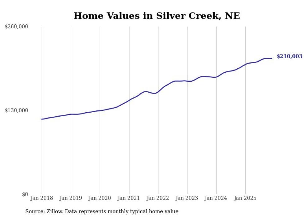 compiled a list of cities with the most expensive homes in the Grand Island metro area using data from . Charts show the monthly typical home value since January 2018. All 14 cities and towns with data available were included in the list.