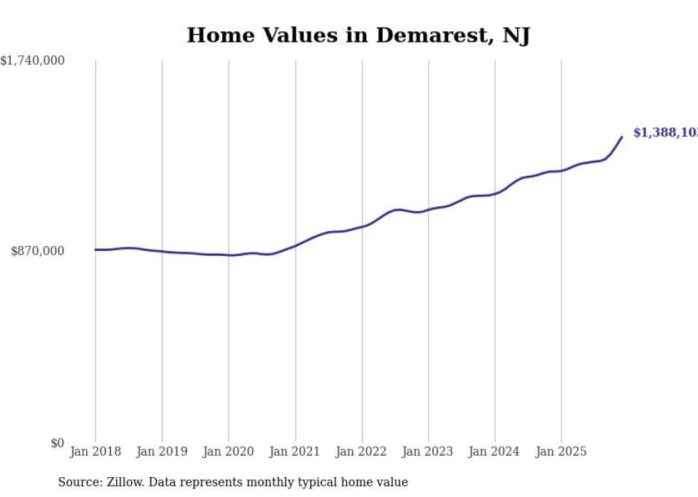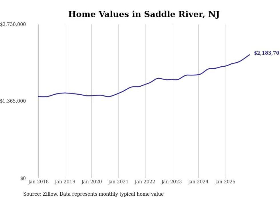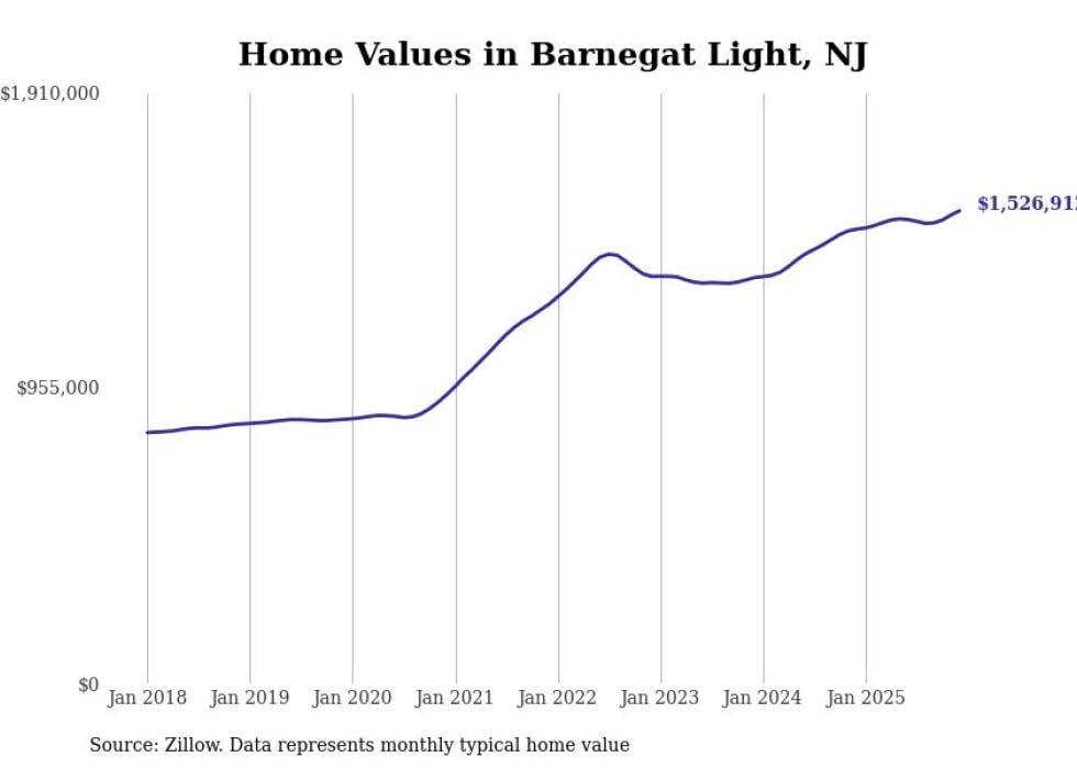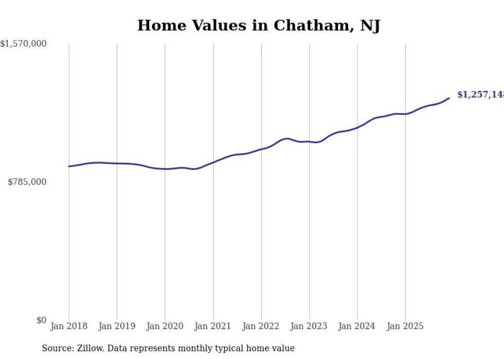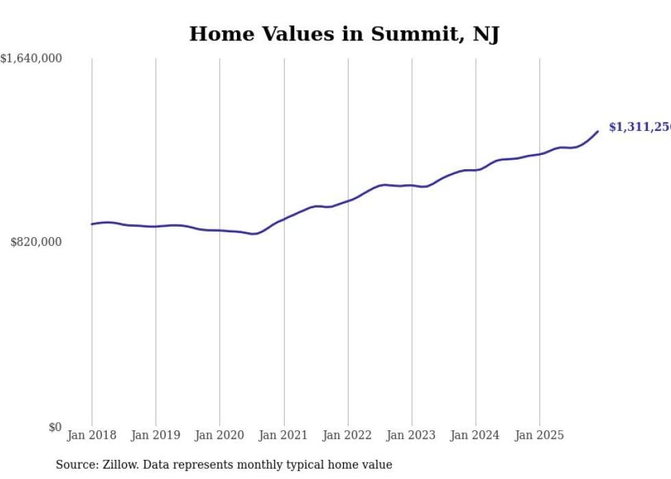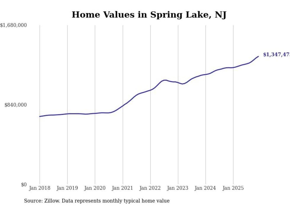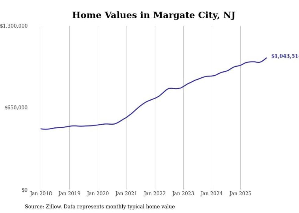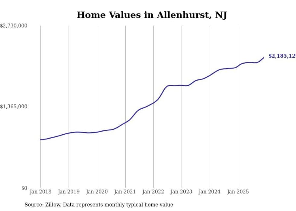 compiled a list of cities with the fastest-growing home prices in New Jersey using data from . Cities are ranked by the dollar change in the Zillow Home Values Index for all homes from the 12 months ending December 2025. The charts in this story were created automatically using . Data was available for 50 cities and towns in New Jersey.