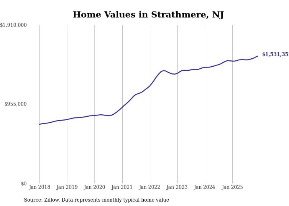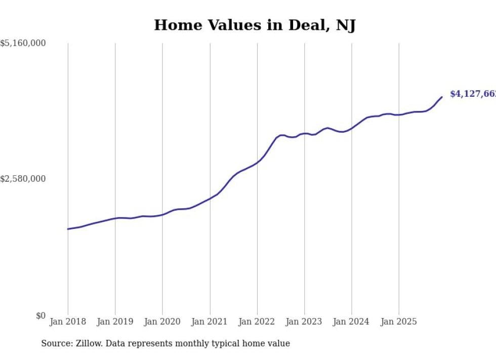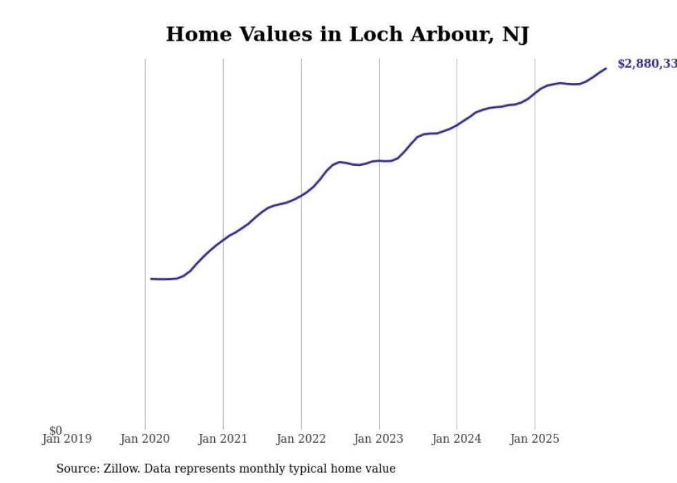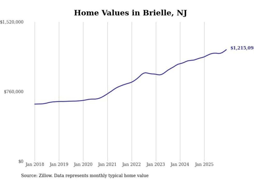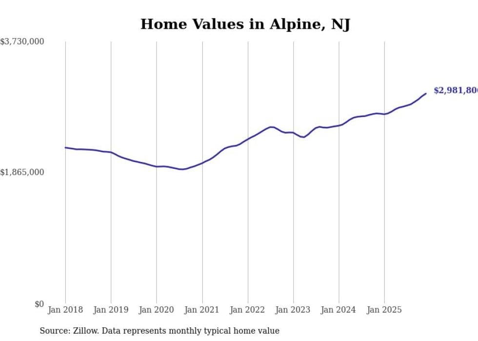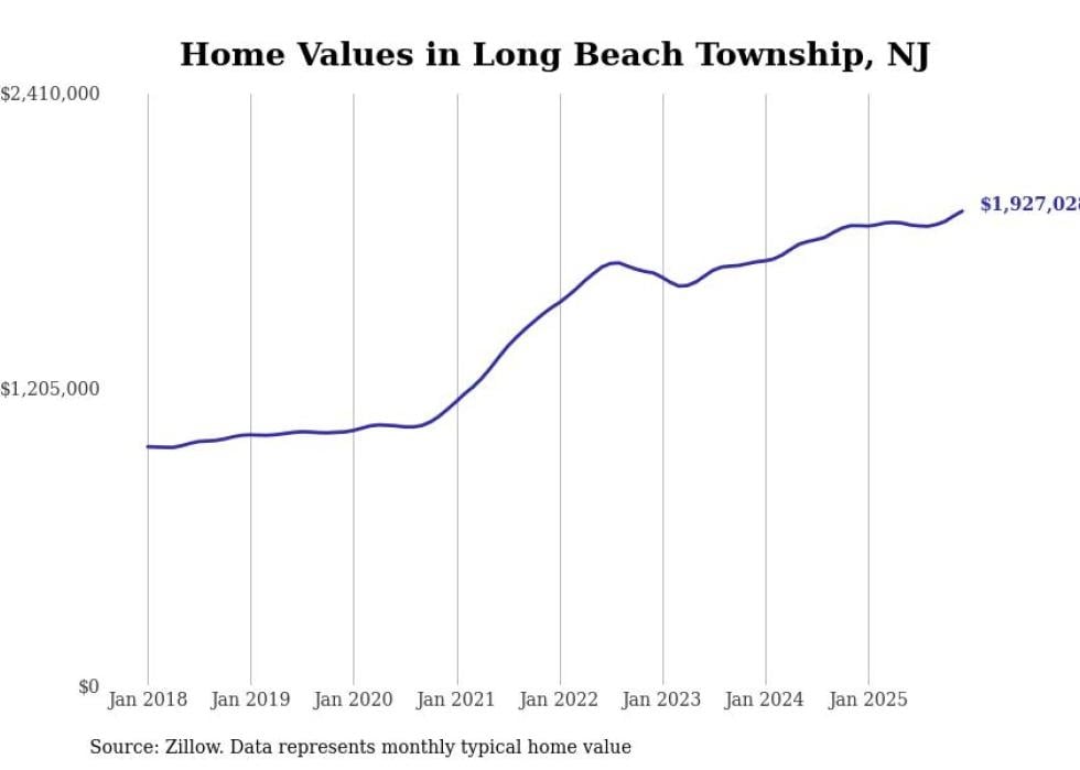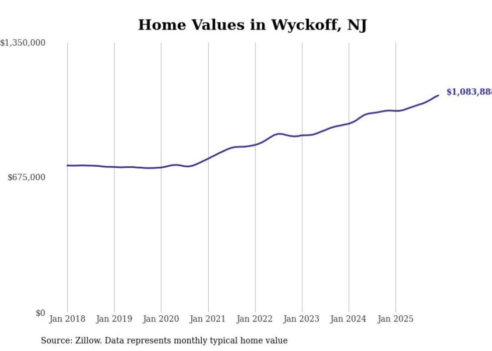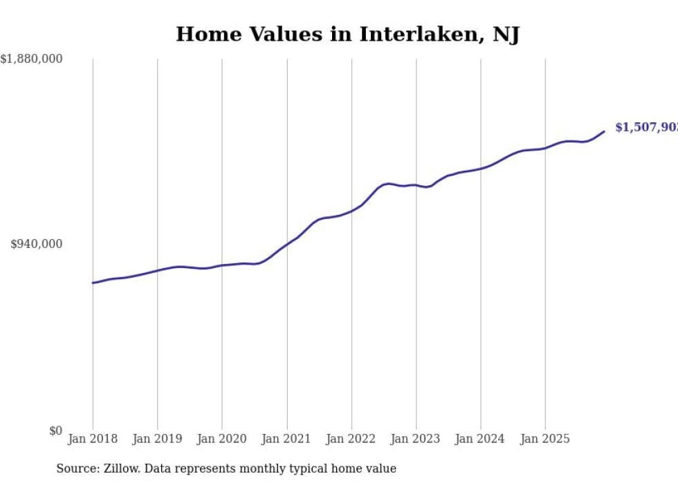 compiled a list of cities with the fastest-growing home prices in New Jersey using data from . Cities are ranked by the dollar change in the Zillow Home Values Index for all homes from the 12 months ending December 2025. The charts in this story were created automatically using . Data was available for 50 cities and towns in New Jersey.