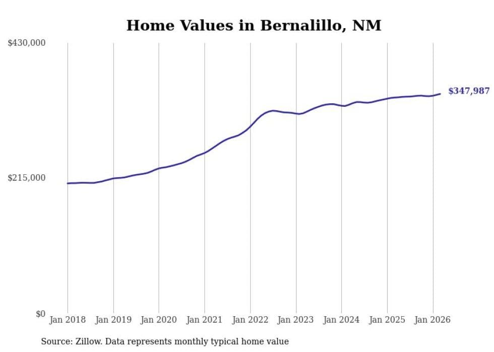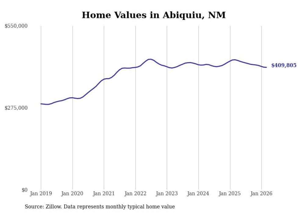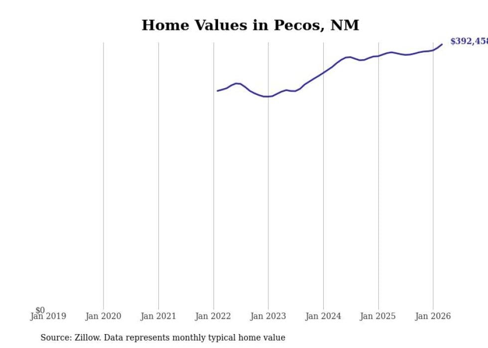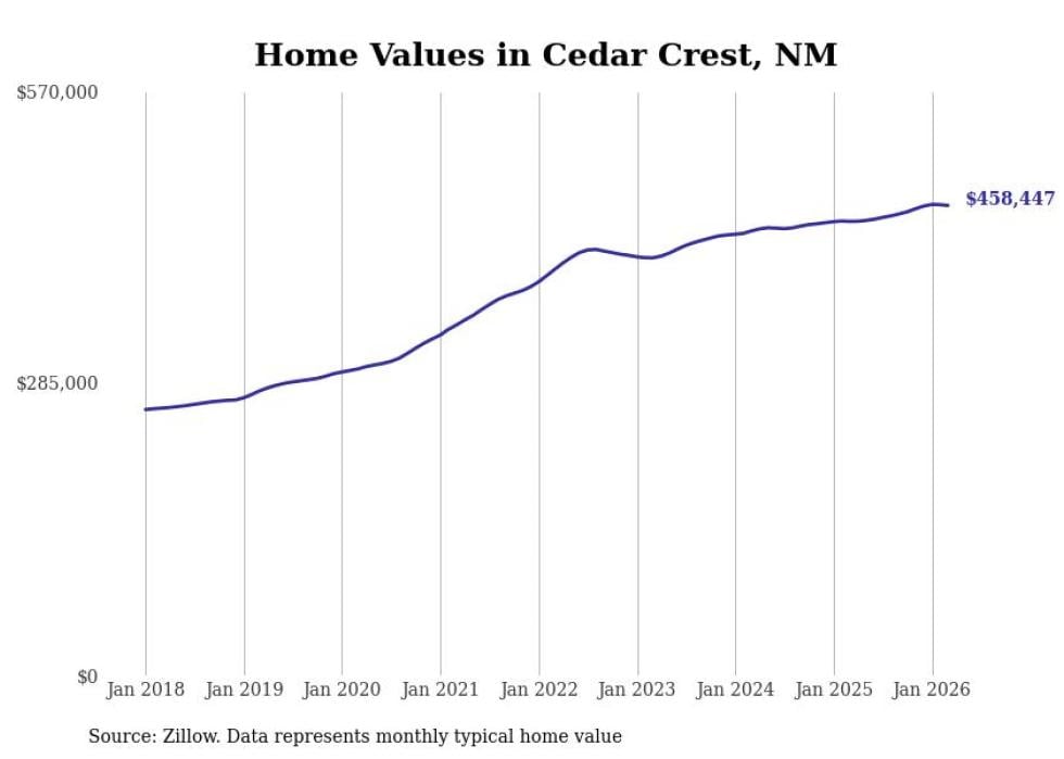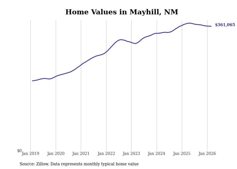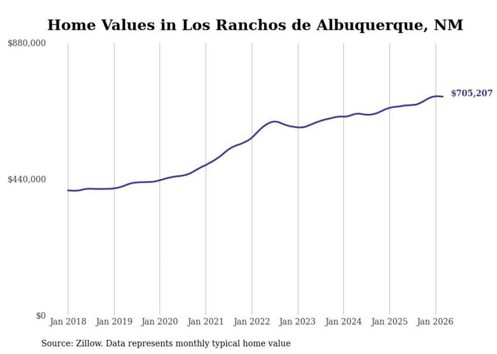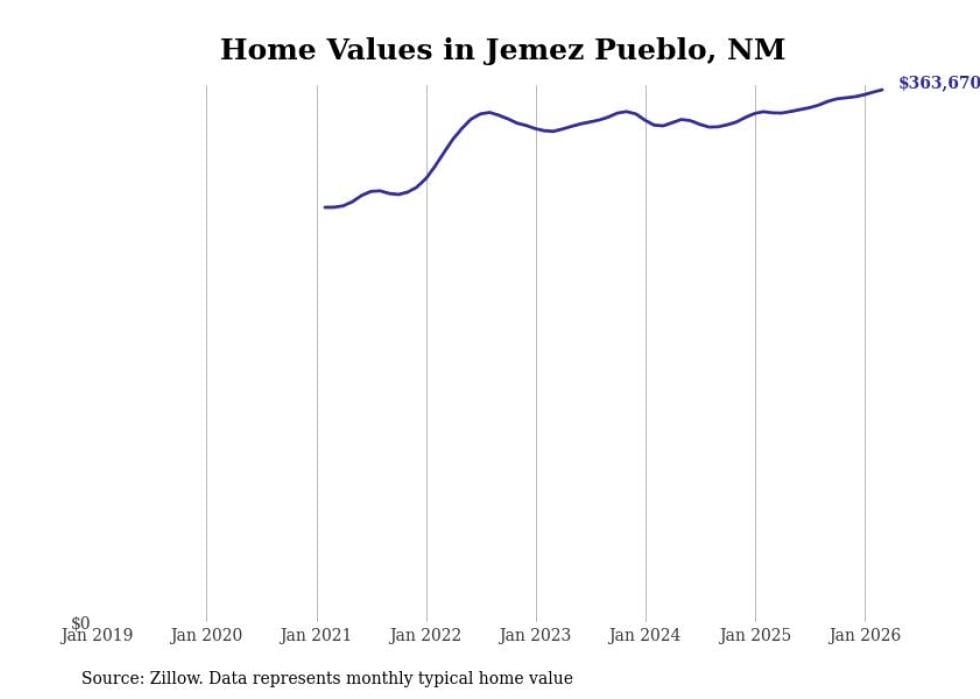 compiled a list of cities with the most expensive homes in New Mexico using data from . Cities are ranked by the Zillow Home Values Index for all homes as of February 2026. The charts in this story were created automatically using .